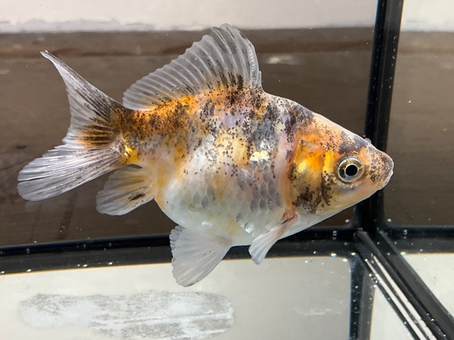 26013005 SAMURAI FARM産 茜錦ローズテール 約7cm 美しい銀鱗の入った茜錦です。尾の開きが素晴らしく、まだ小さいのでそこまで尾にドレープが入っておりませんが、これから良いローズテールになってきそうです。 動画は下のリンクからご覧ください。 https://www.instagram.com/p/DUHjX6QksMX/?igsh=MTRheGJjcGM5aHJqbA==