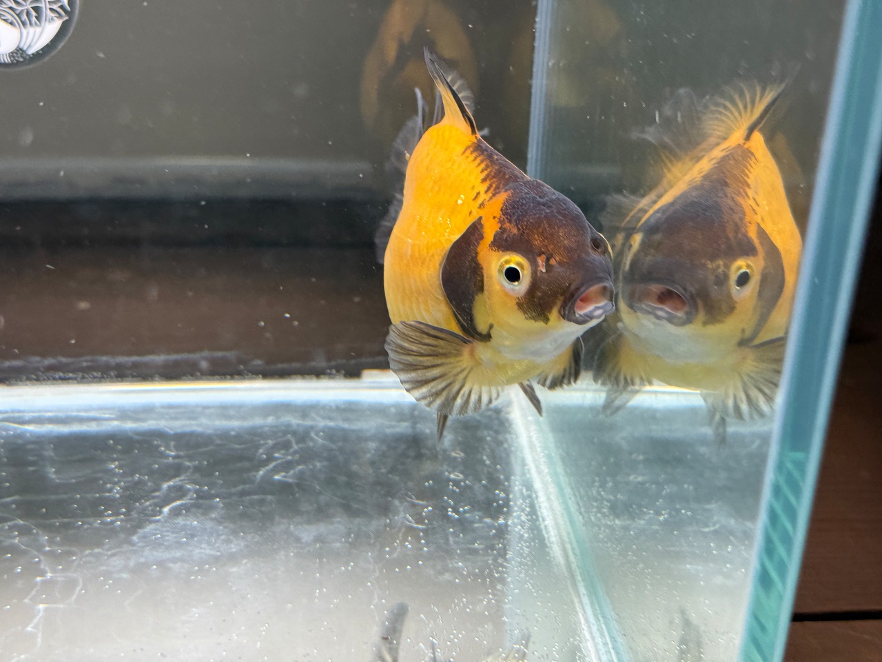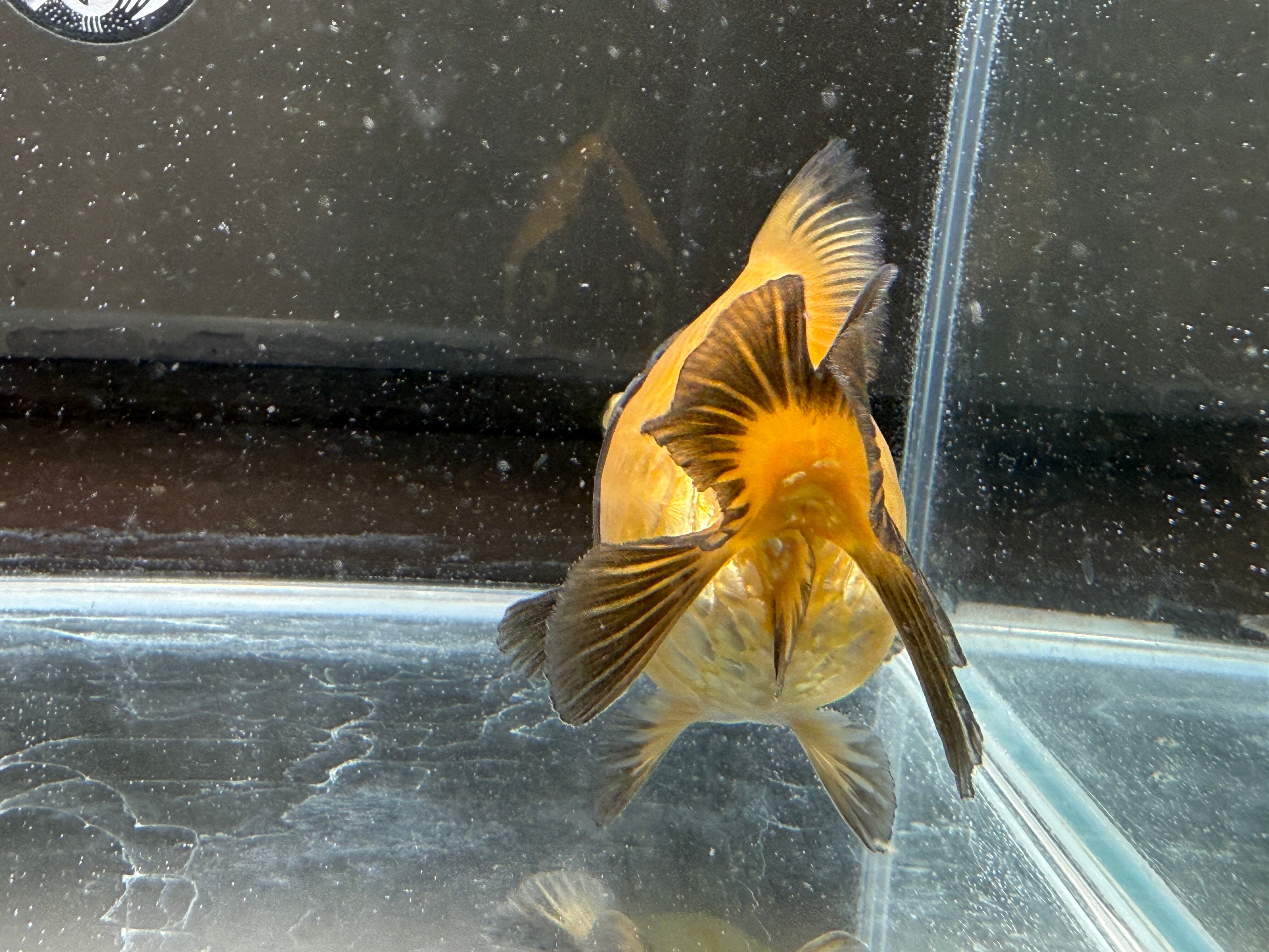 オランダショートテールとしては完璧な非常に美しいシェイプと各鰭です。しっかりと並んだ龍鱗はソリッドカラーが引き立ててくれています。