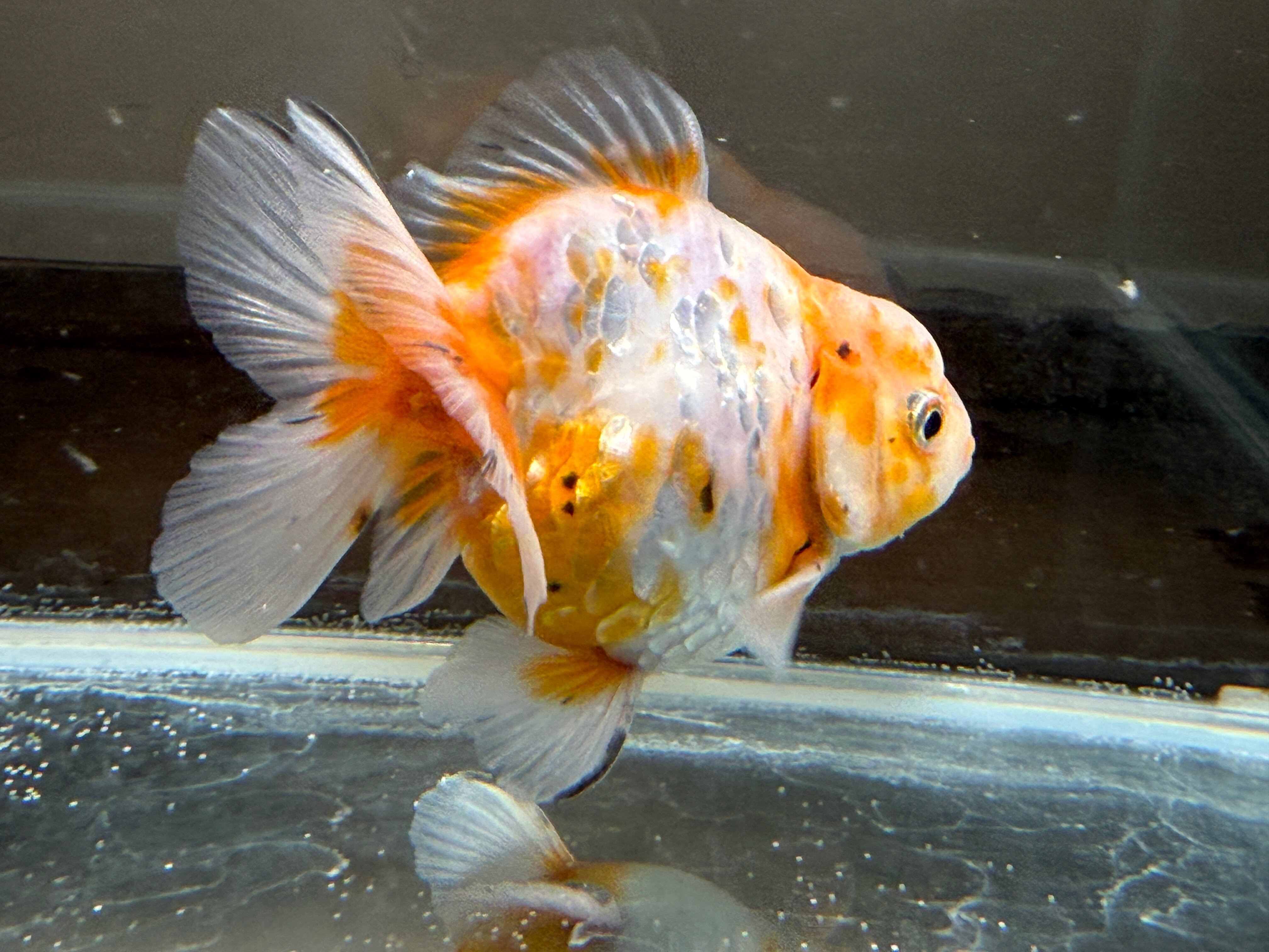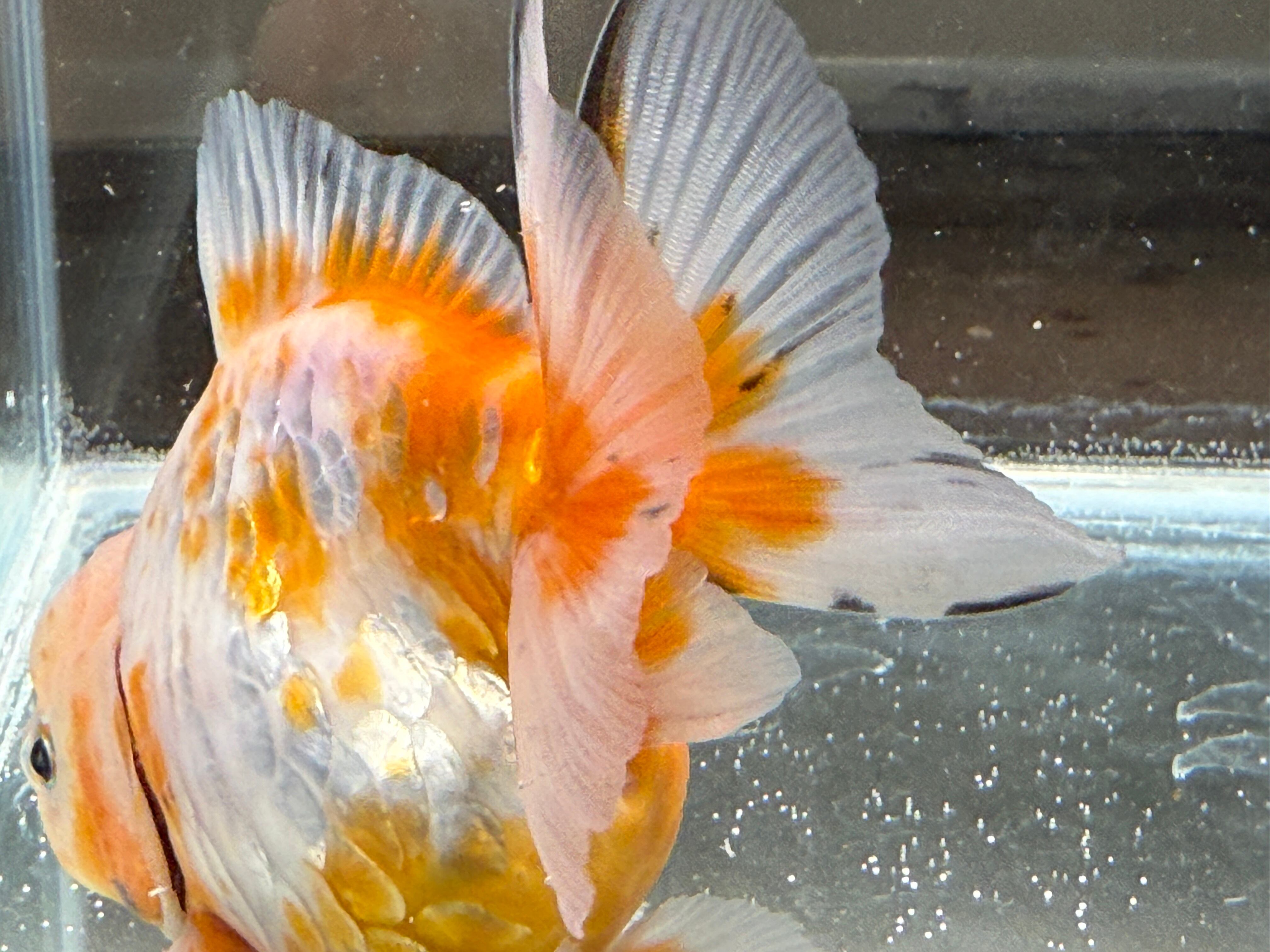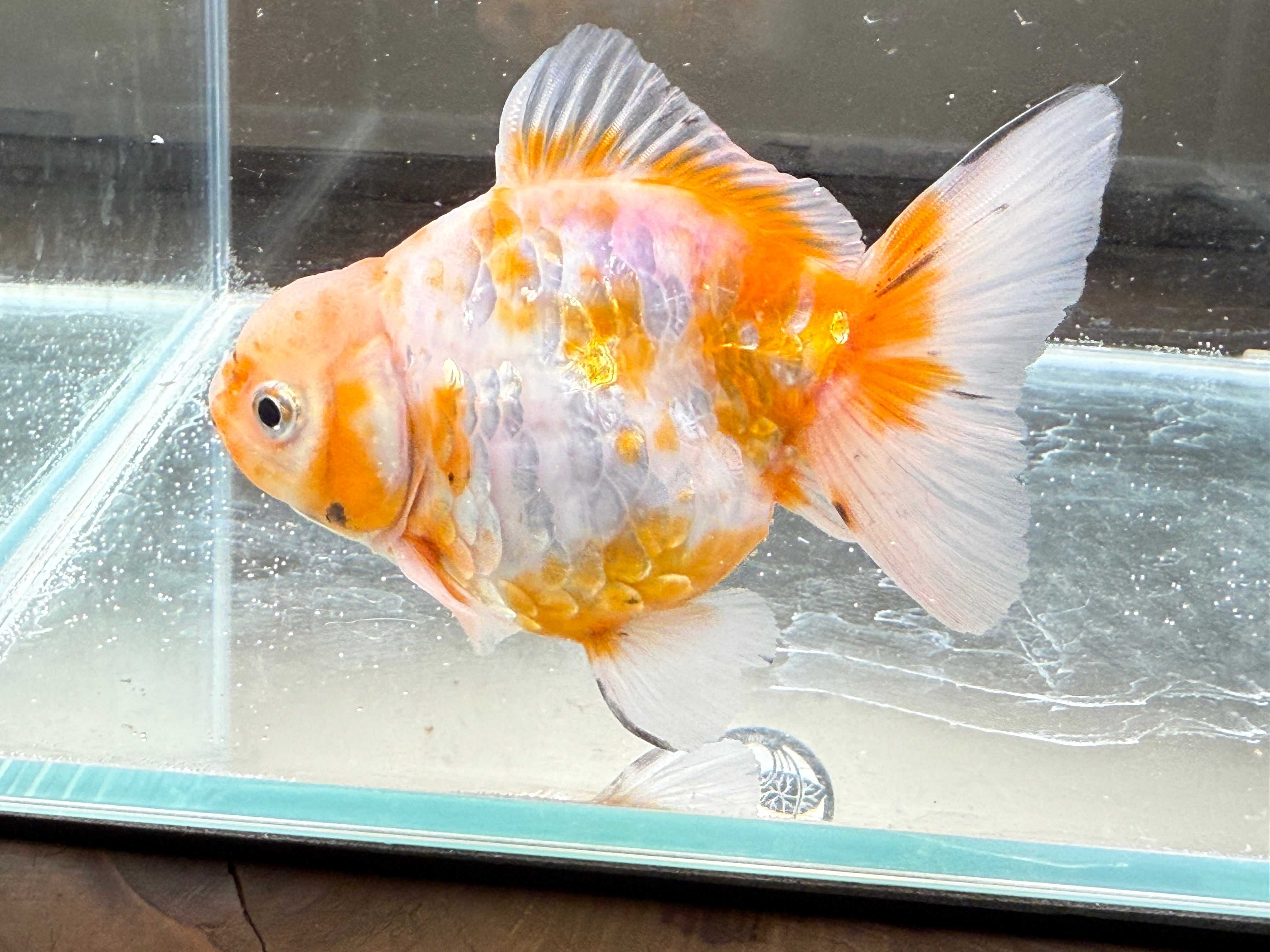 個人的に思い入れが非常に強い一匹です。2024年度の金魚で販売用では最高傑作になります。