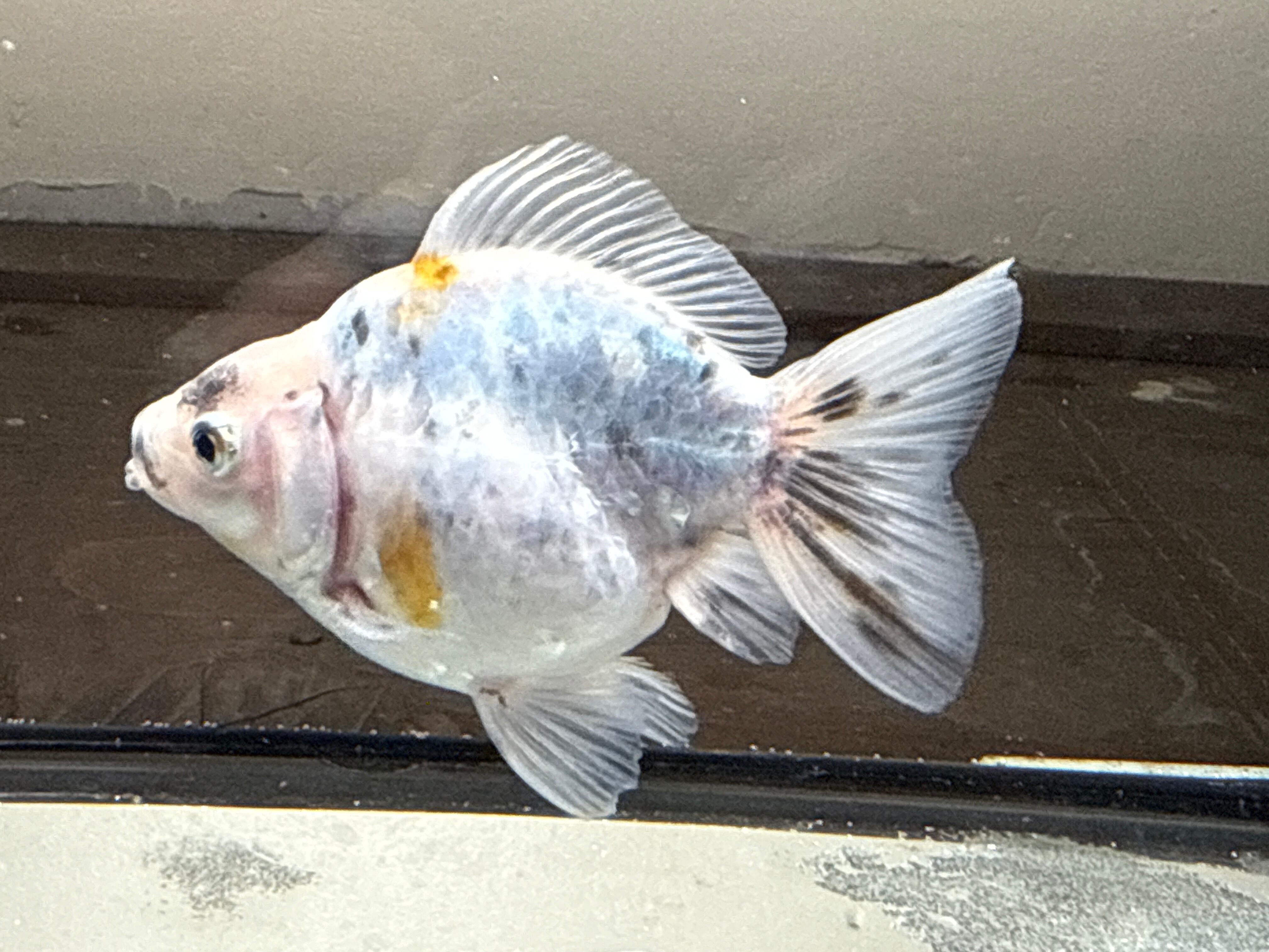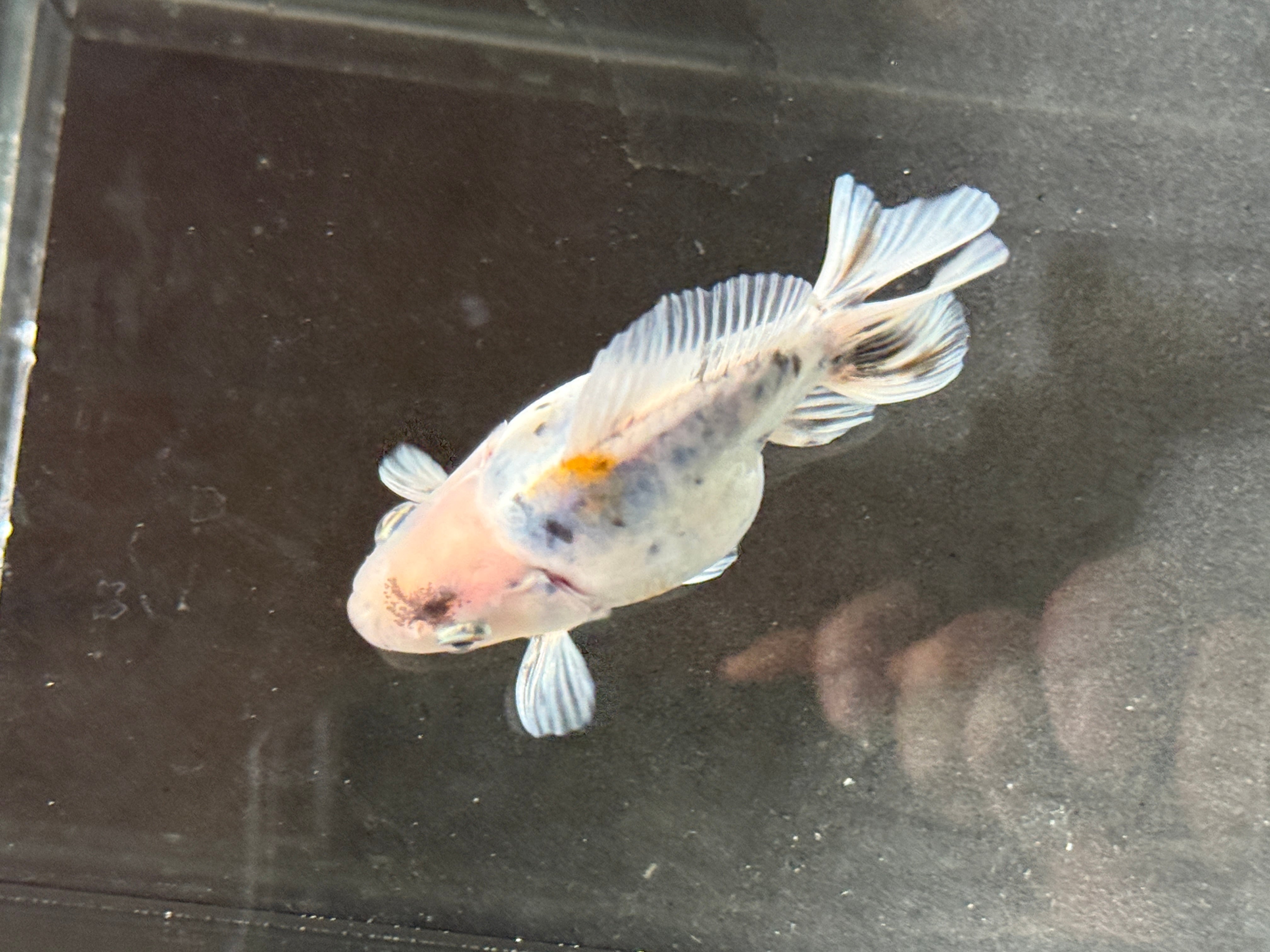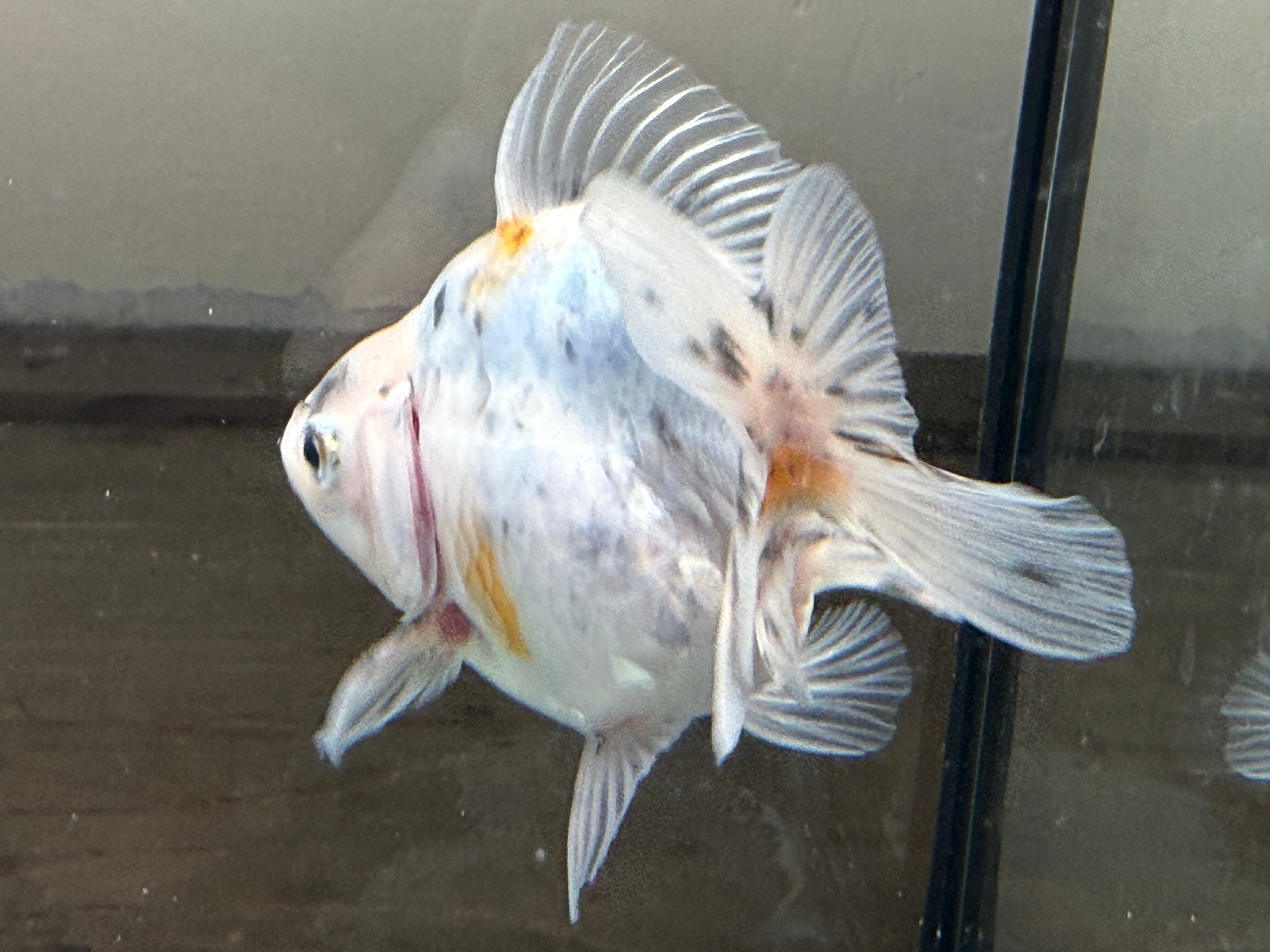 銀鱗は少なめですが、大変バランスの取れた入り方で美しい浅葱の体色に花を添えます。