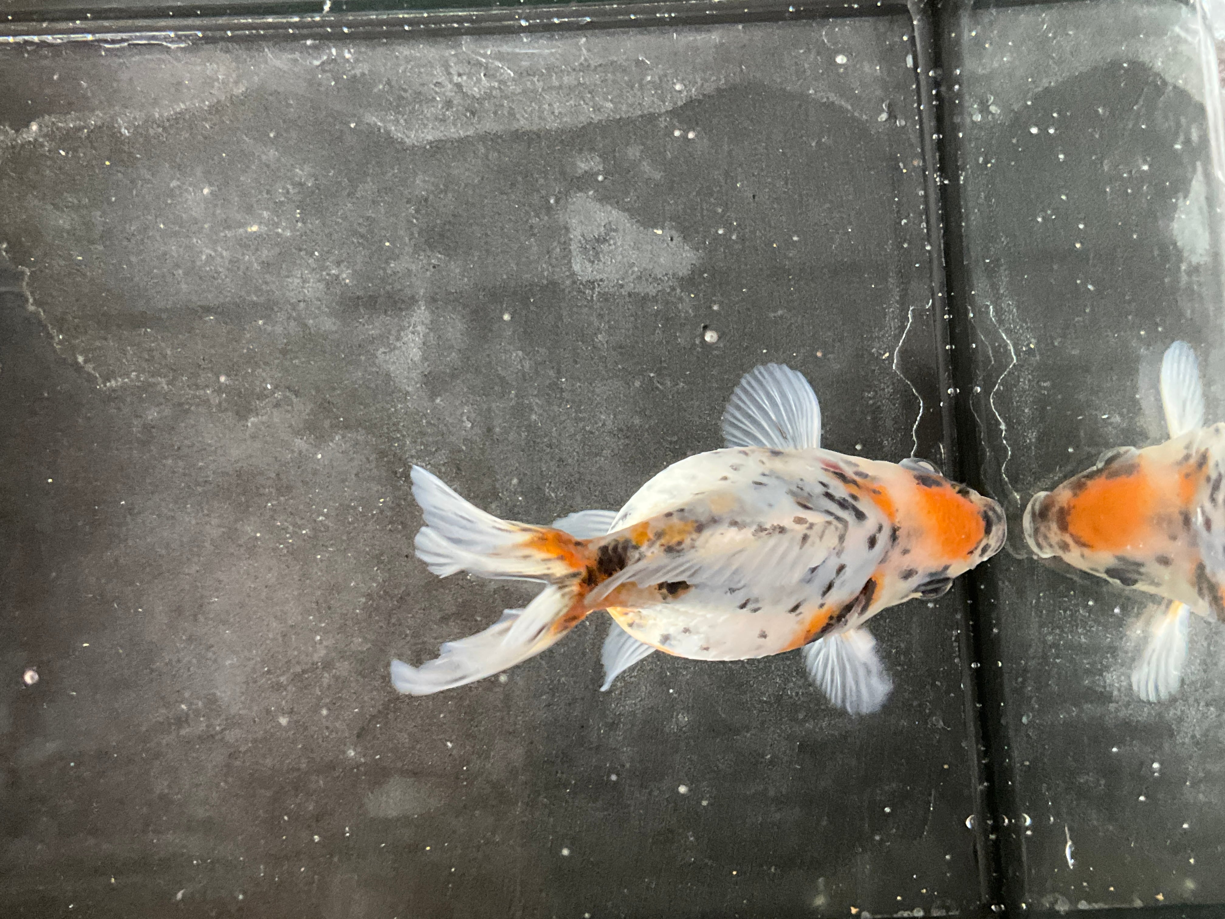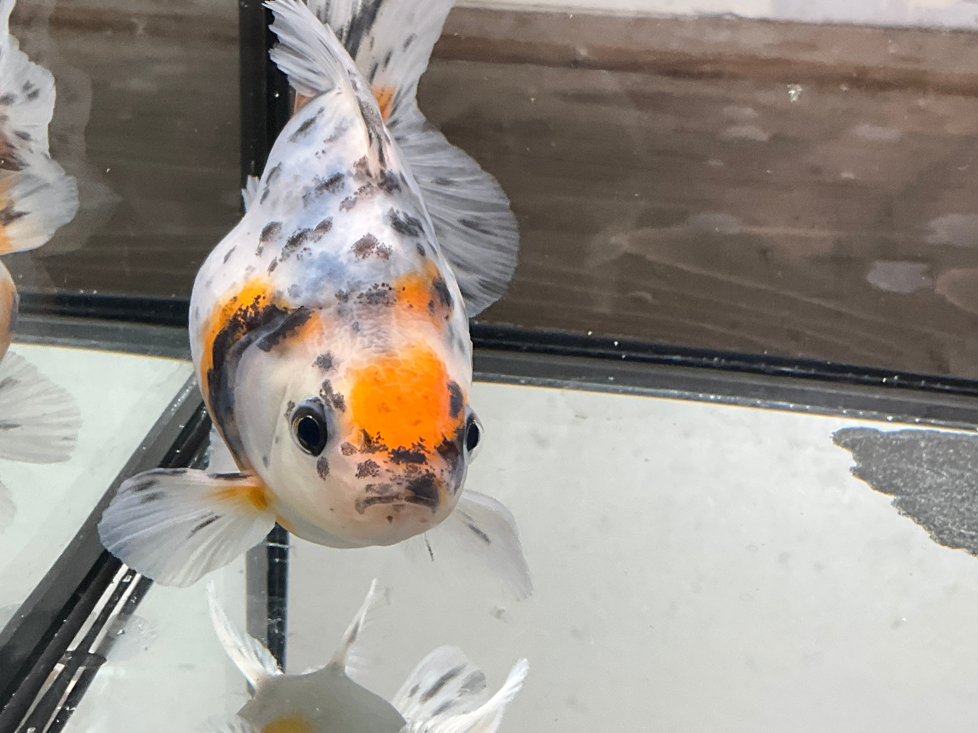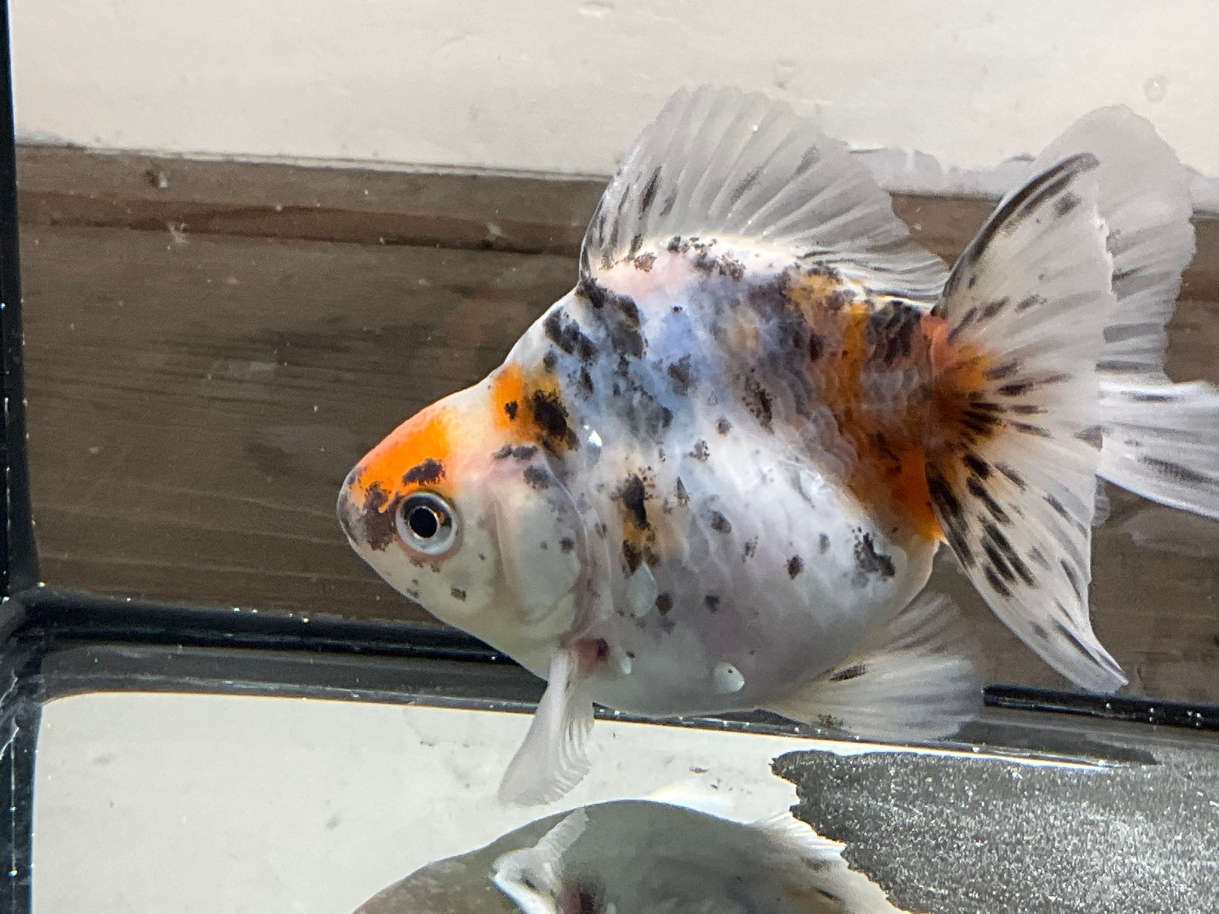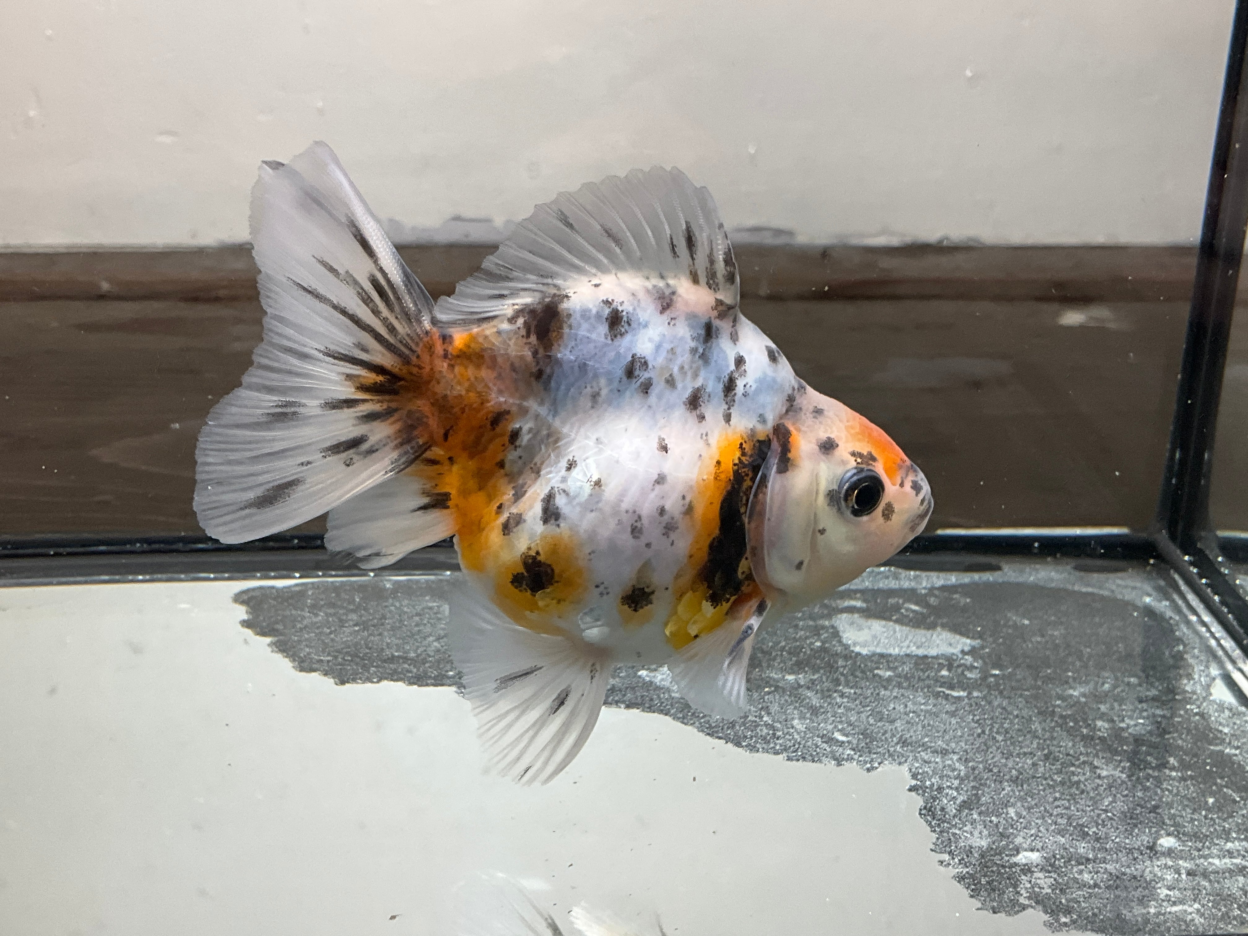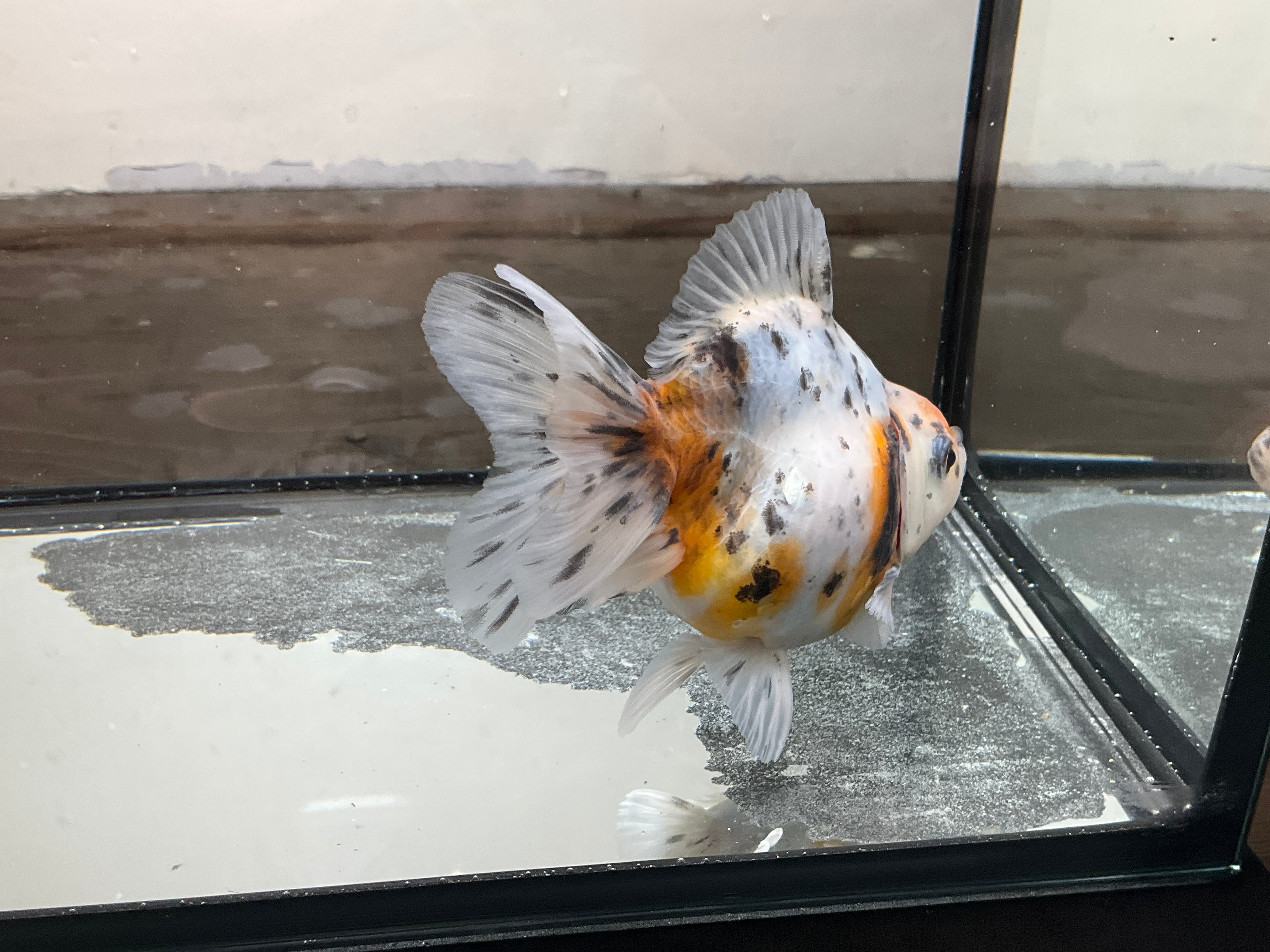 各尾鰭も非常に美しいです。尾が伸びてくればドレープが入ってきそうなので短めのローズテールになりそうな雰囲気です。銀龍鱗の数もそこそこあり、来年育成をかなり楽しめそうな一匹です。