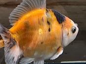 体型は美しく銀鱗の数も多く、オレンジのボディにバランスよく入っています。キラキラとして美しいです。尾も綺麗に開いており育成が楽しめそうな一匹です。