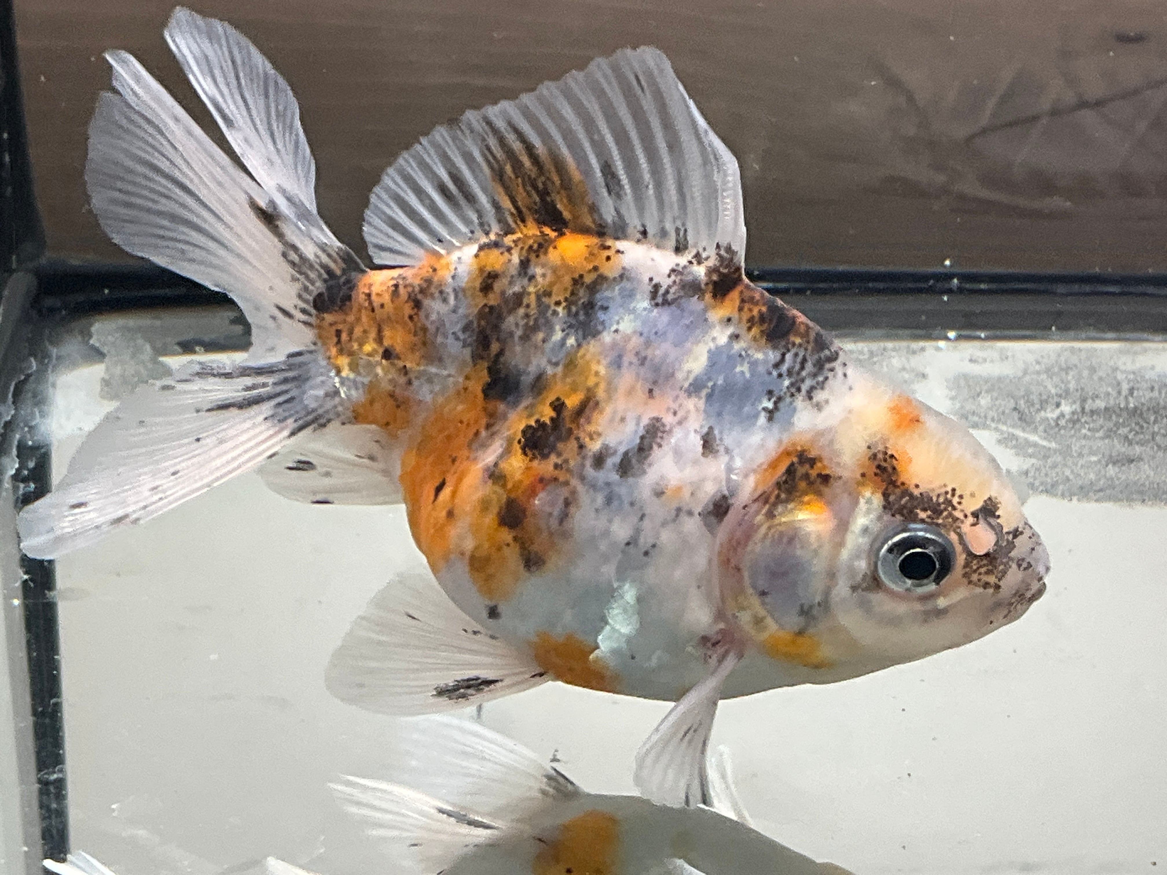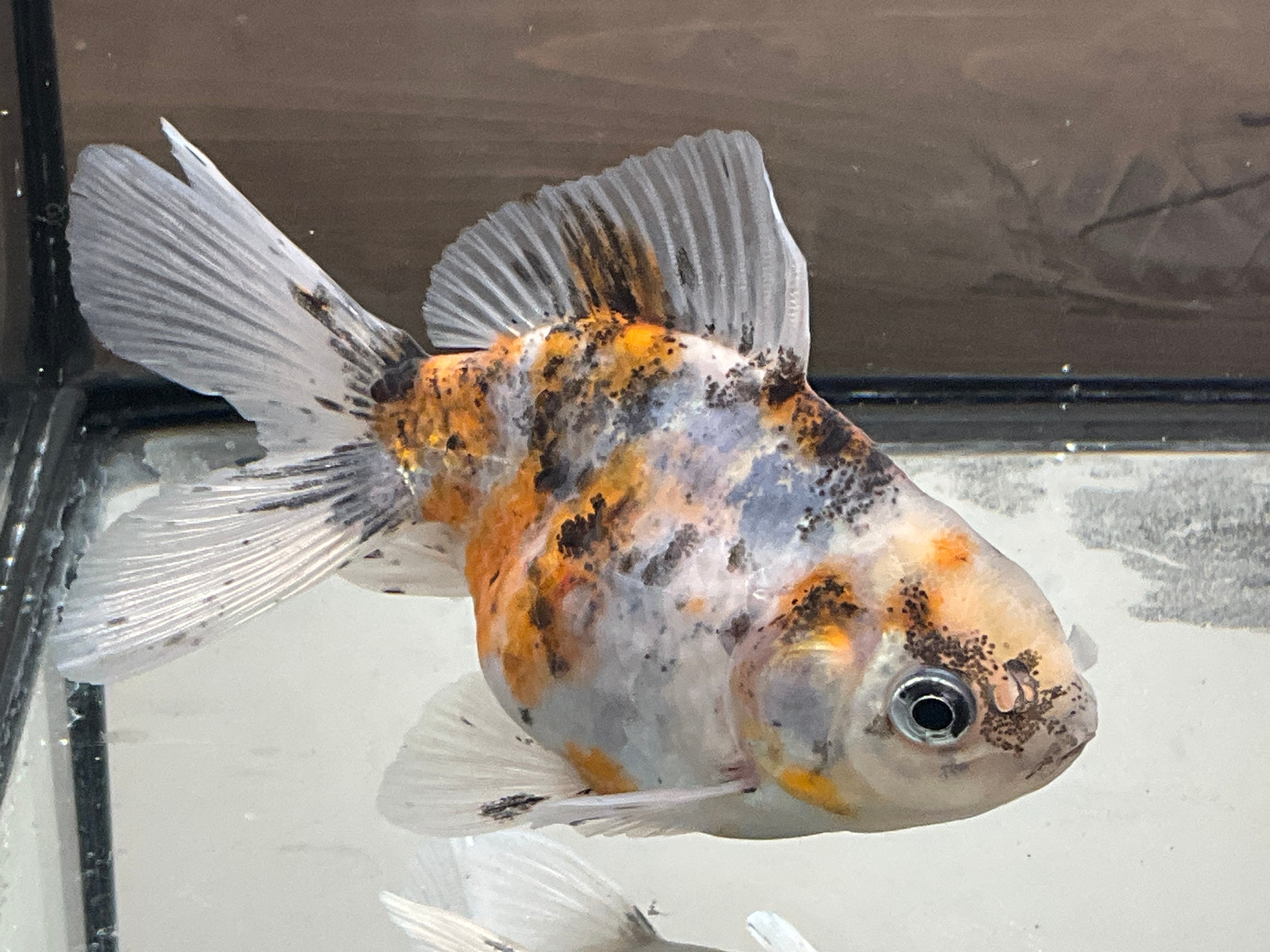 非常にカラーバランスの取れた天龍です。複雑に混じり合った各色に光の角度によってキラキラと光る銀鱗。銀鱗の数自体も多く美しい体色、しっかり開いた尾と、長手の均整の取れた体型。