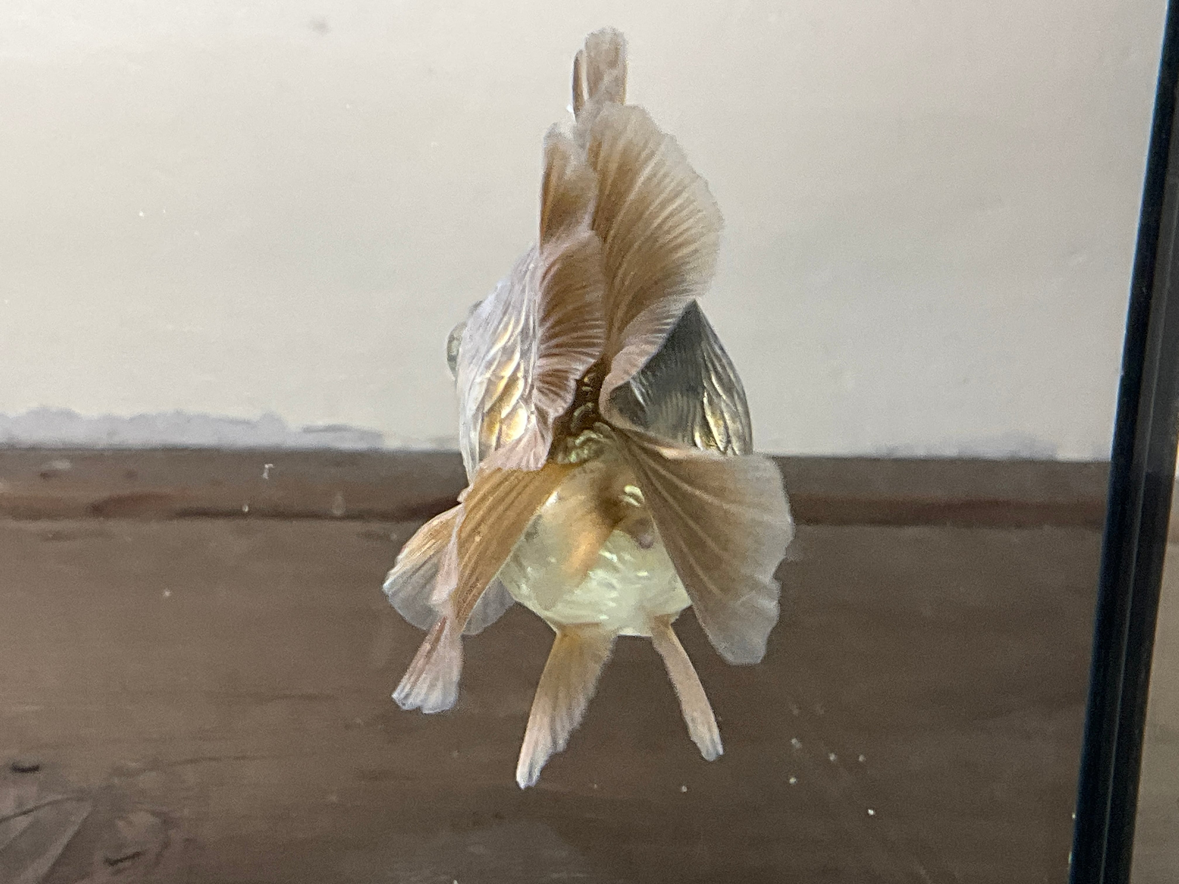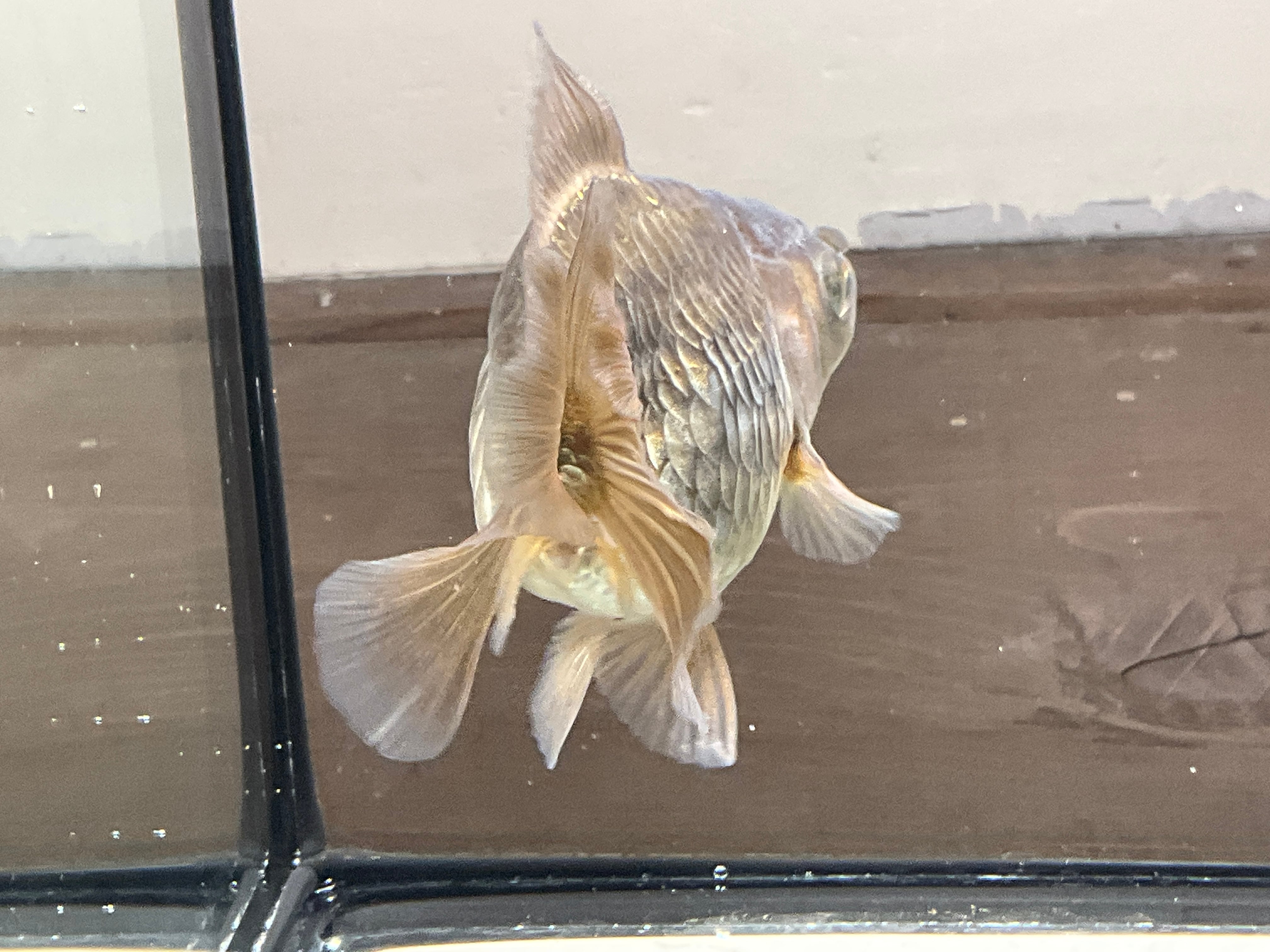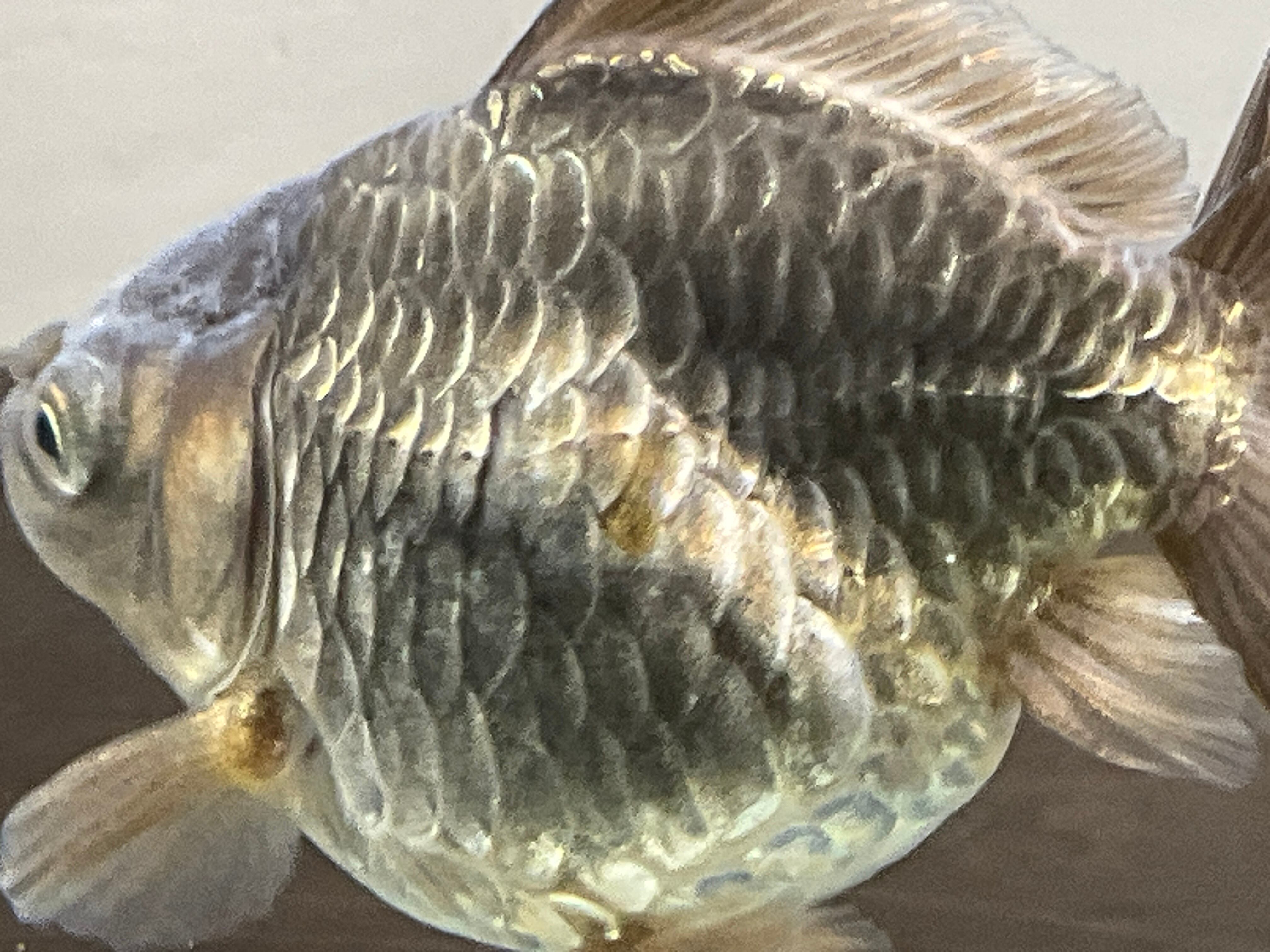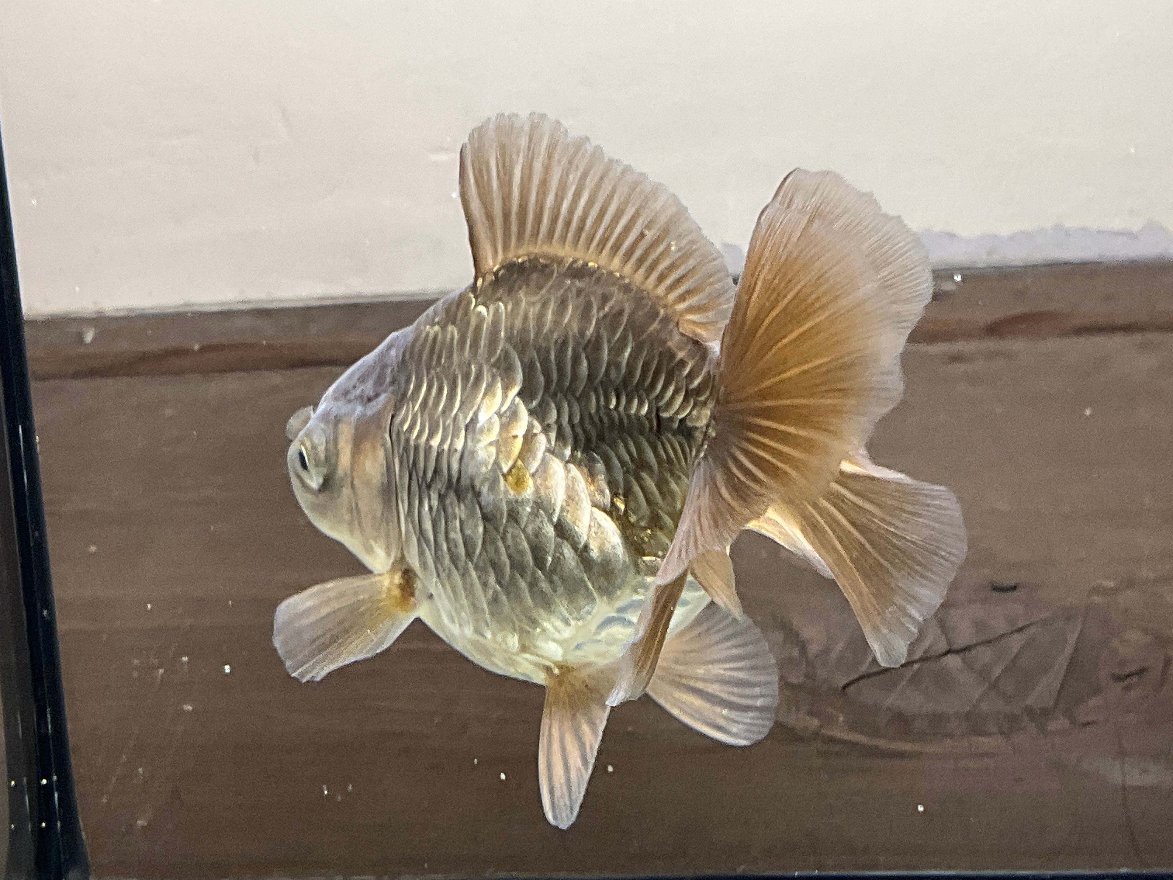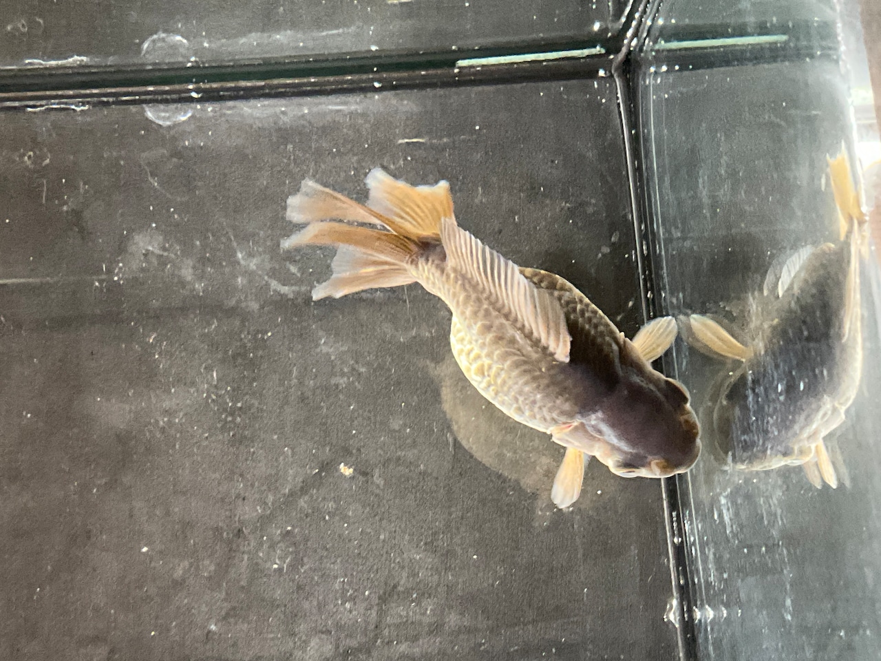 大変形の良い丸手の茶龍です。尾が大変良く開いており上下の長さも揃っており大変美しくドレープが入っております。しっかりした大きさのドラゴンスケールが美しく光ります。