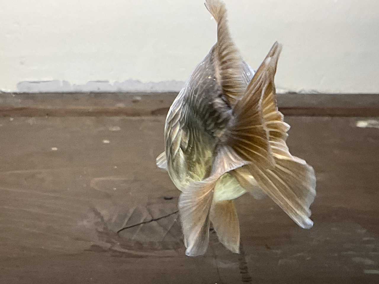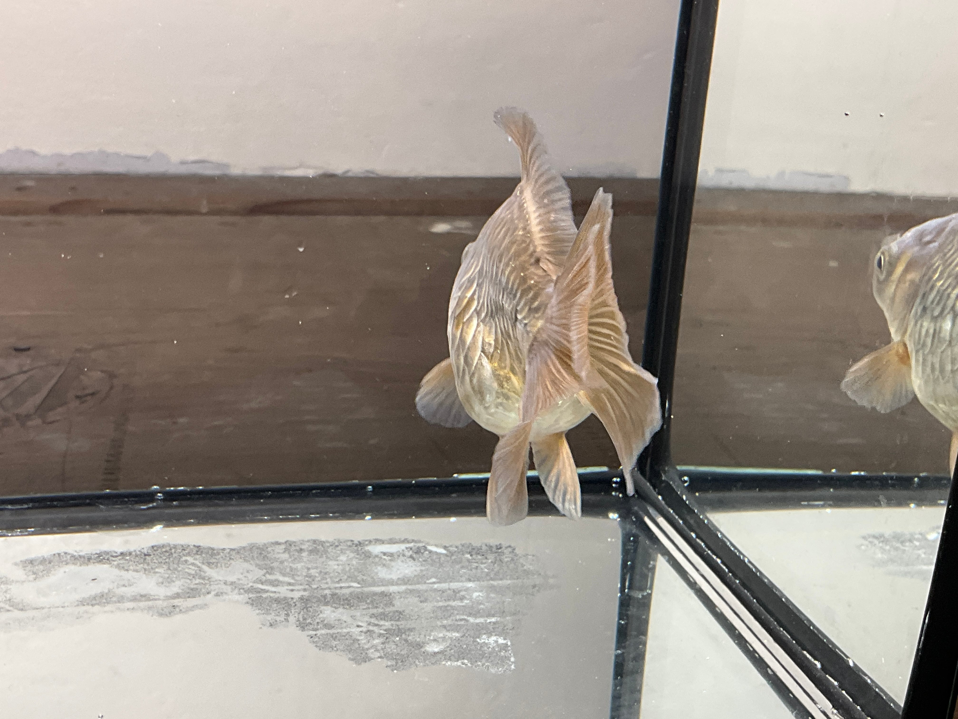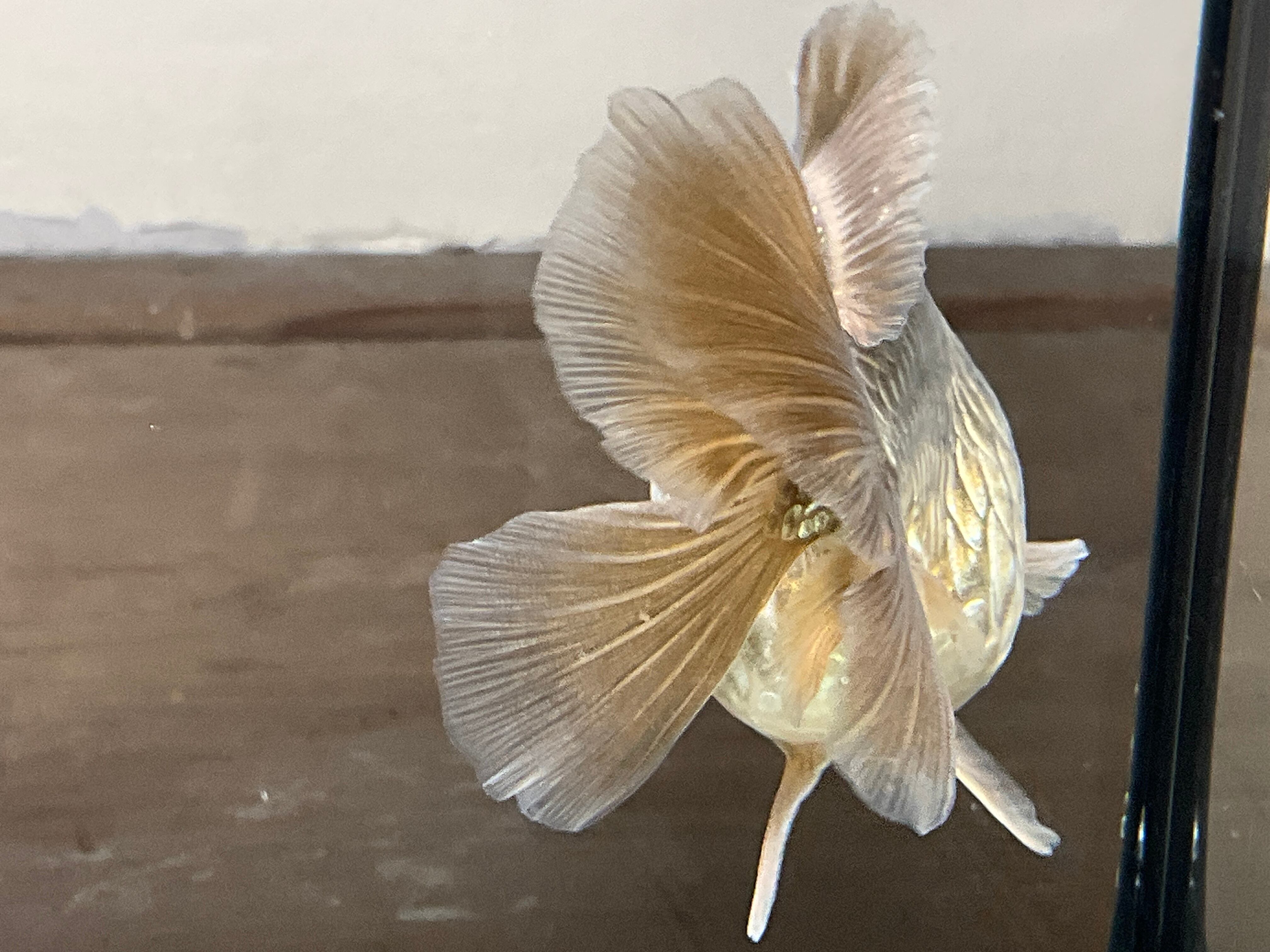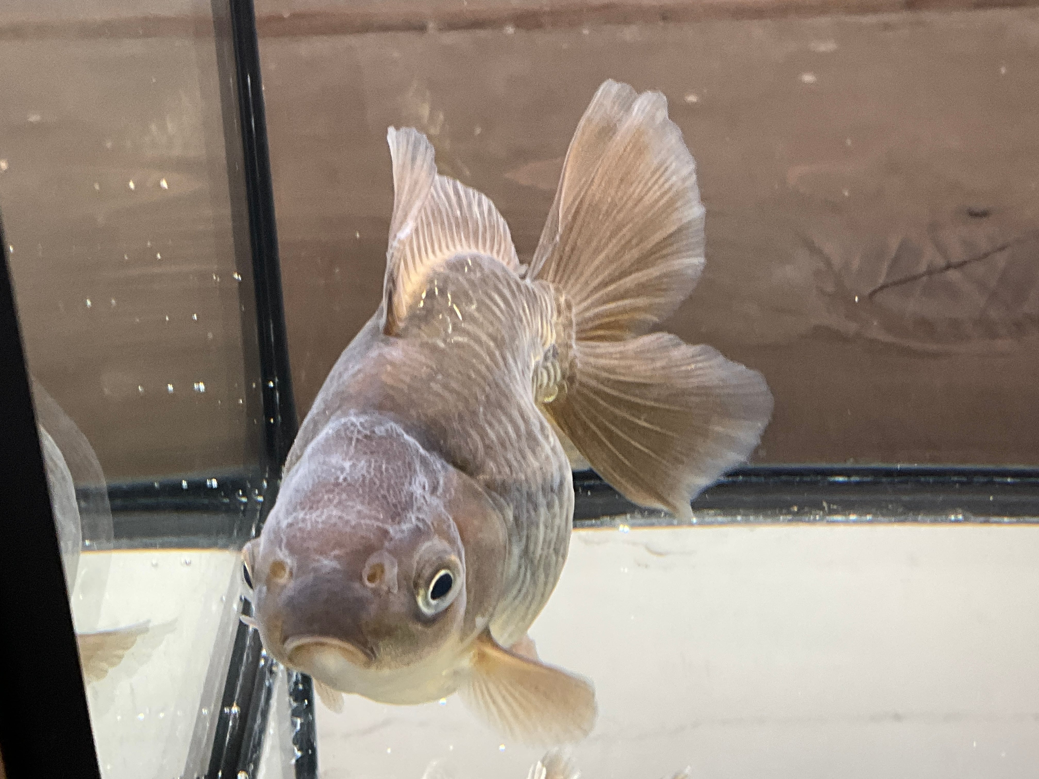 大変形の良い丸手の茶龍です。尾が大変良く開いており上下の長さも揃っており大変美しくドレープが入っております。しっかりした大きさのドラゴンスケールが美しく光ります。