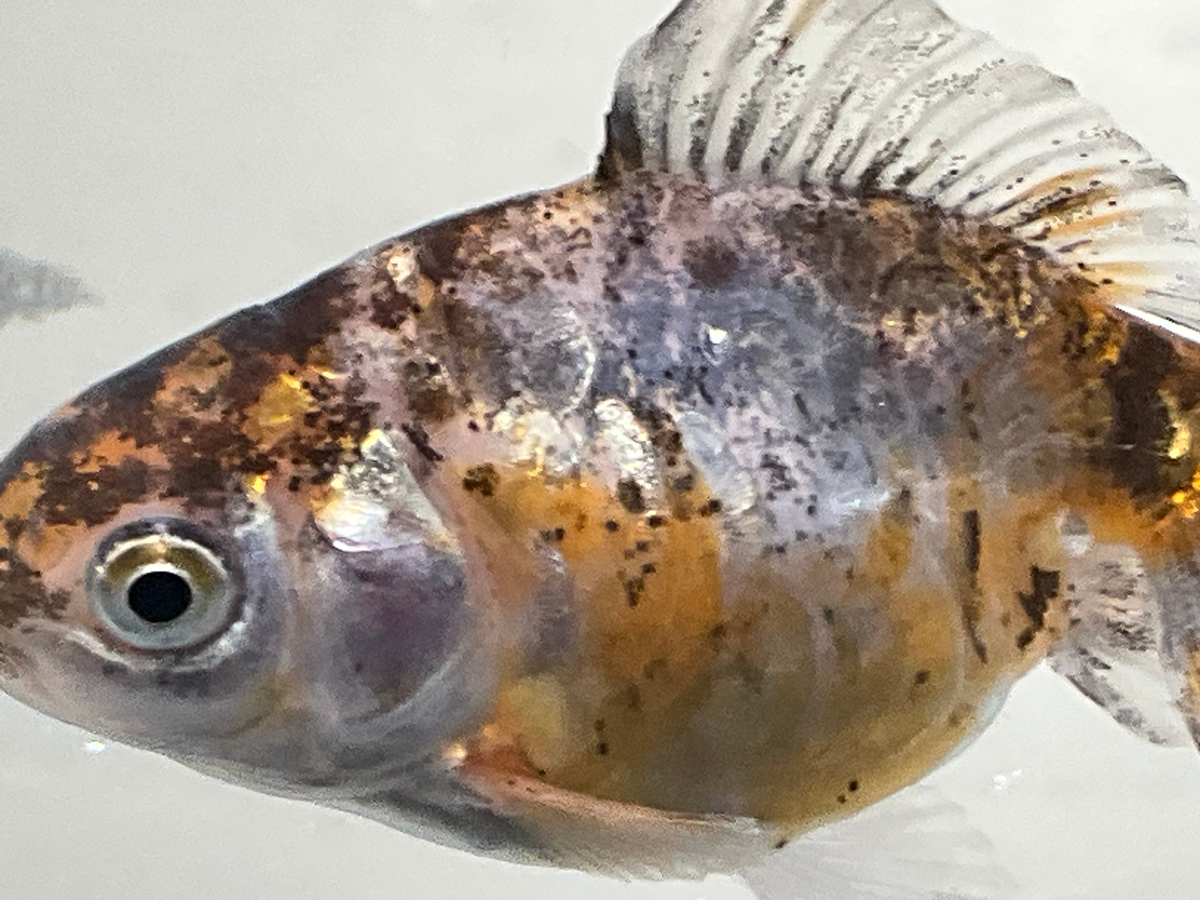 鱗は大鱗のドラゴンスケールで、銀鱗の数も多く大変美しいです。