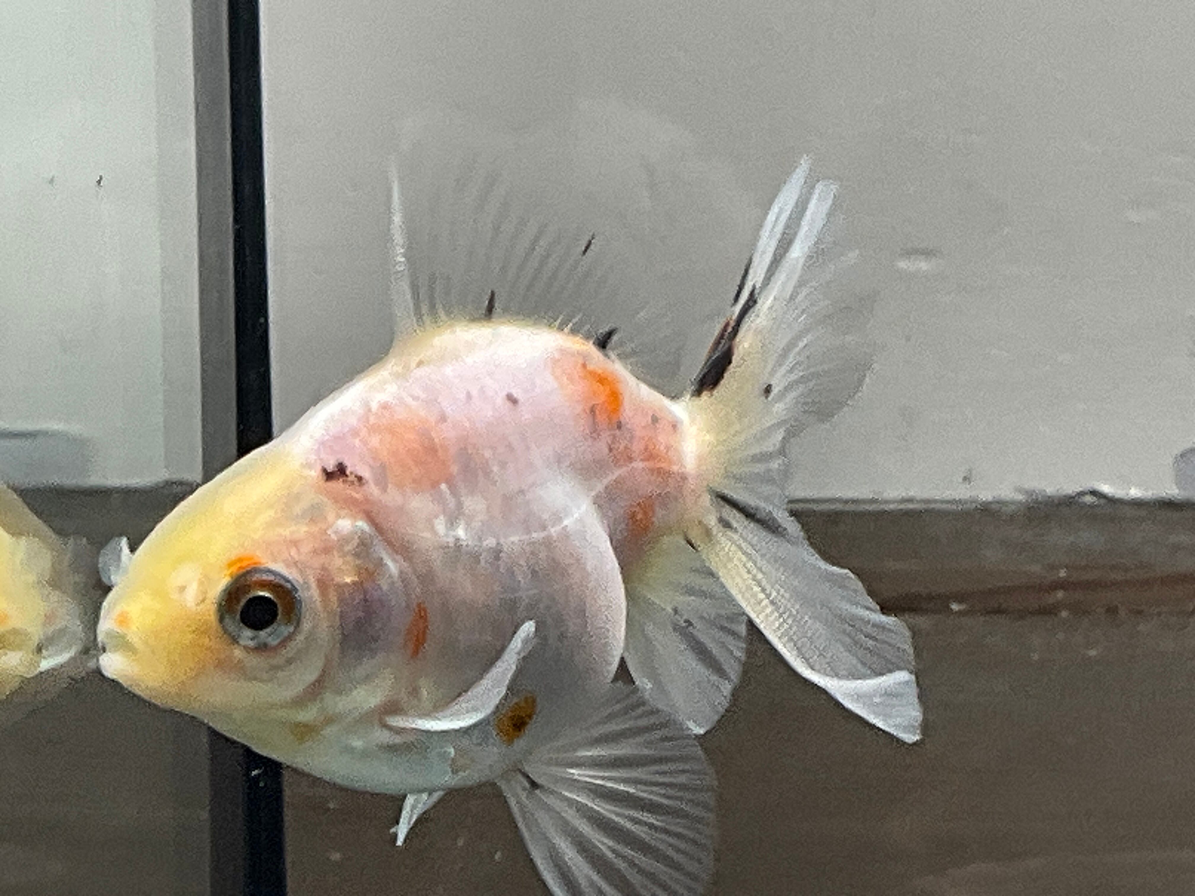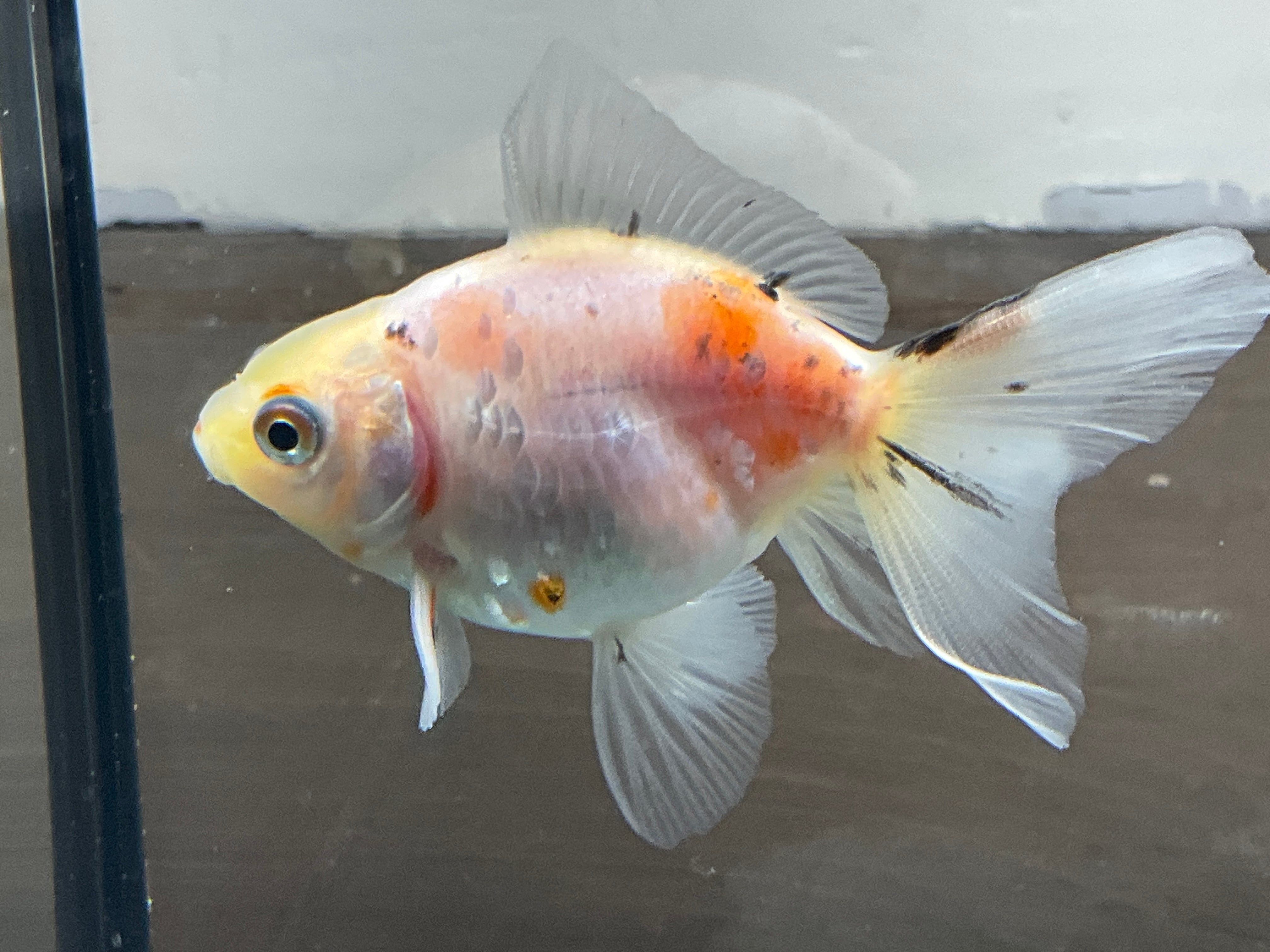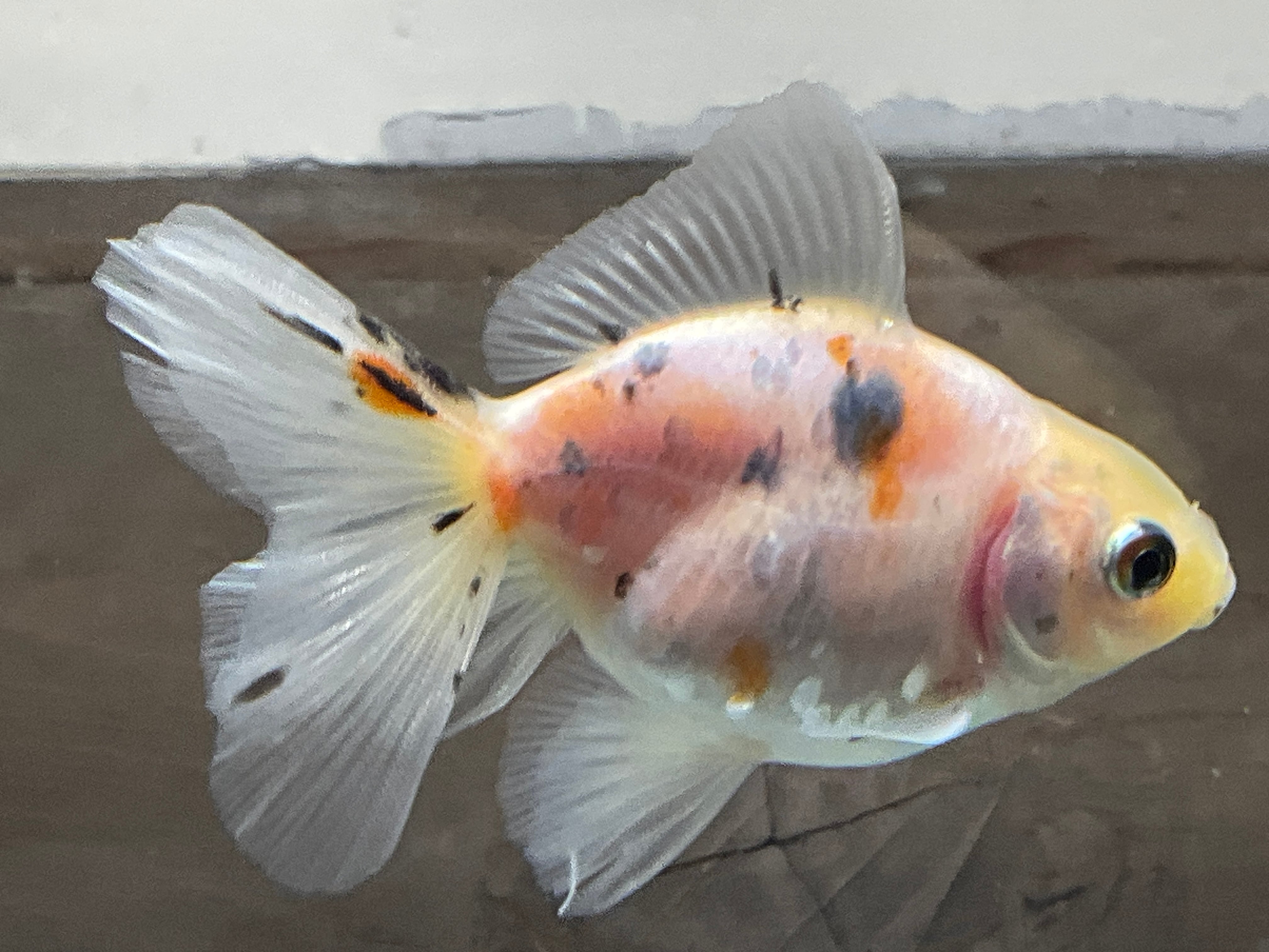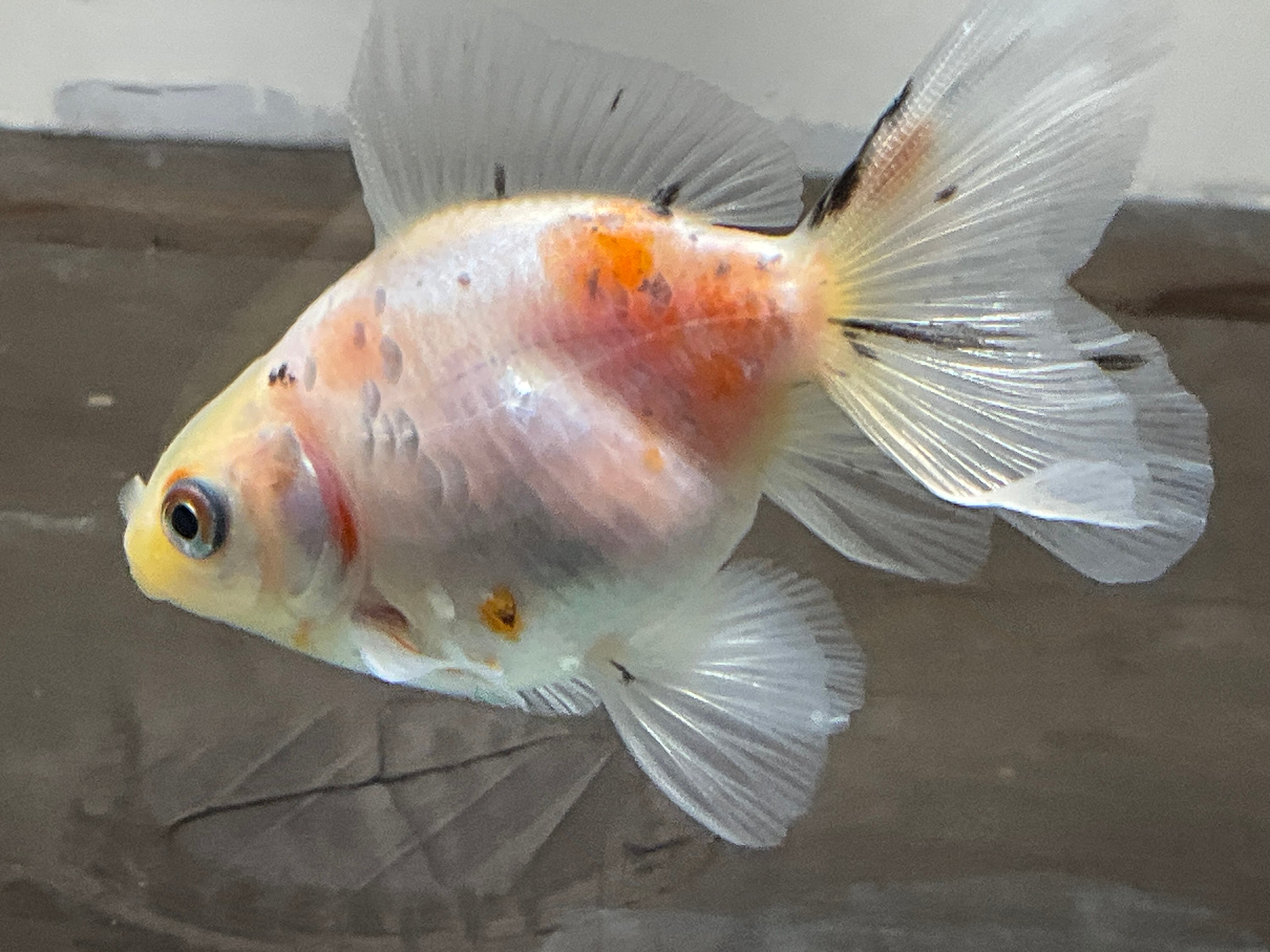 オレンジ、墨、青のドットが入り可愛らしいですが残念ながら尾の先に捲れがあるのでアウトレットとして販売いたします。