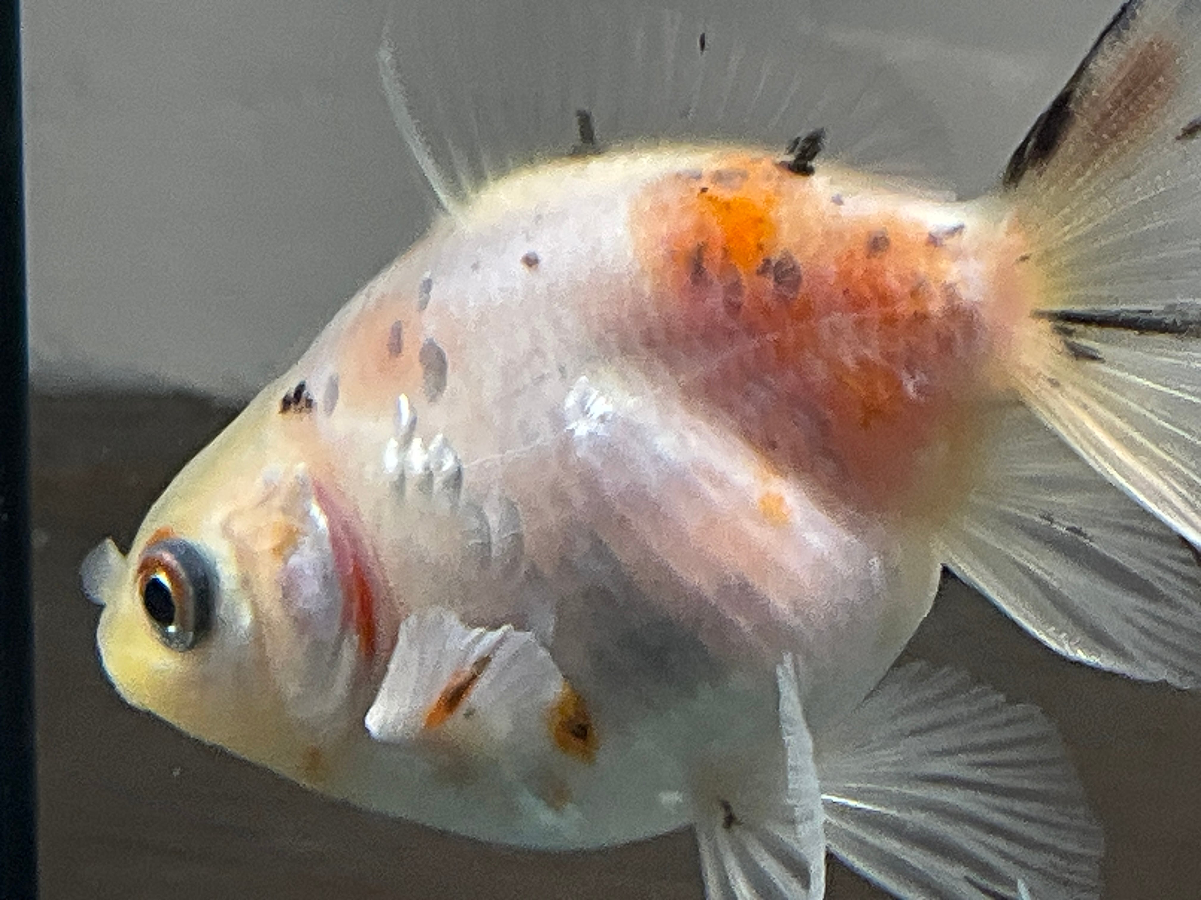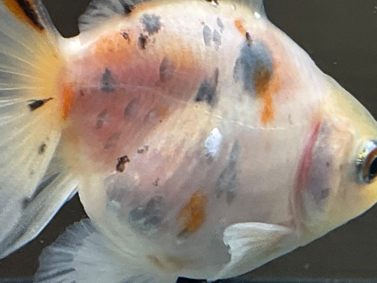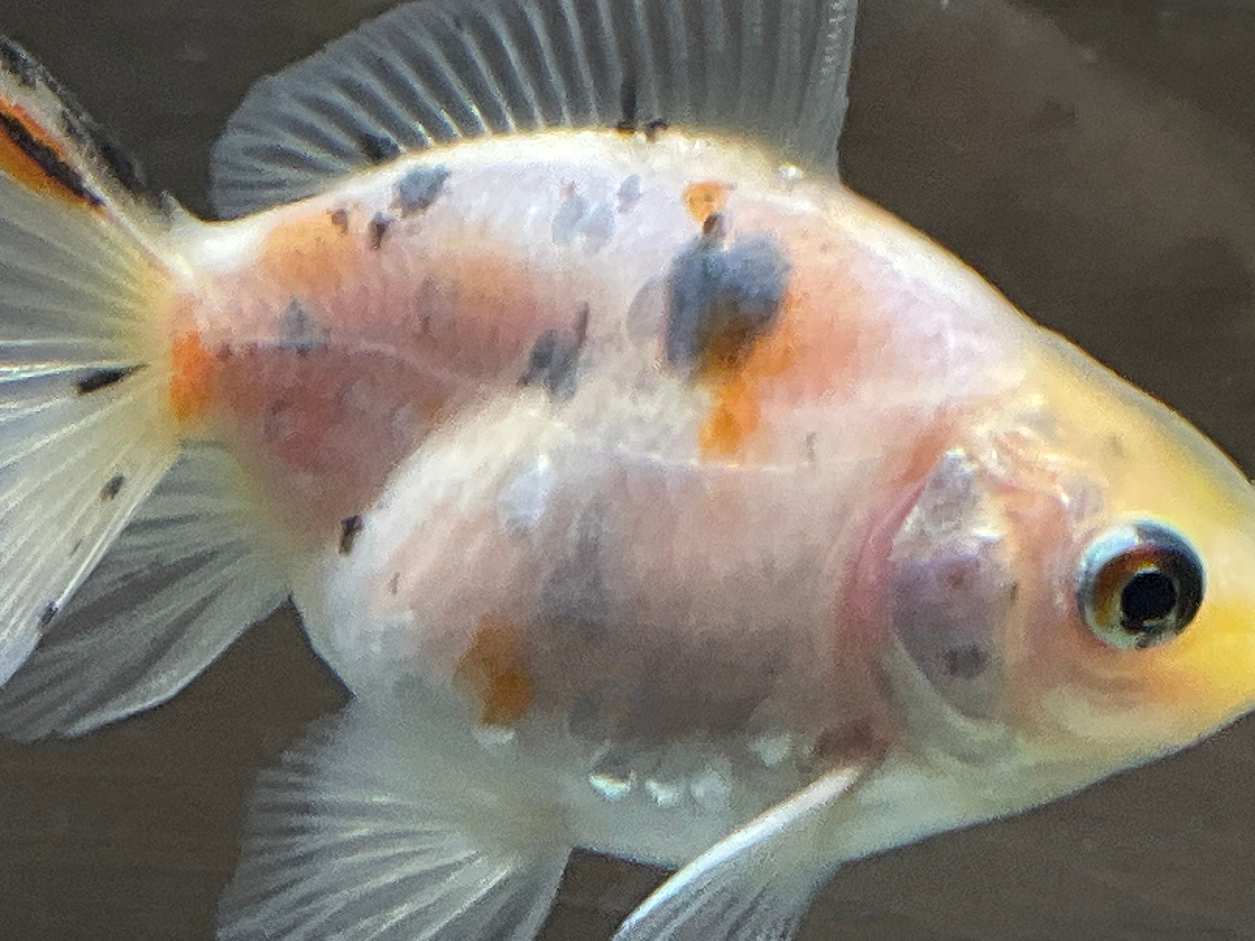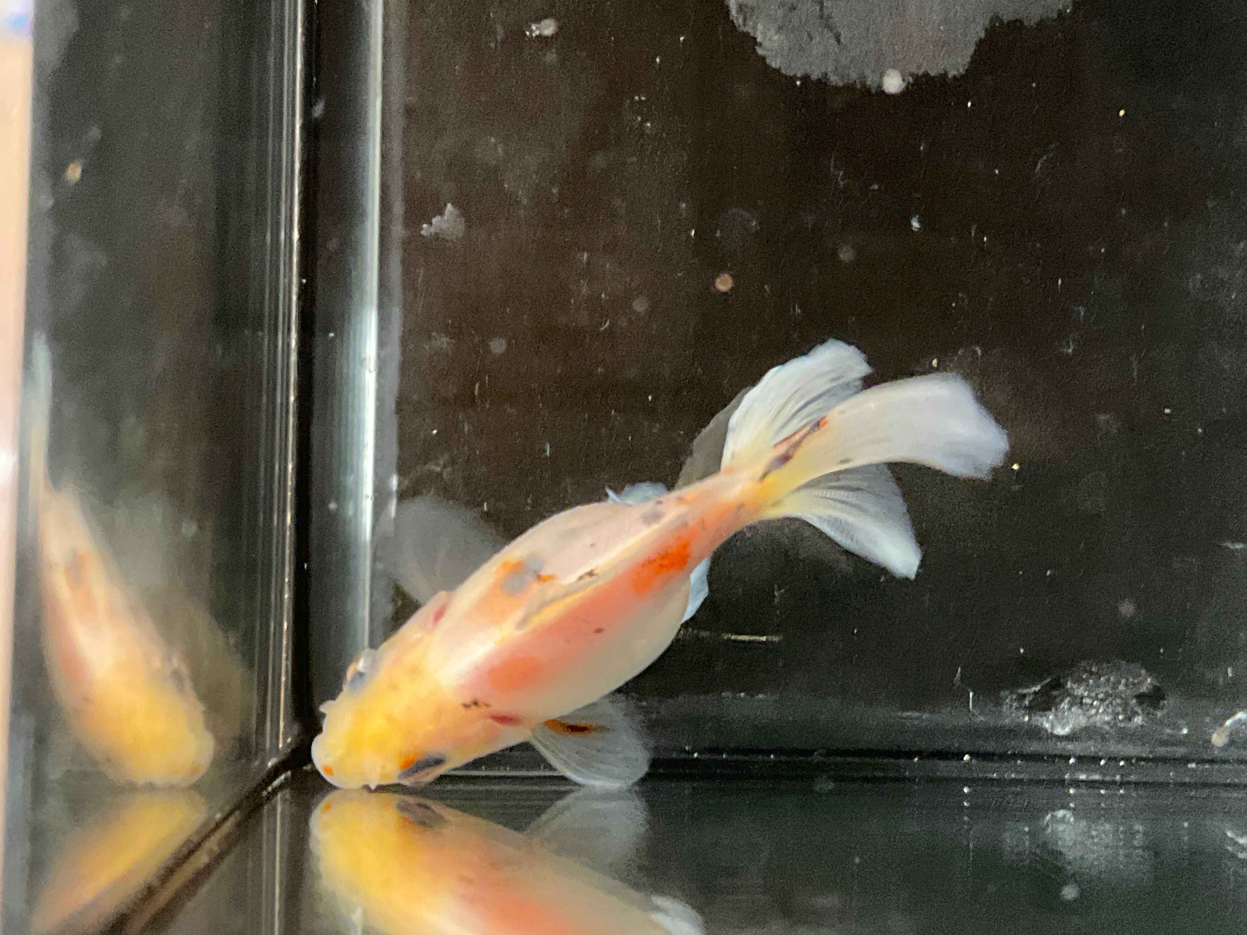 オレンジ、墨、青のドットが入り可愛らしいですが残念ながら尾の先に捲れがあるのでアウトレットとして販売いたします。