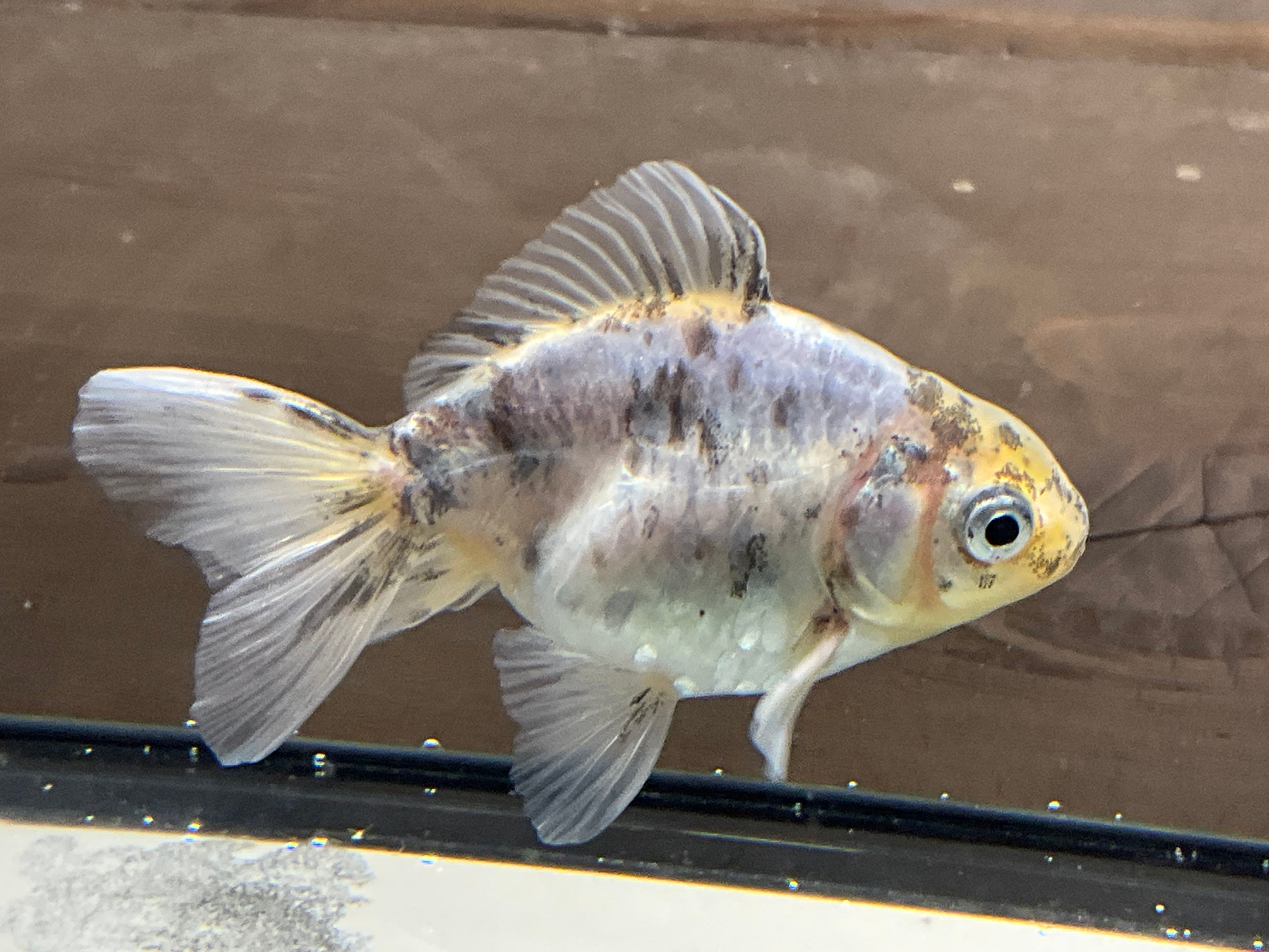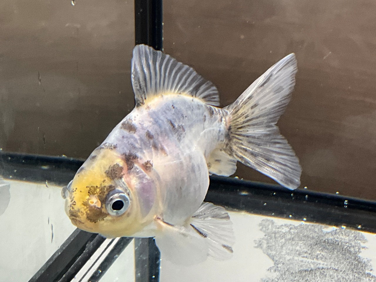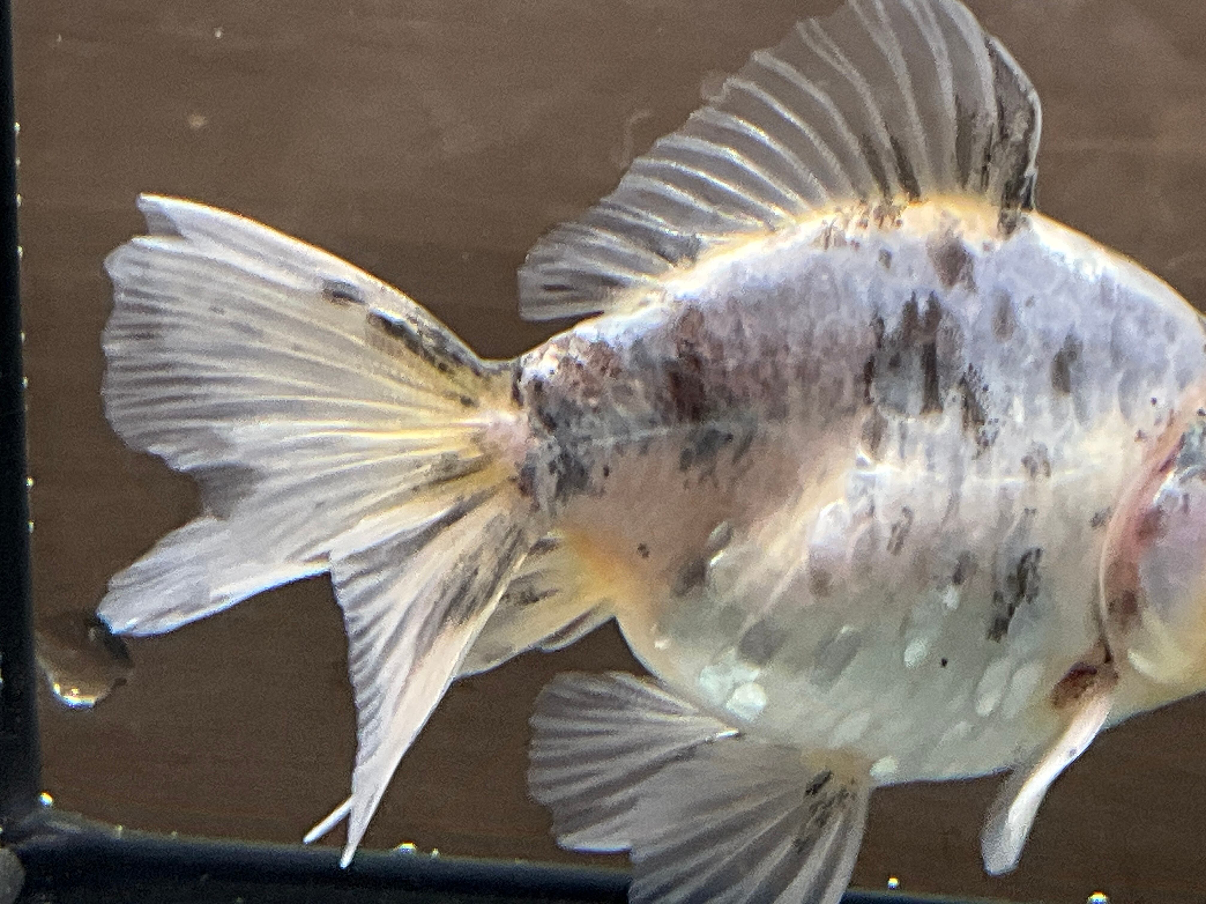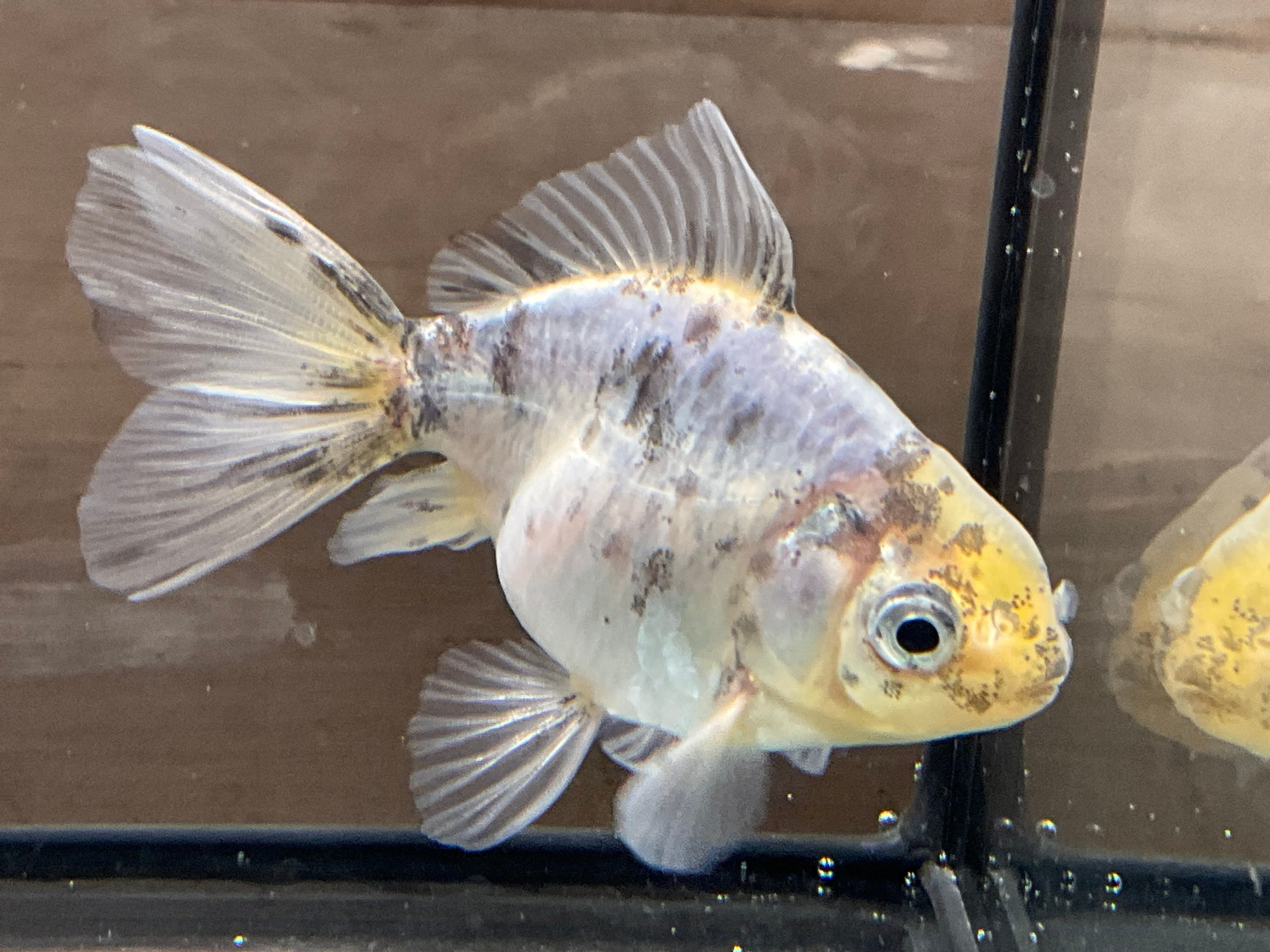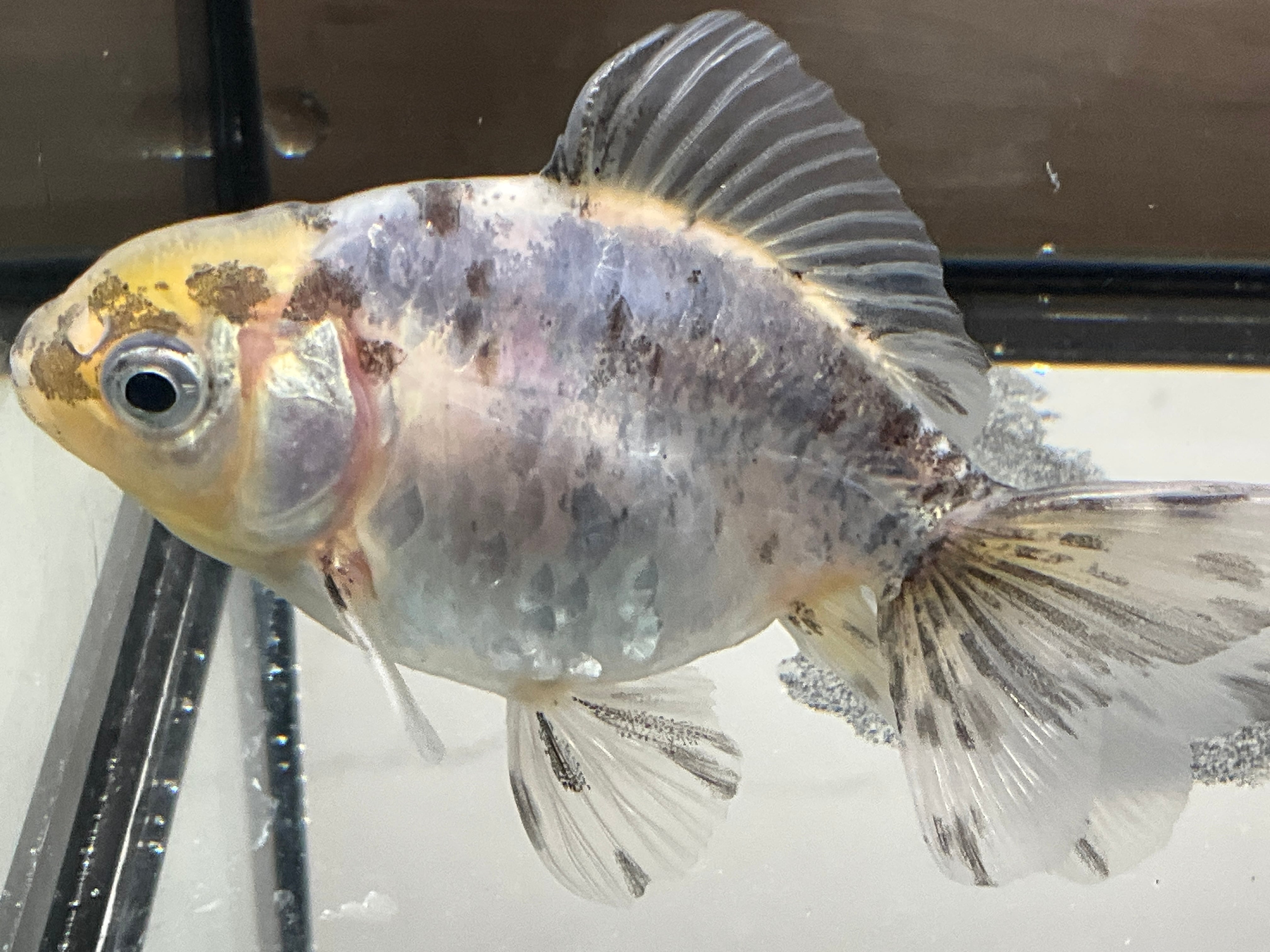 うっすら青みがかったボディに墨のドット、銀鱗のバランスが美しくかっこいい印象ですが尾鰭に捲れが見られる為アウトレット価格にて出品致します。