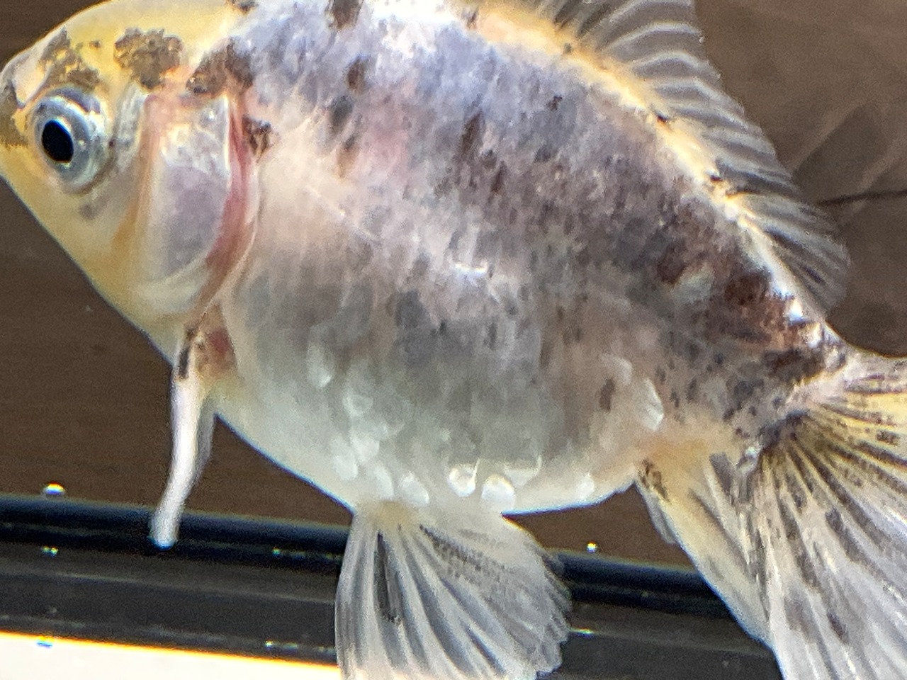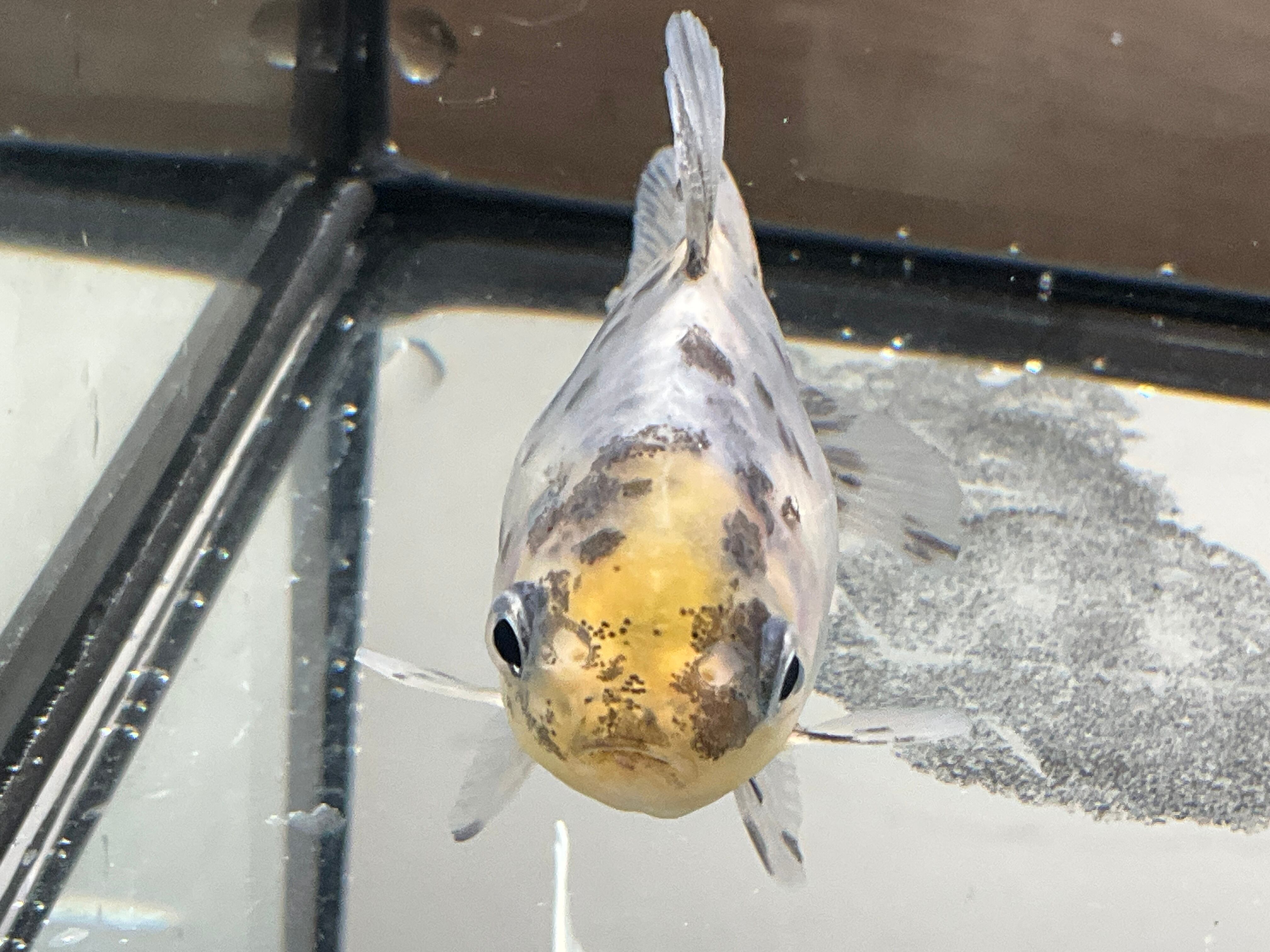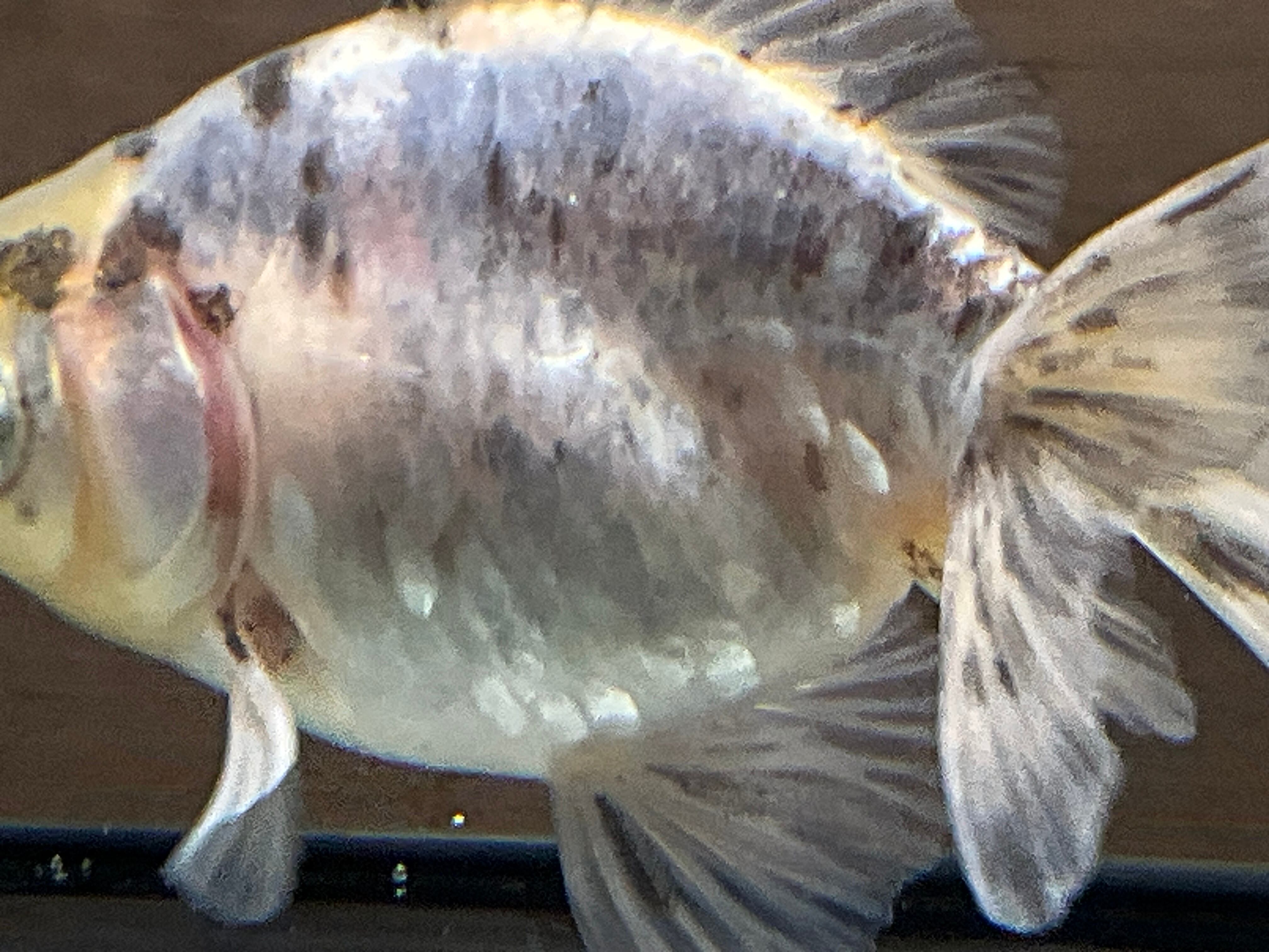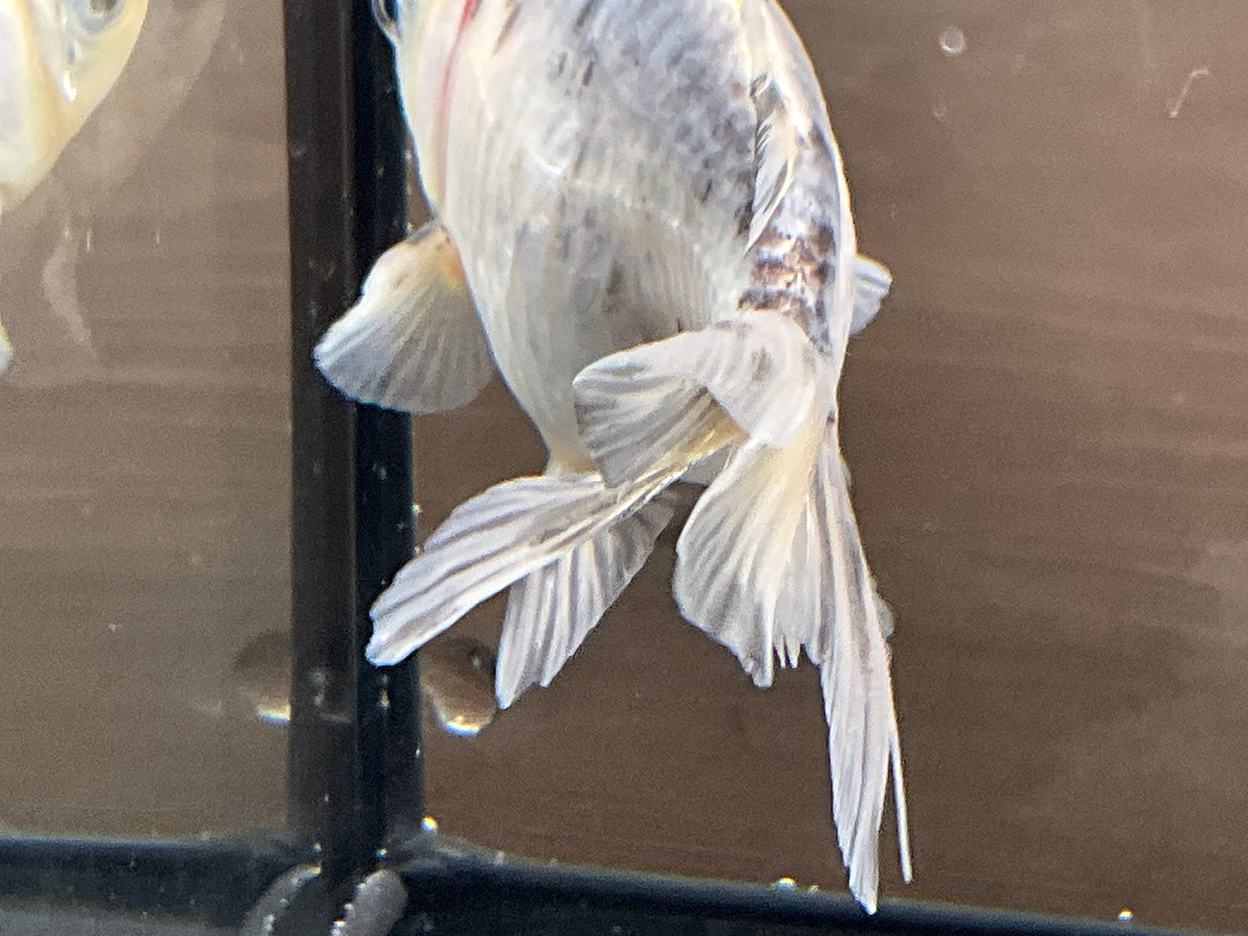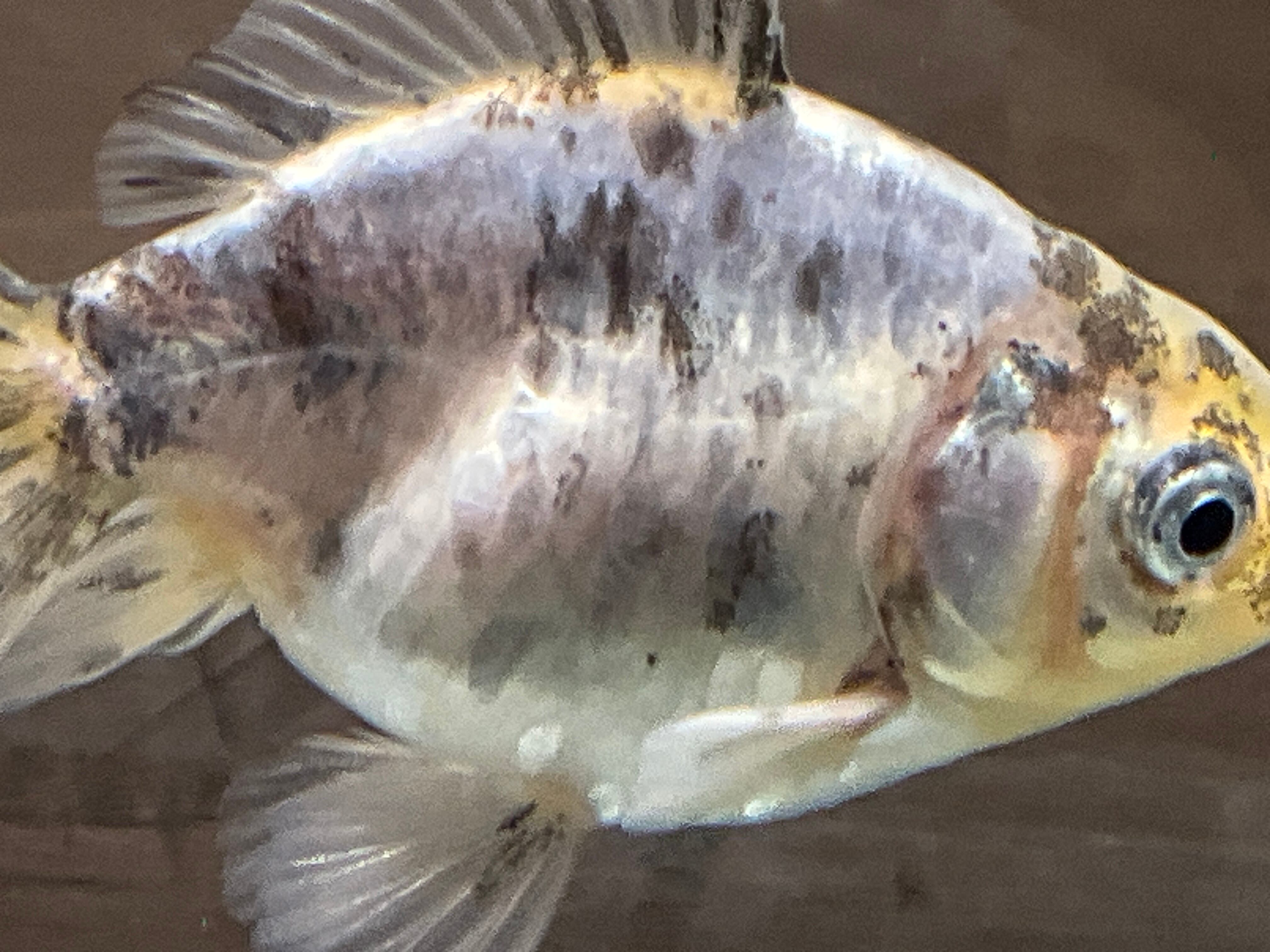 うっすら青みがかったボディに墨のドット、銀鱗のバランスが美しくかっこいい印象ですが尾鰭に捲れが見られる為アウトレット価格にて出品致します。