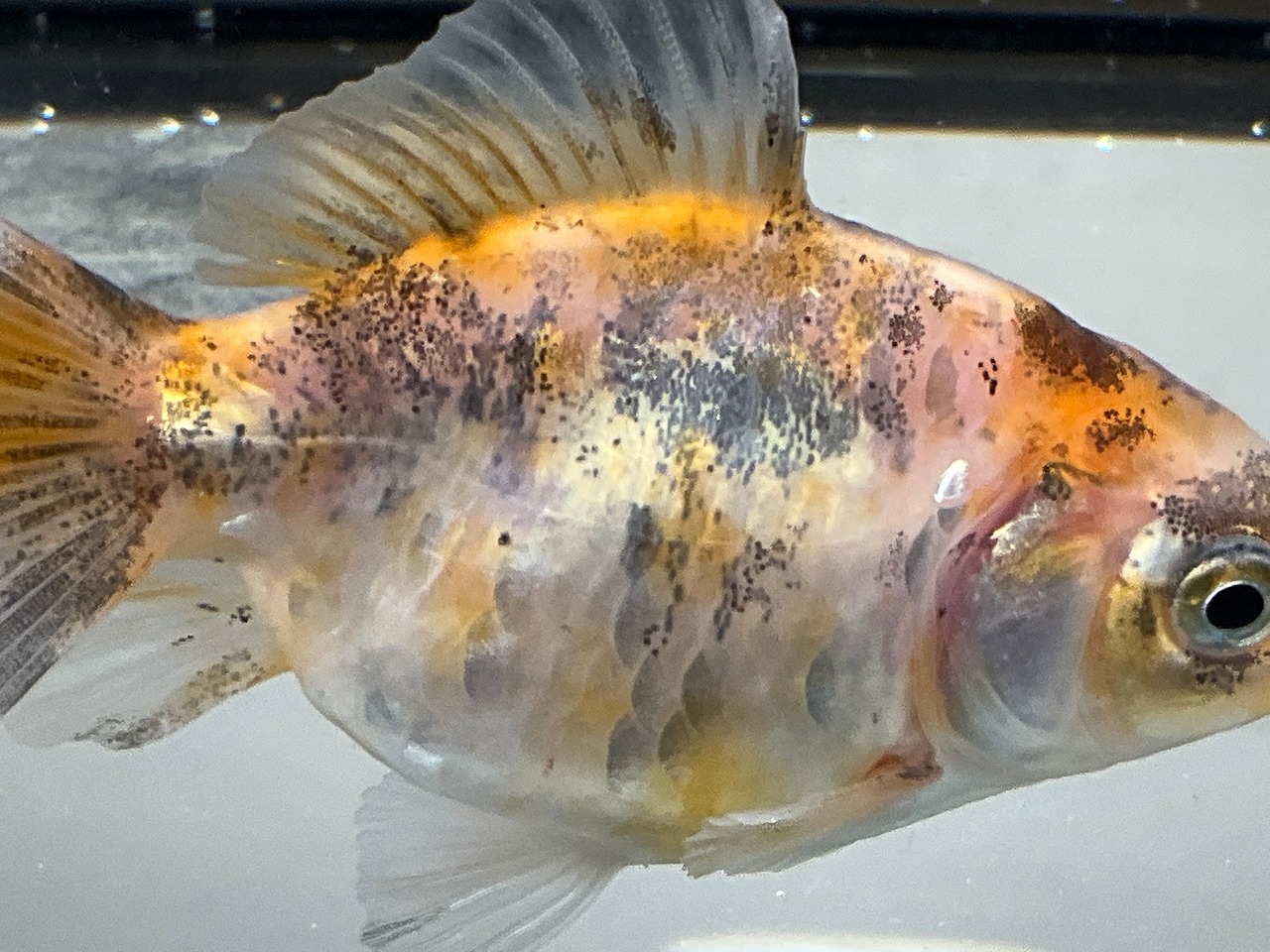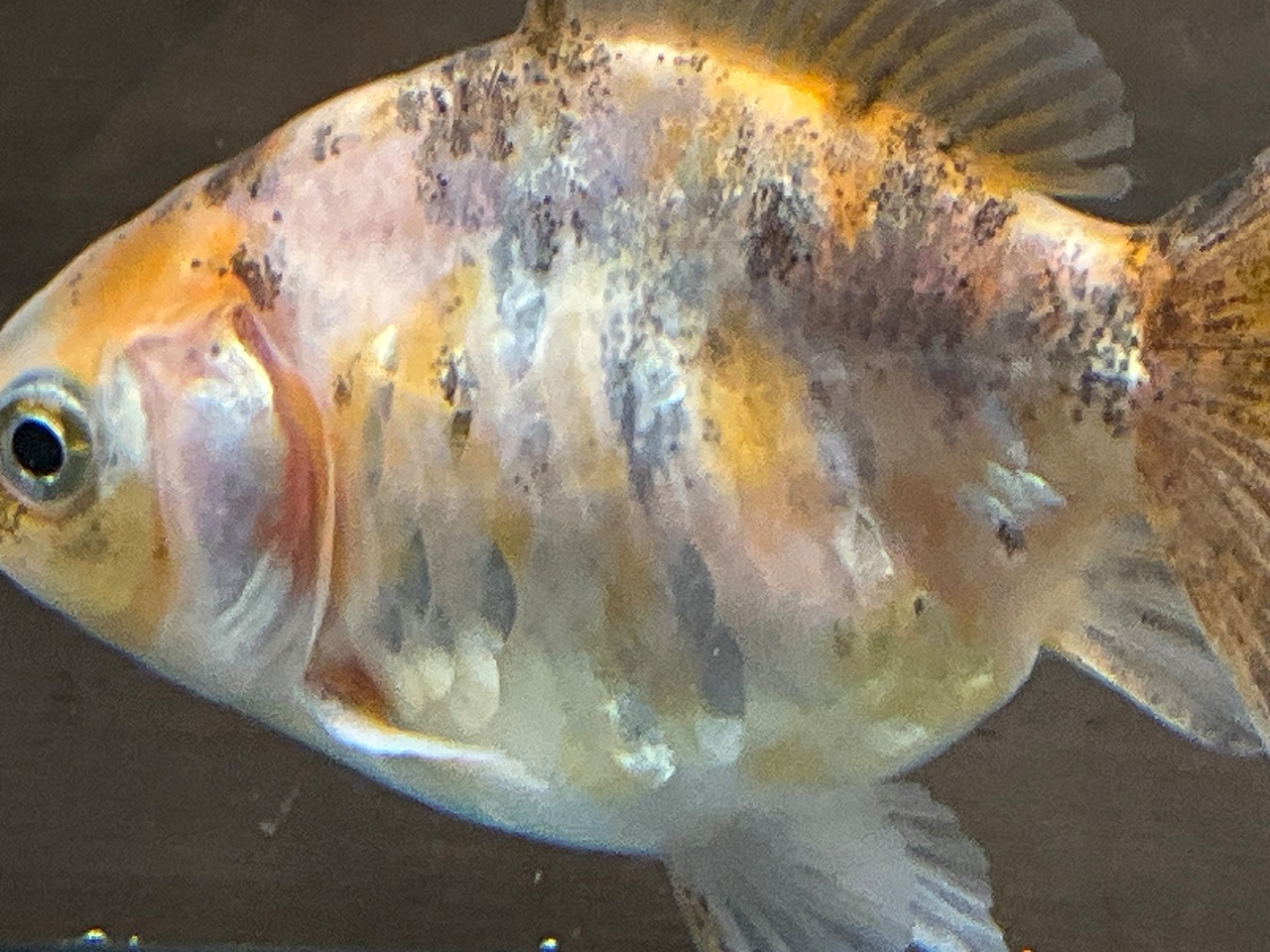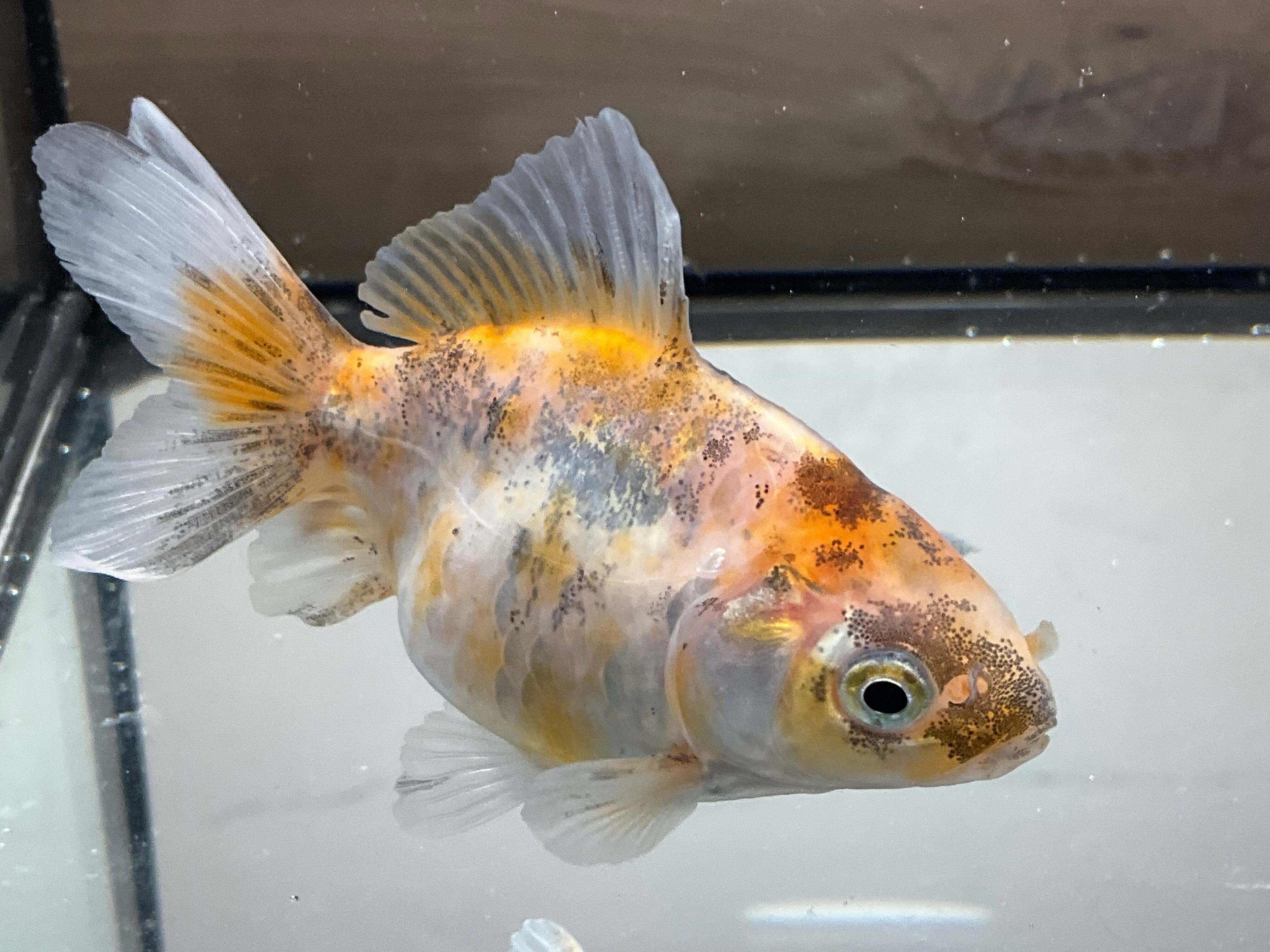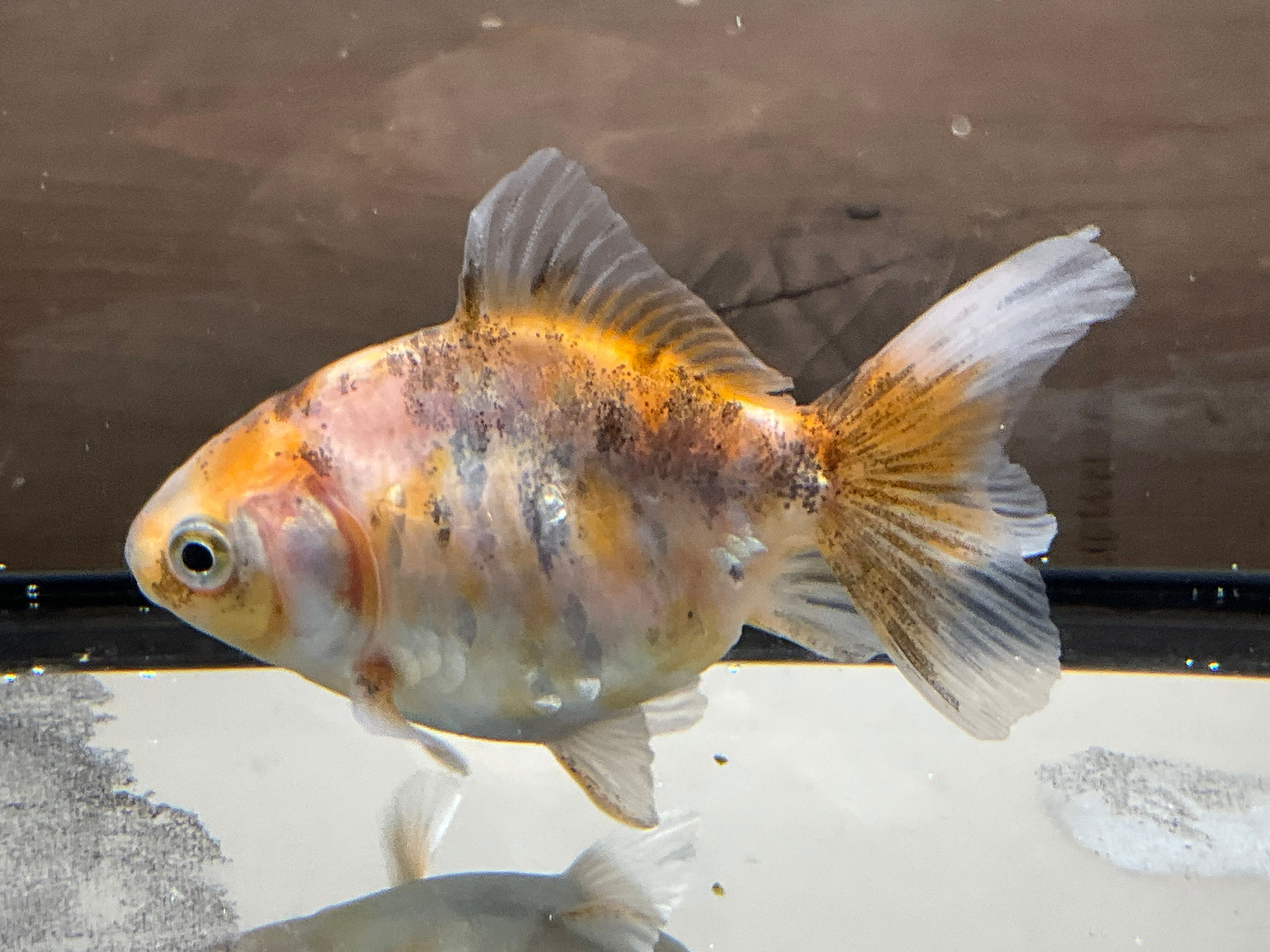 所々入る墨と白と茜色が入り混じる銀鱗が美しく見ていて楽しい一匹となります。