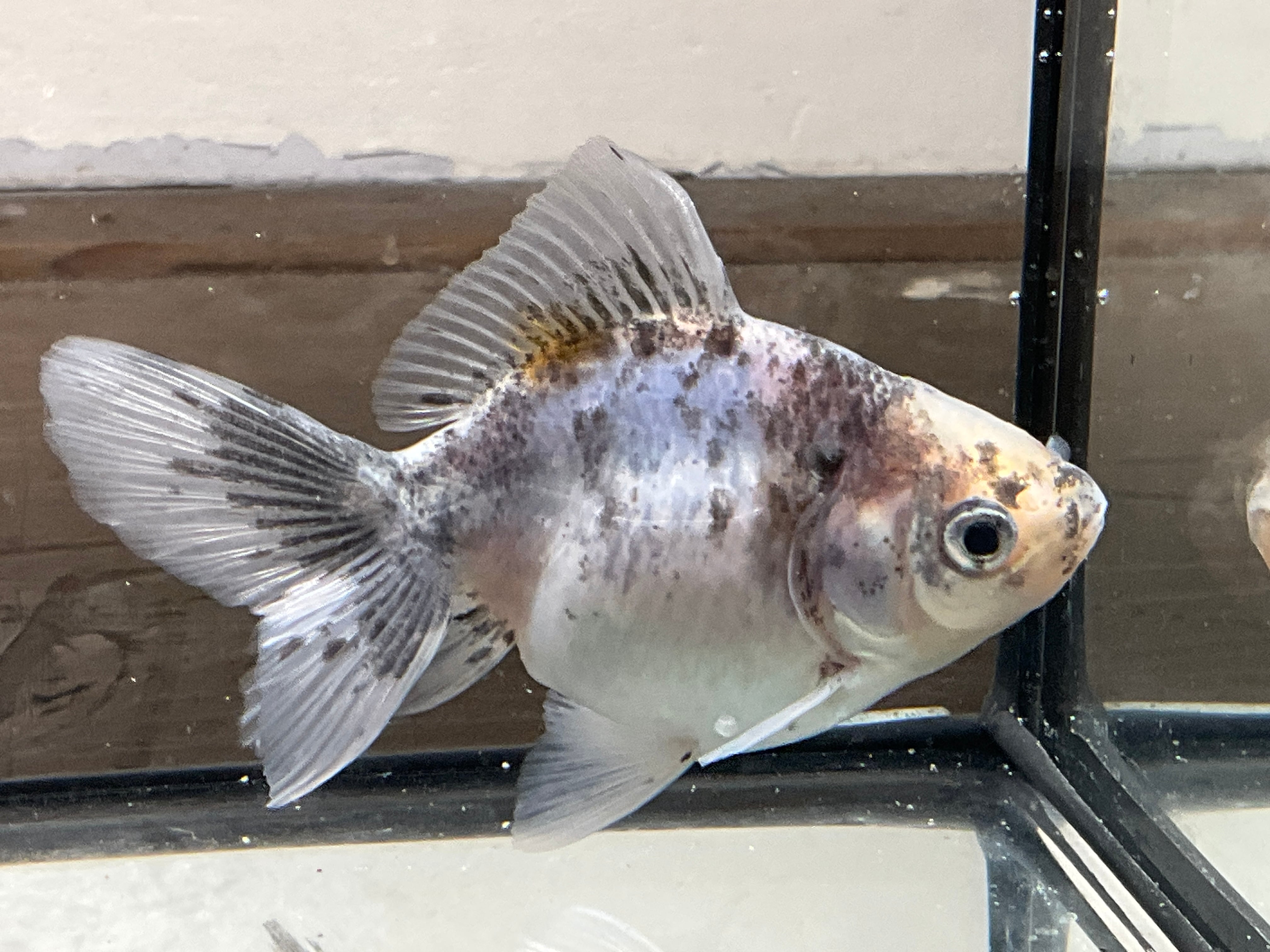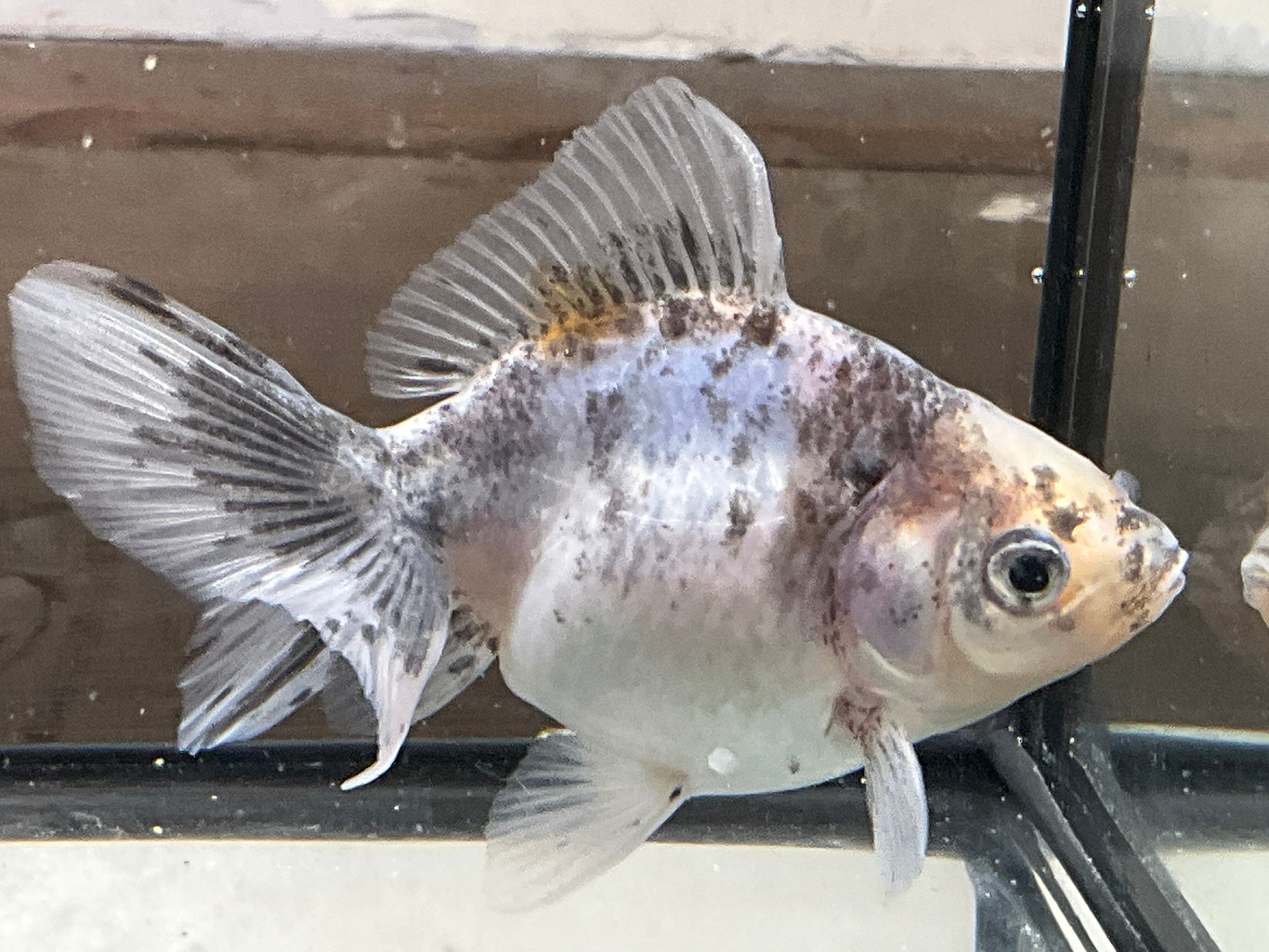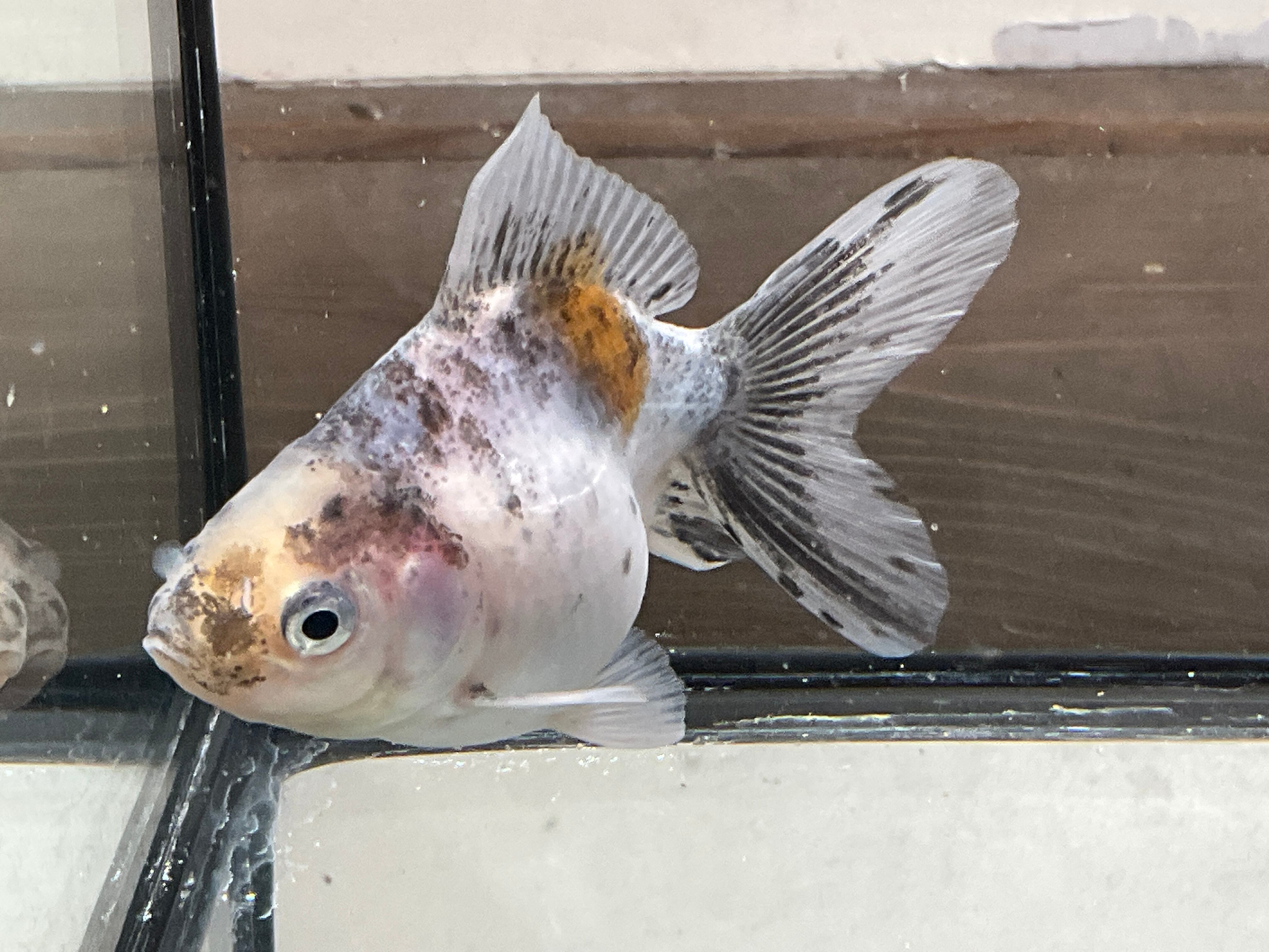青みががかった爽やかなボディにまばらにの乗った墨は美しく背には通常ゼブラオランダには見られないオレンジ色が興味を惹き今後育成していく上でどう模様が変化していくか楽しめる一匹となります。