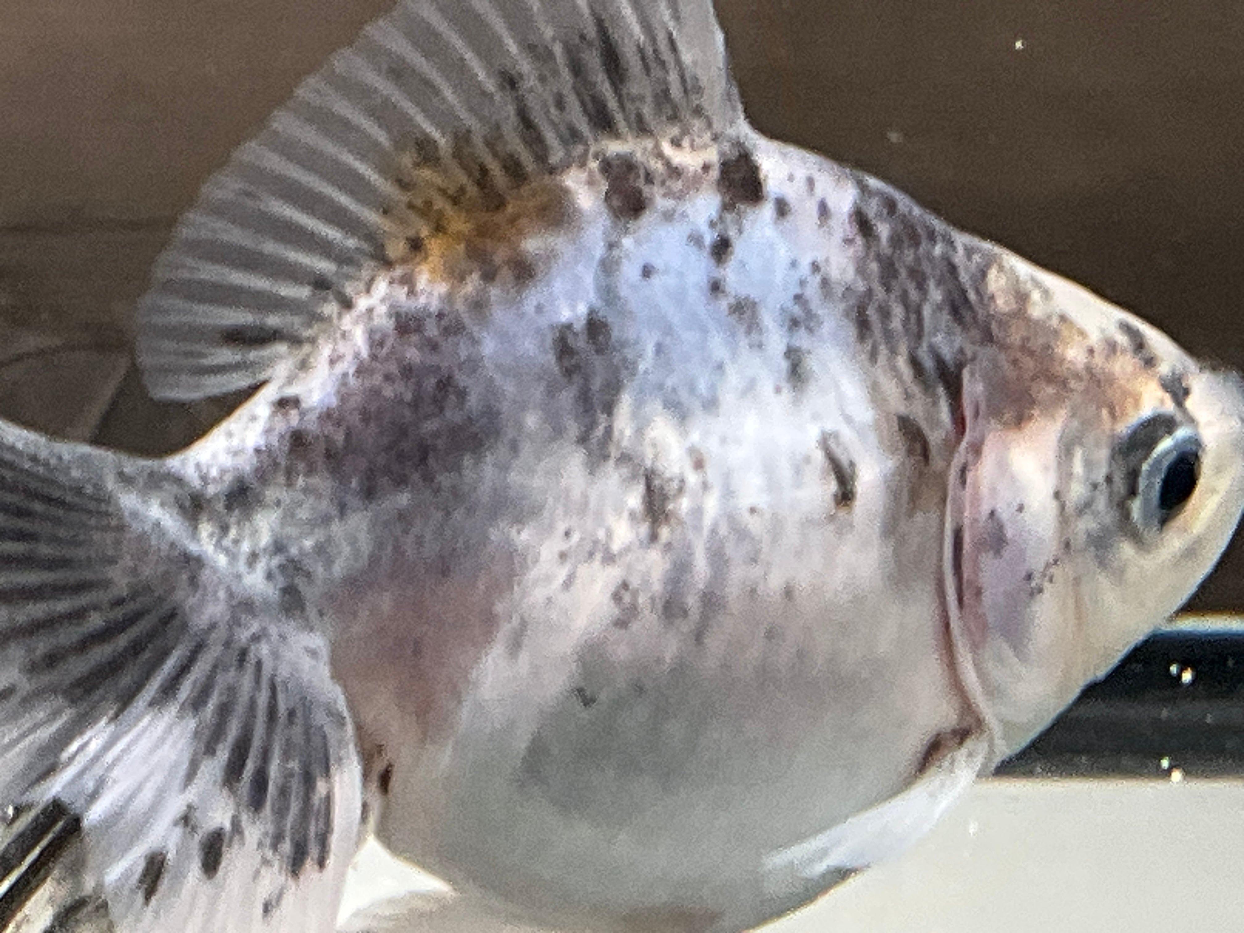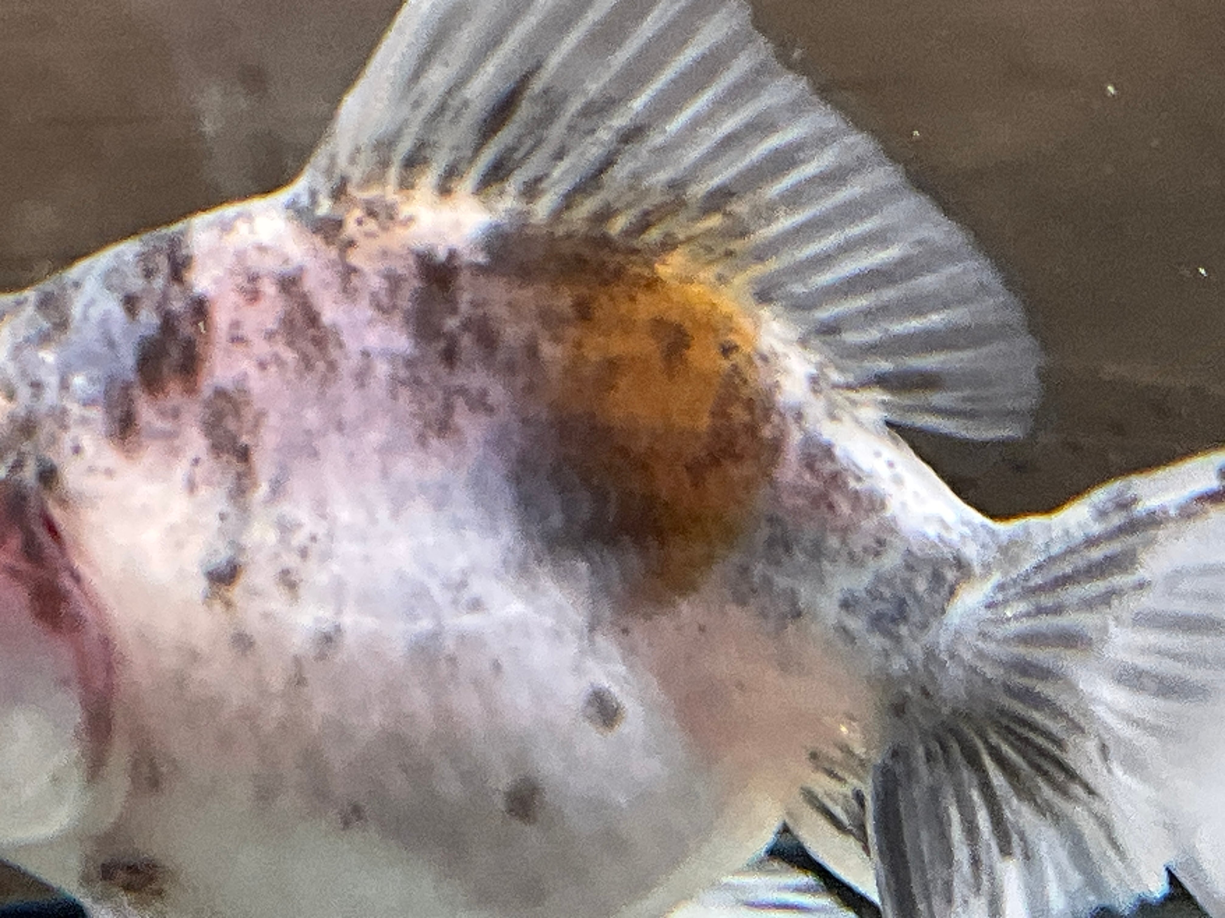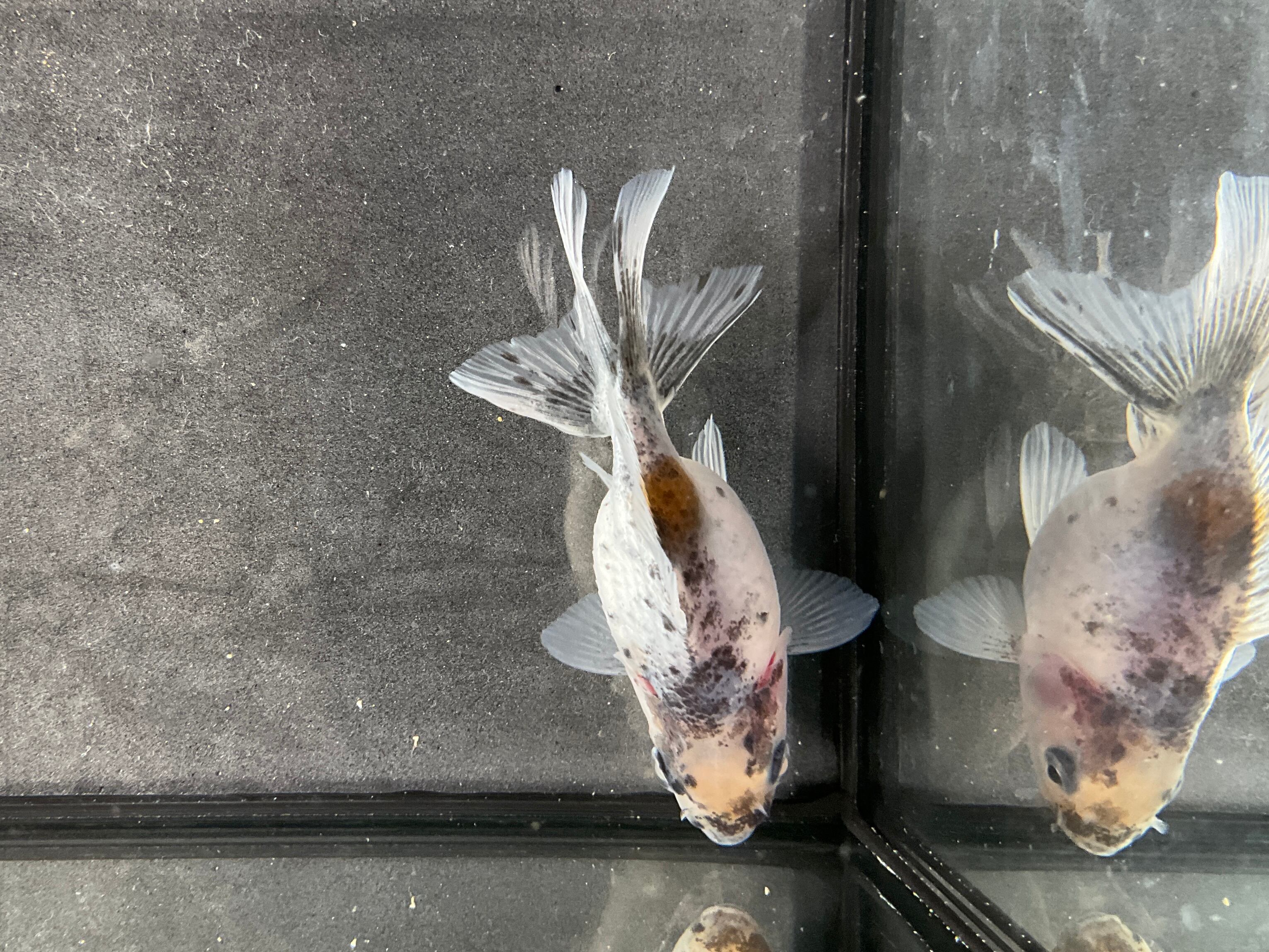 青みががかった爽やかなボディにまばらにの乗った墨は美しく背には通常ゼブラオランダには見られないオレンジ色が興味を惹き今後育成していく上でどう模様が変化していくか楽しめる一匹となります。