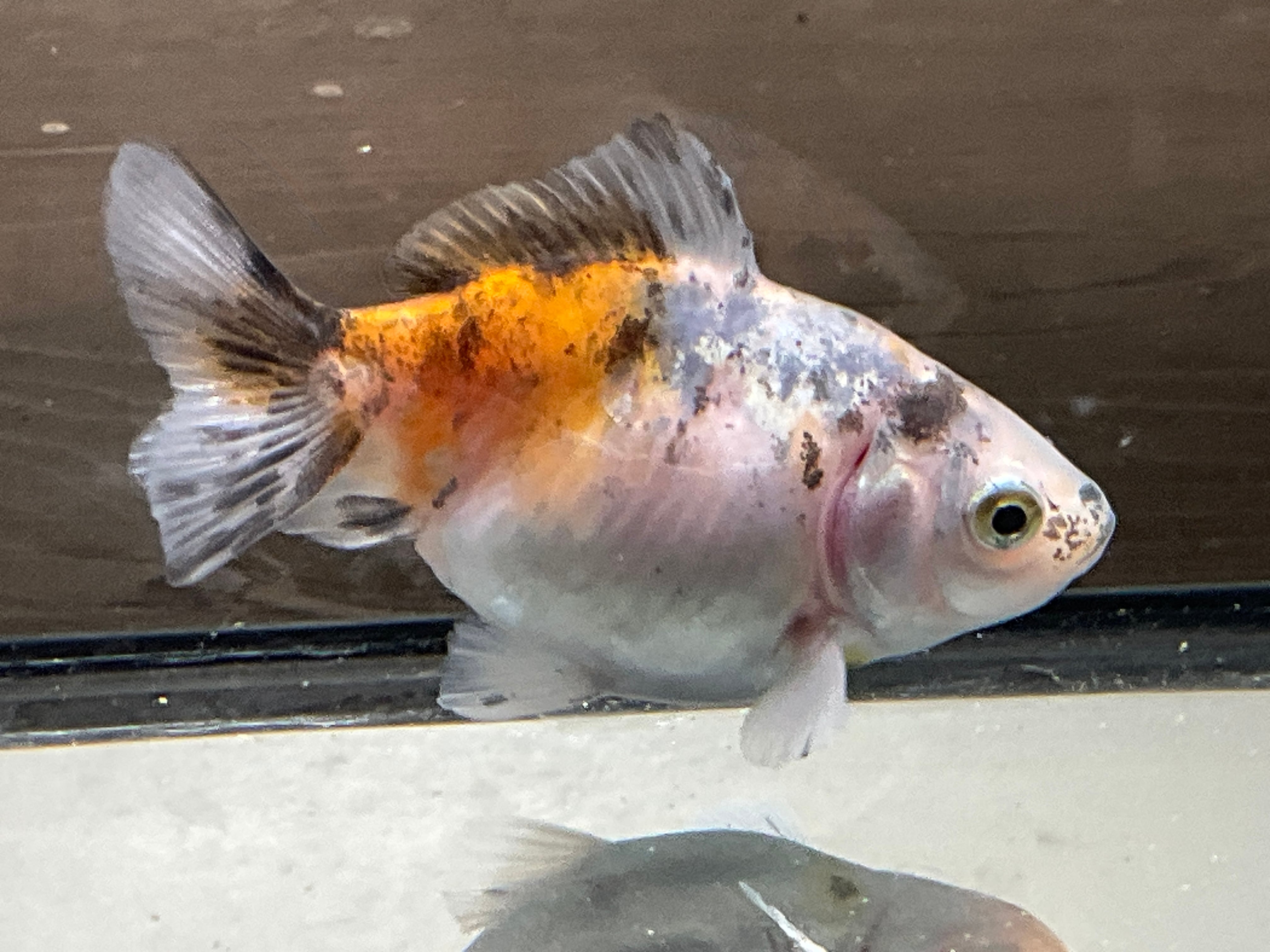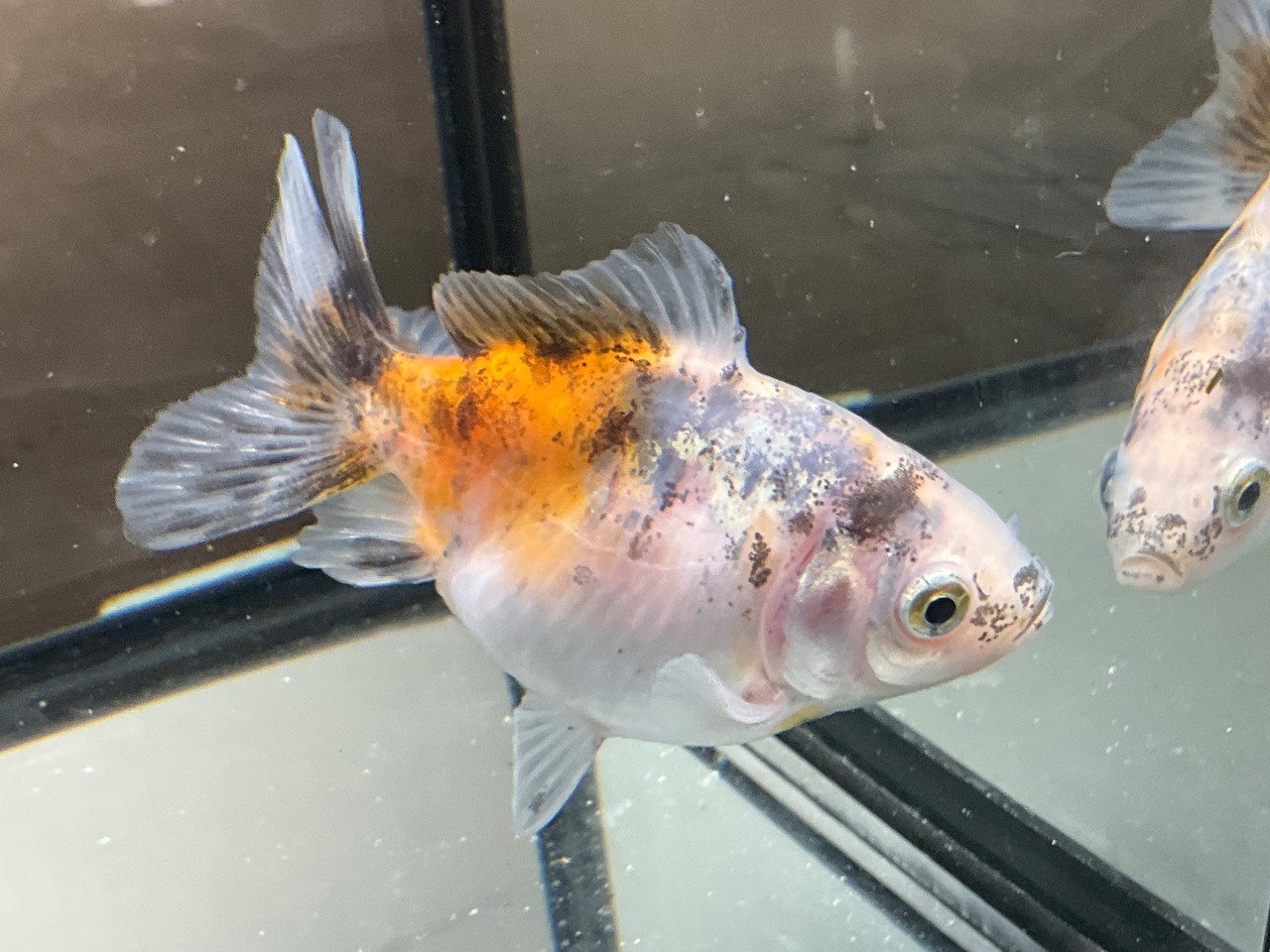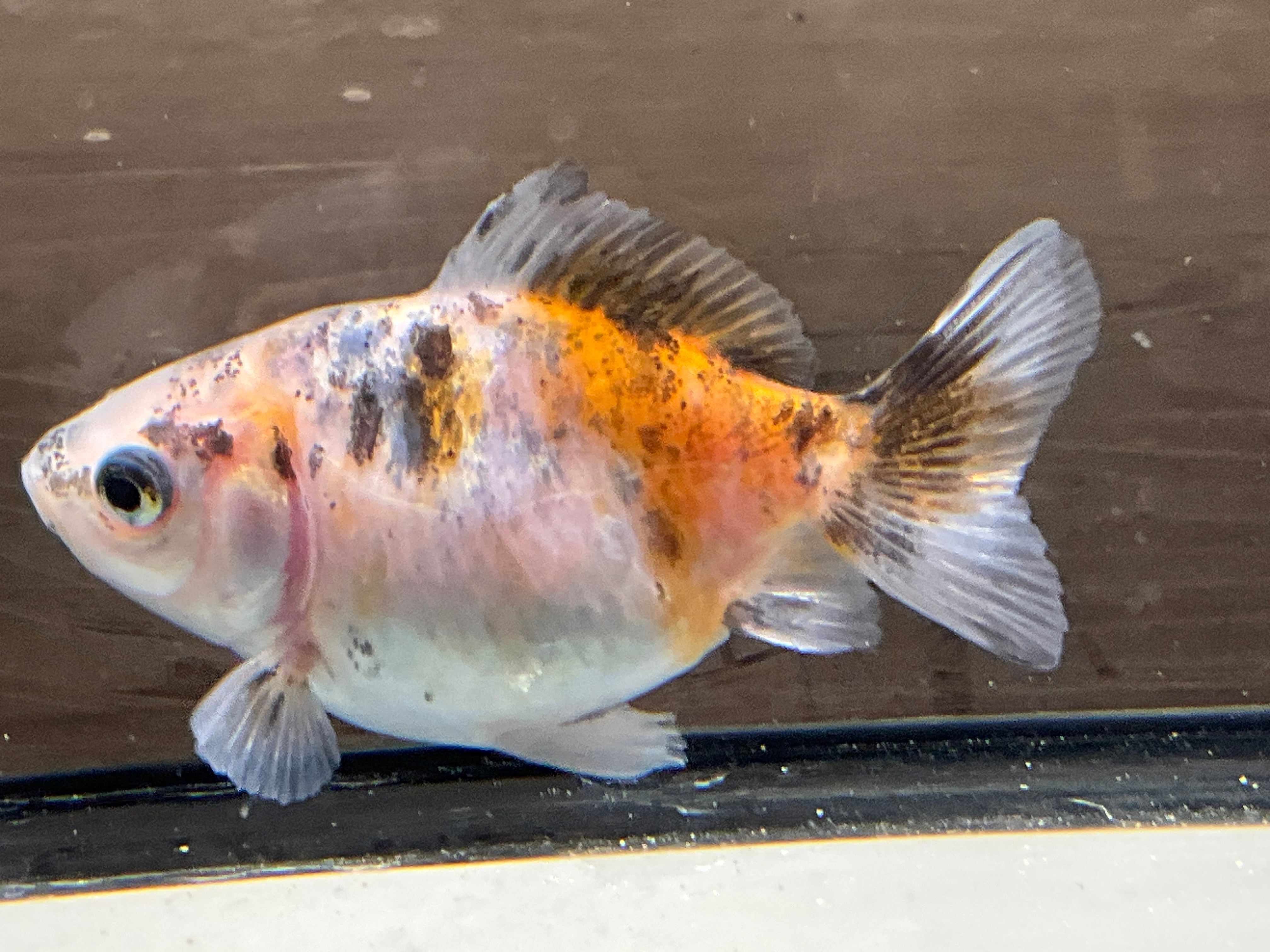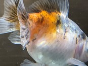 白勝ちのボディに後ろは赤、前の肩にかけて複雑で綺麗な模様で美しい一匹です。