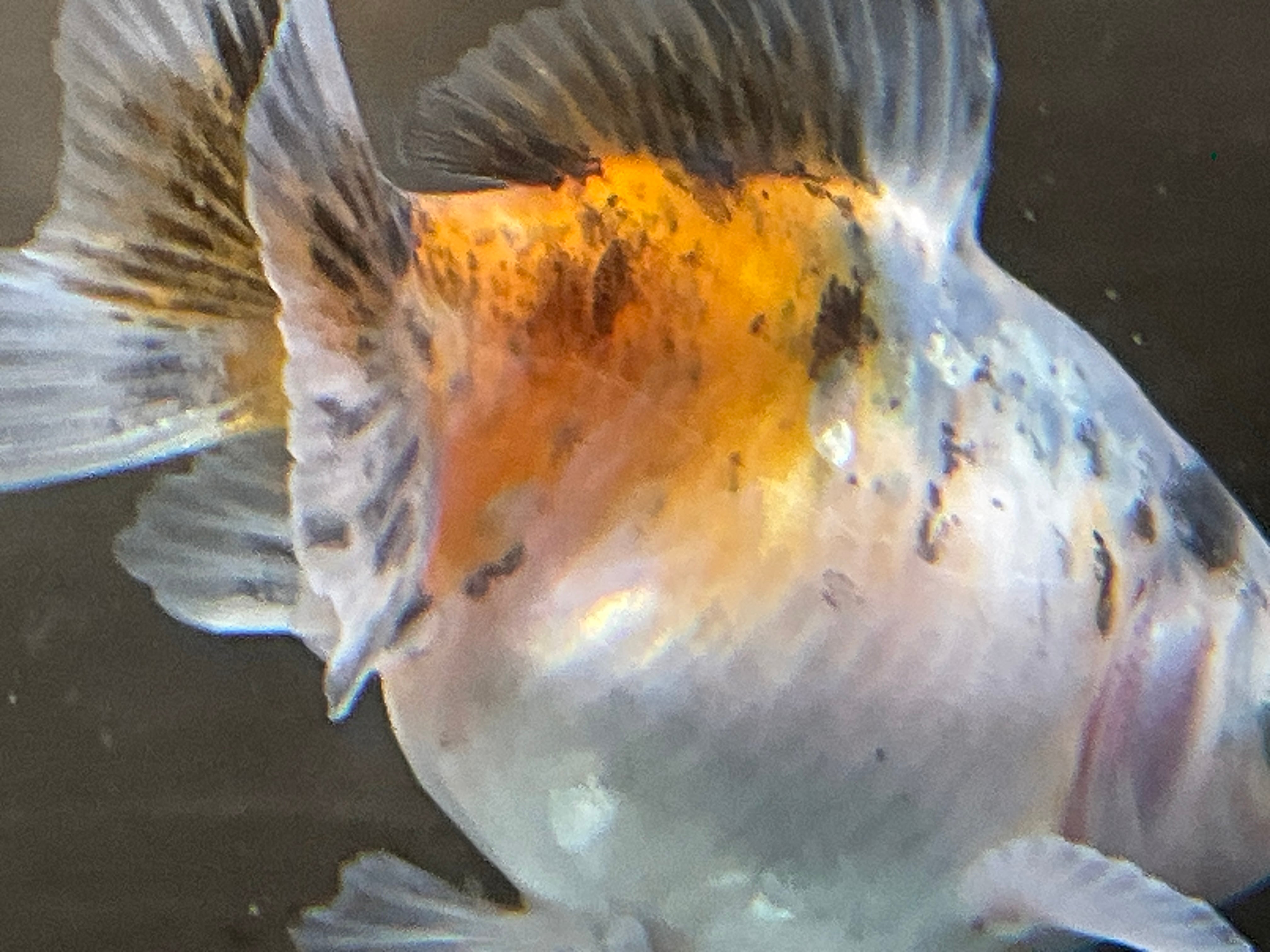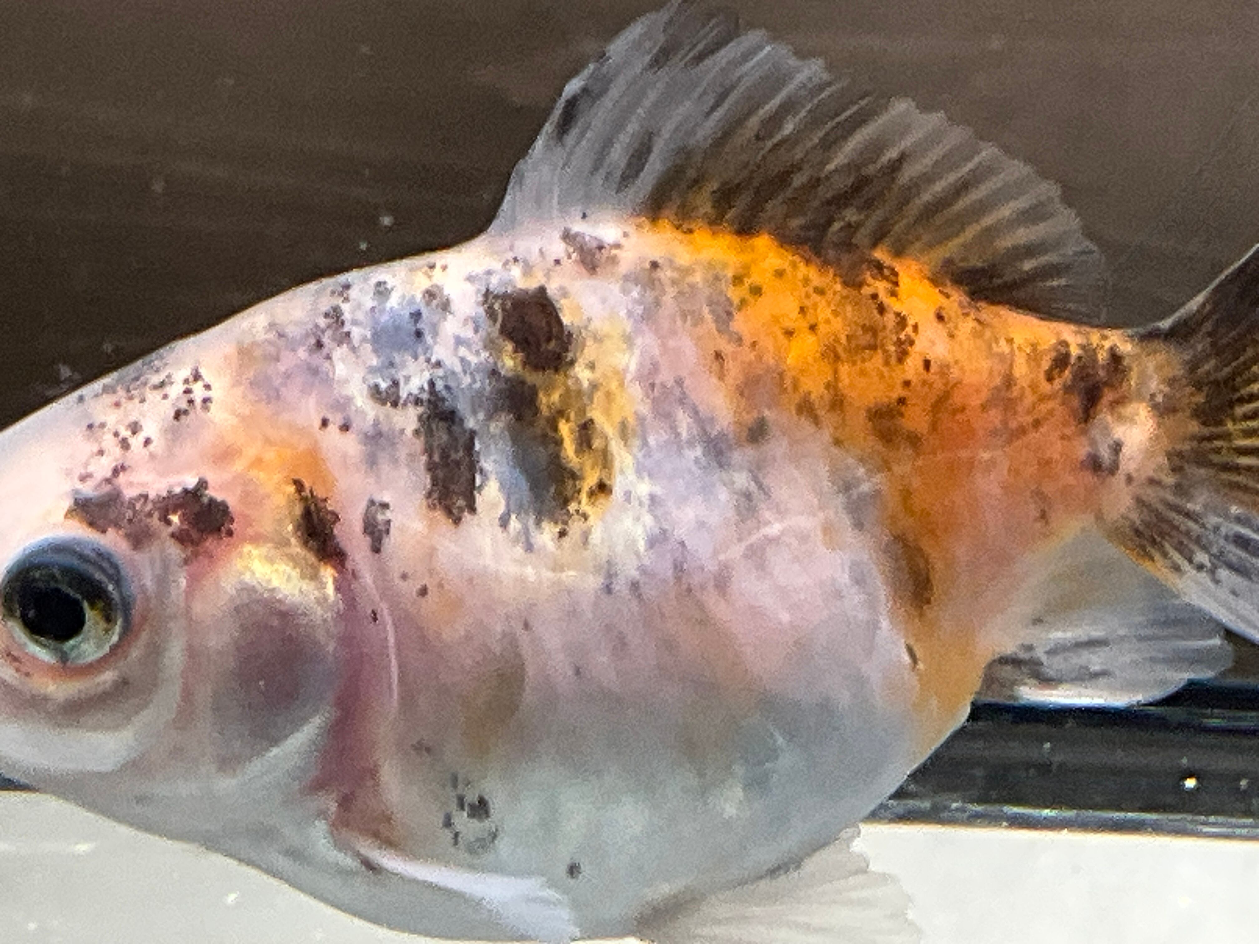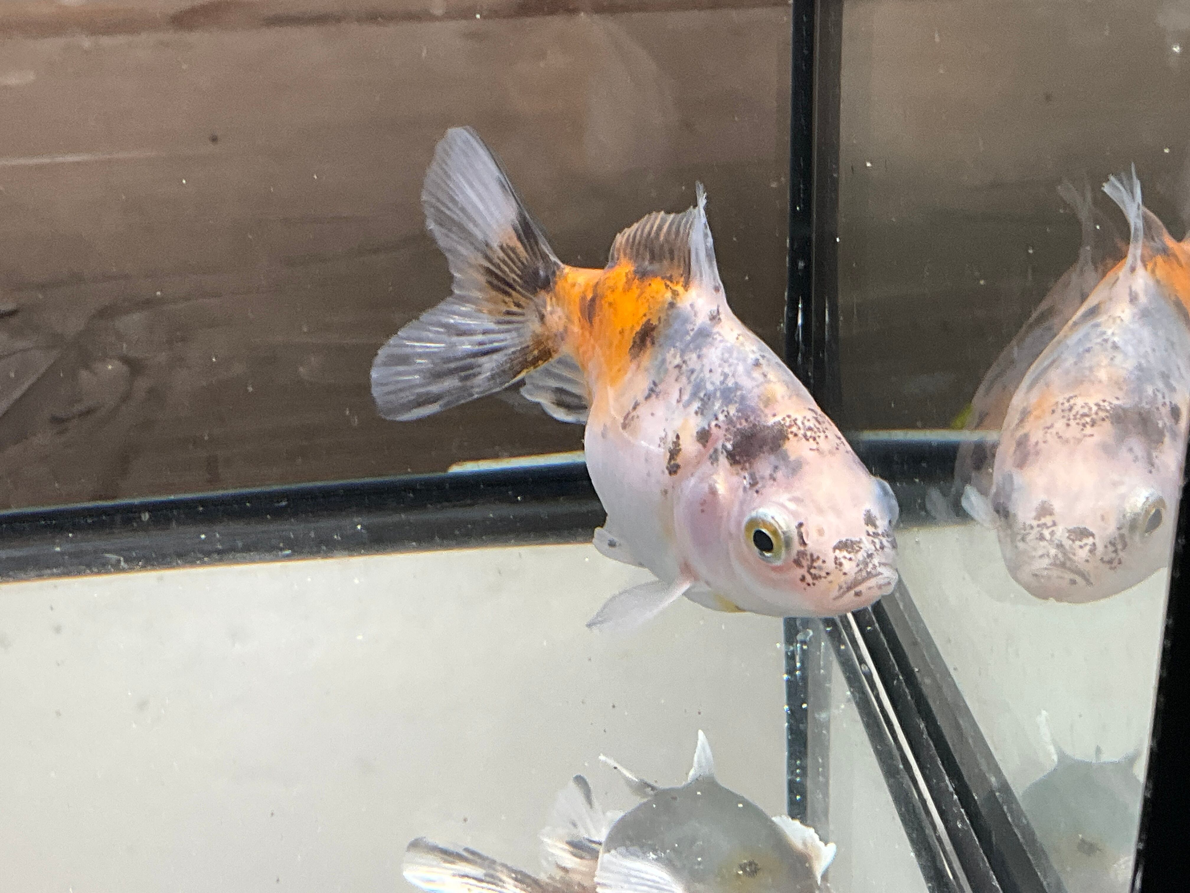 白勝ちのボディに後ろは赤、前の肩にかけて複雑で綺麗な模様で美しい一匹です。