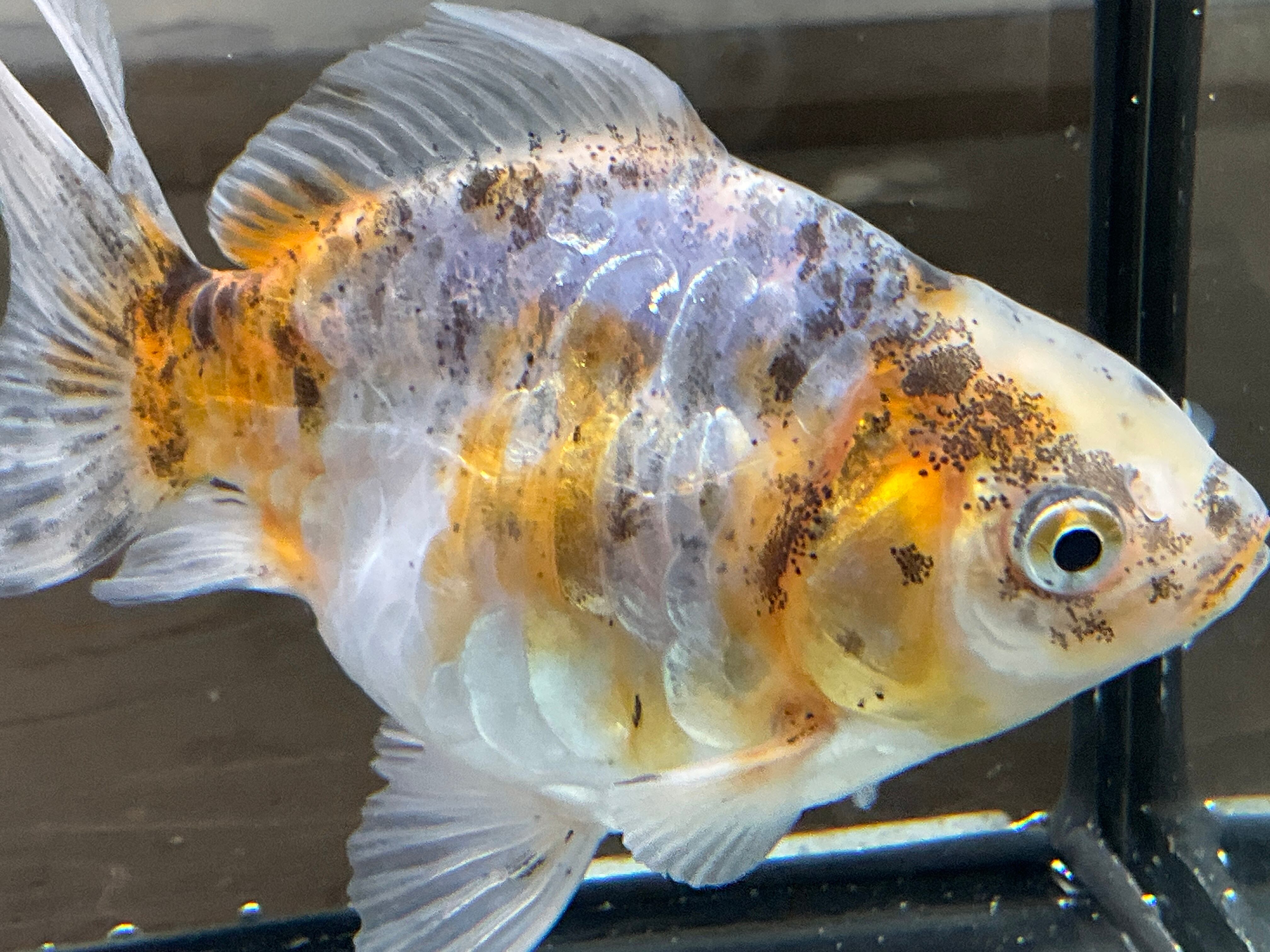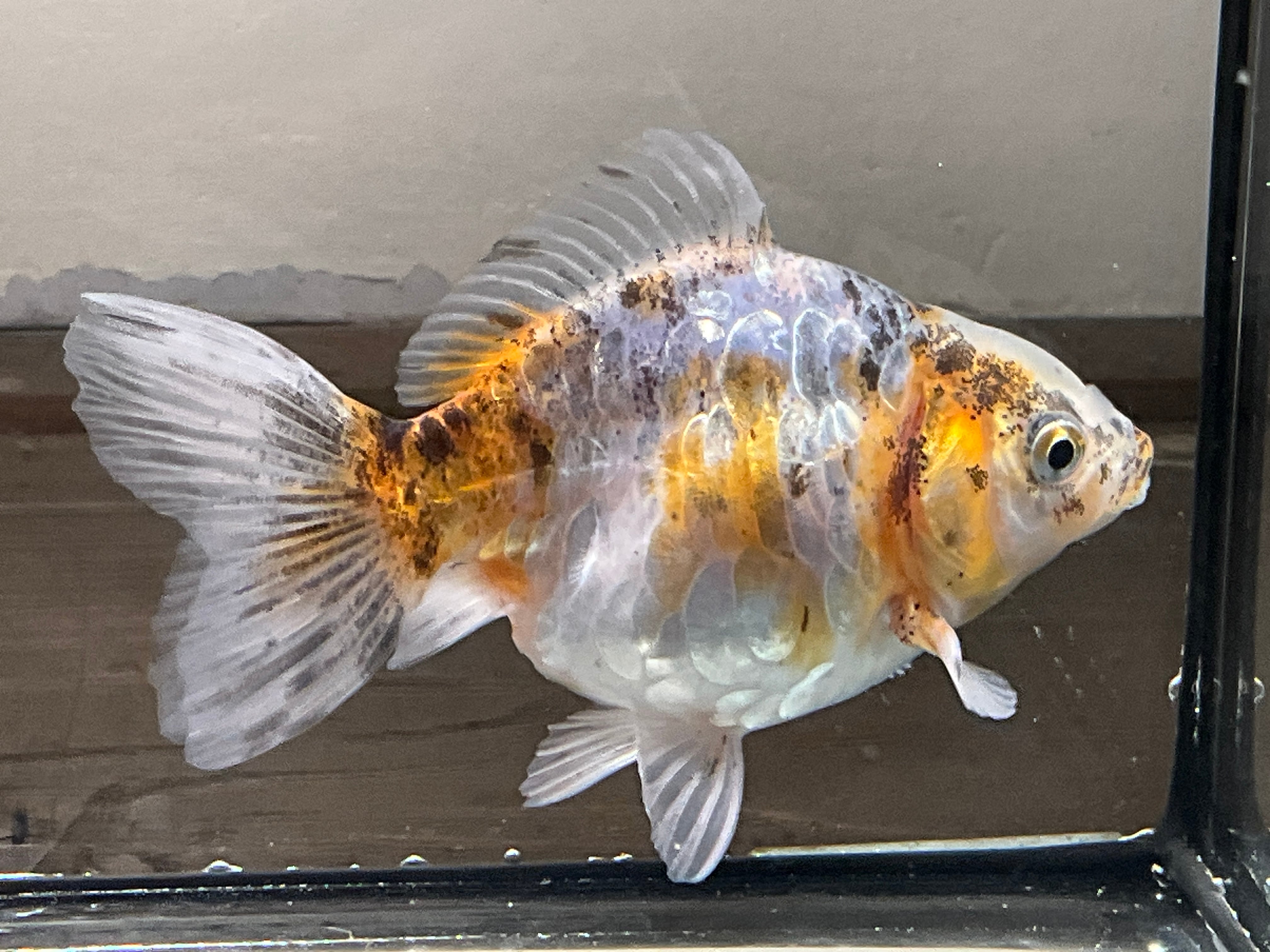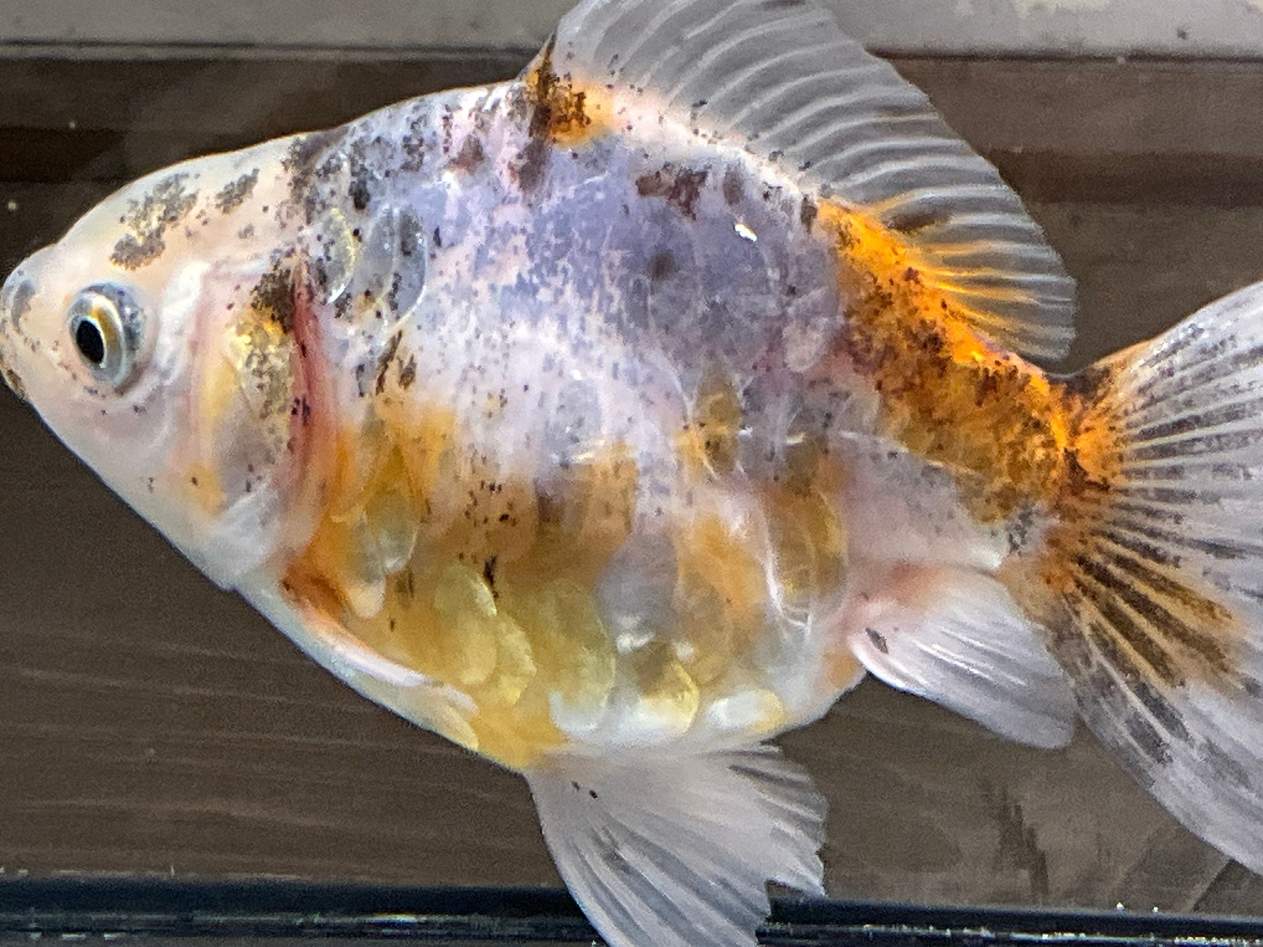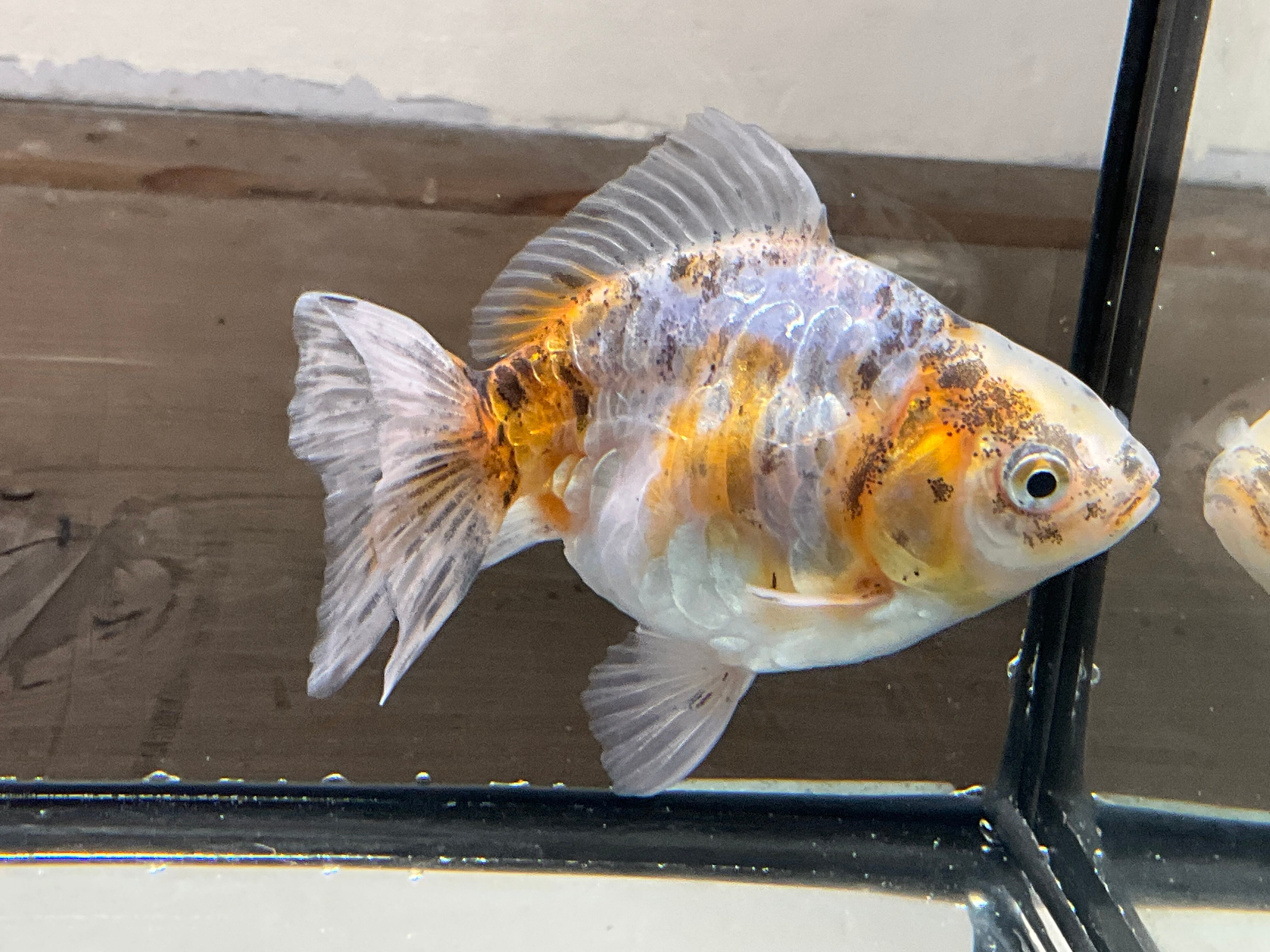 大鱗天龍は昨年から何匹か販売してきましたが、ここまで完璧な子はなかなか作ることはできません。大きく育てることができれば鱗の大きさも相まって金魚の常識を覆すような一匹になると容易に想像ができるクオリティの一匹です。
