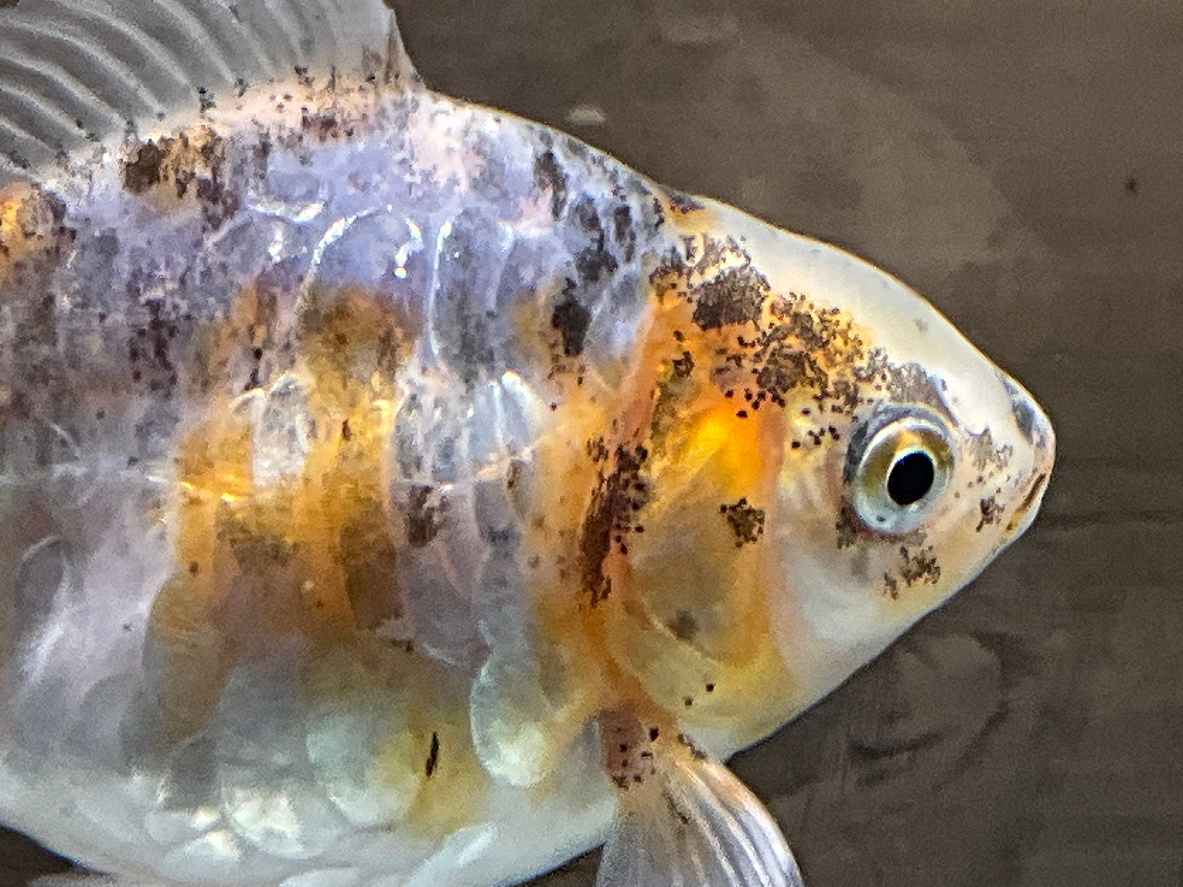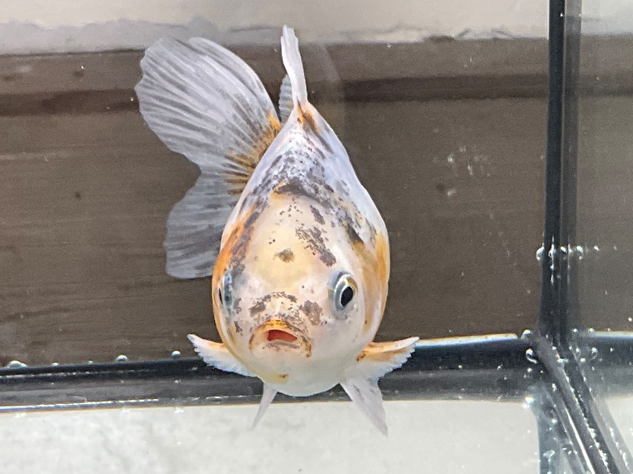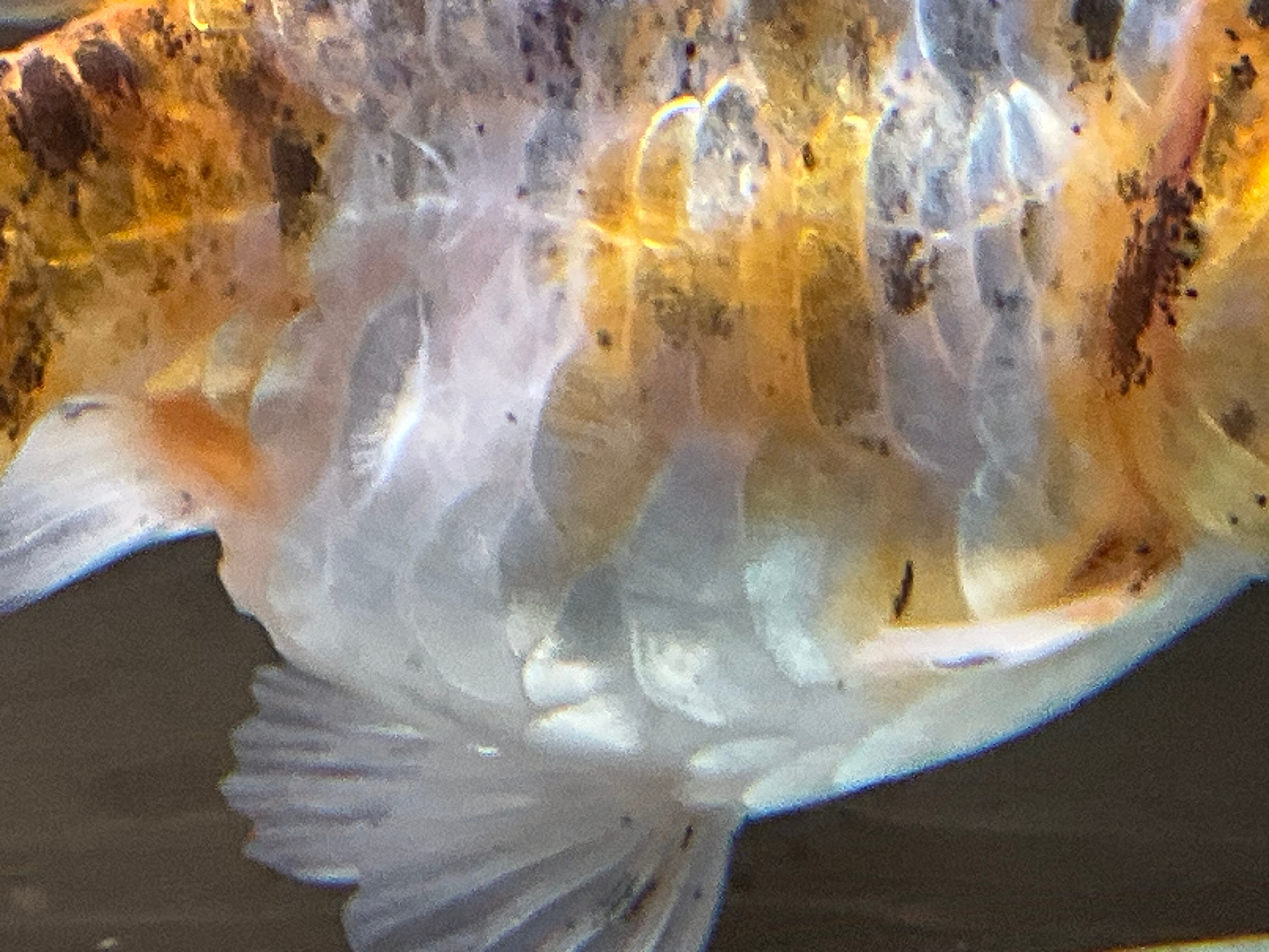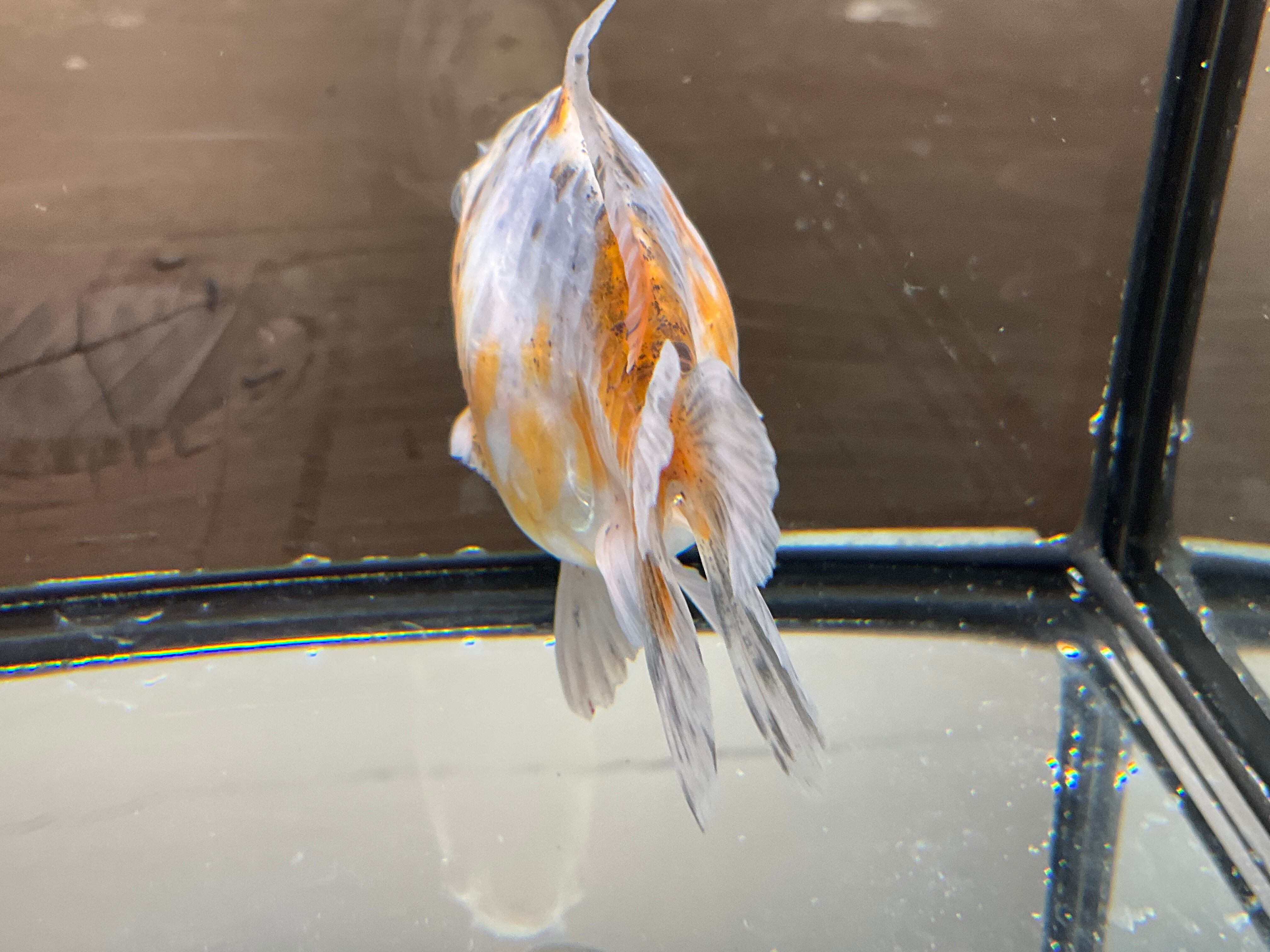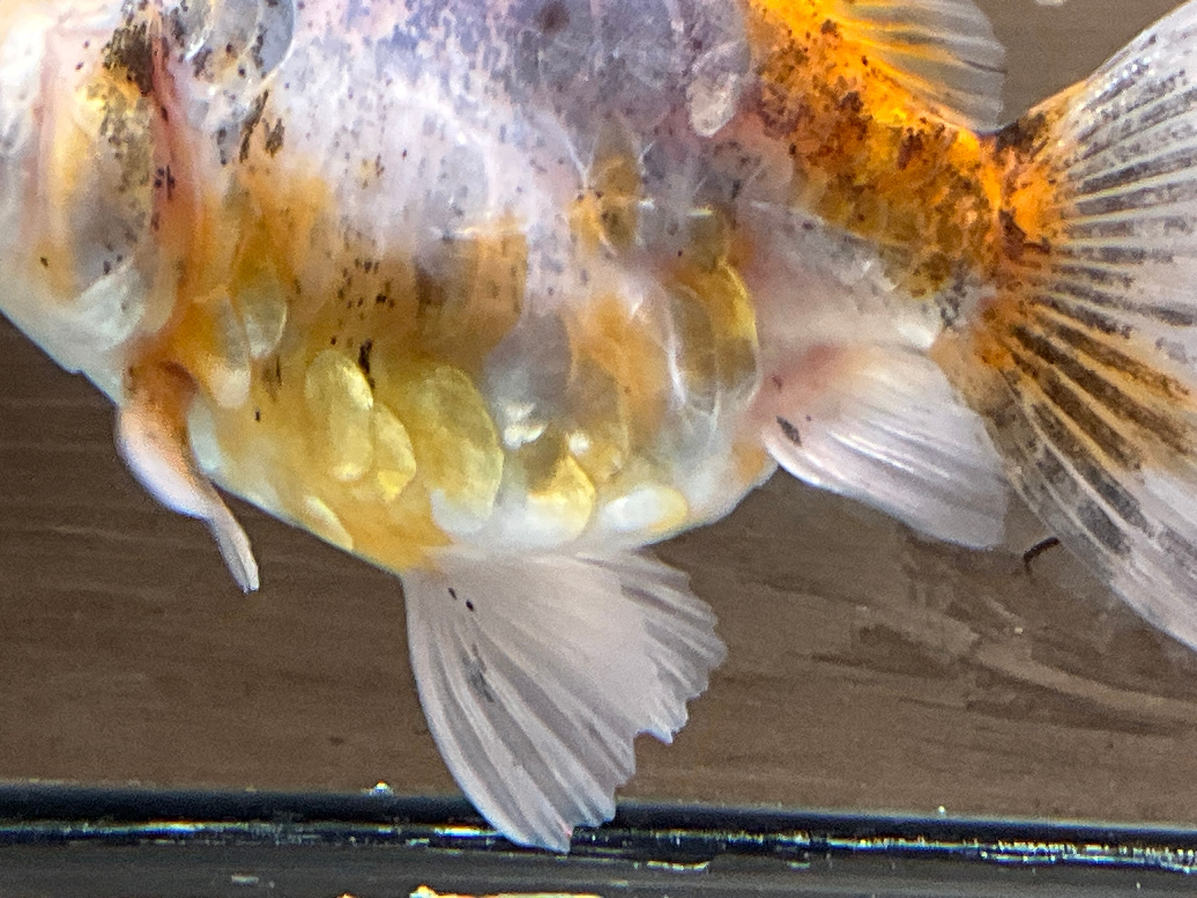 大鱗天龍は昨年から何匹か販売してきましたが、ここまで完璧な子はなかなか作ることはできません。大きく育てることができれば鱗の大きさも相まって金魚の常識を覆すような一匹になると容易に想像ができるクオリティの一匹です。