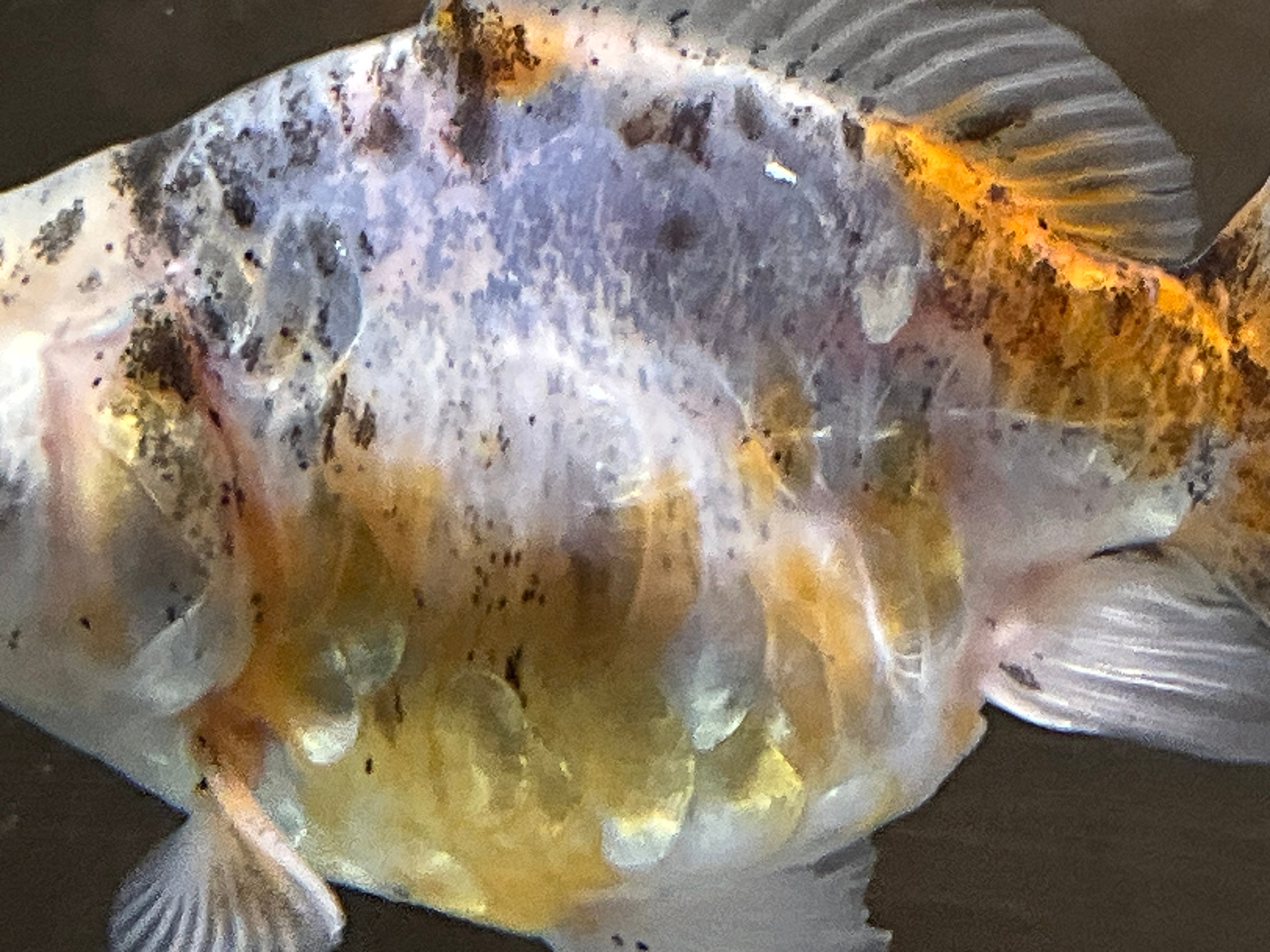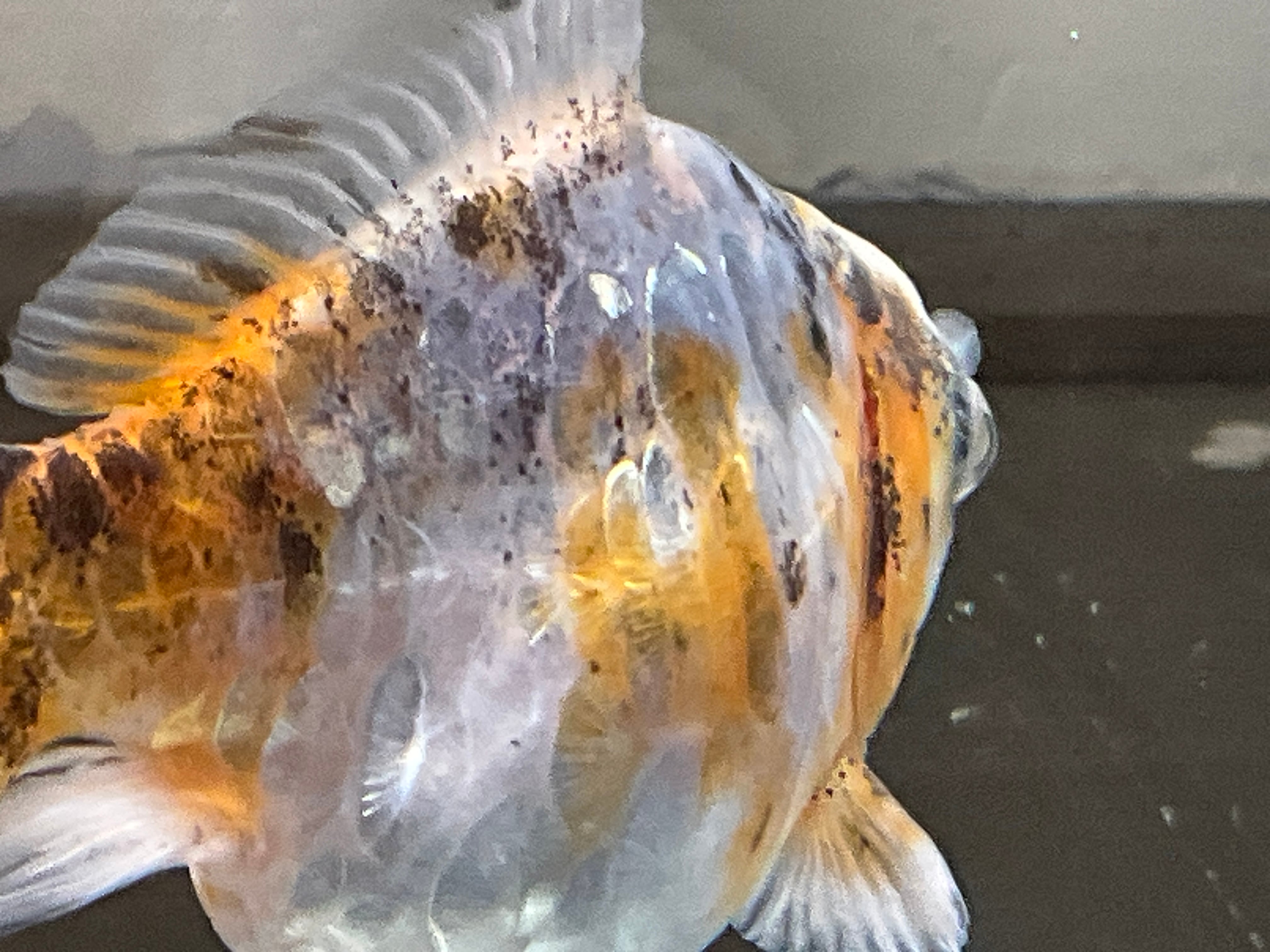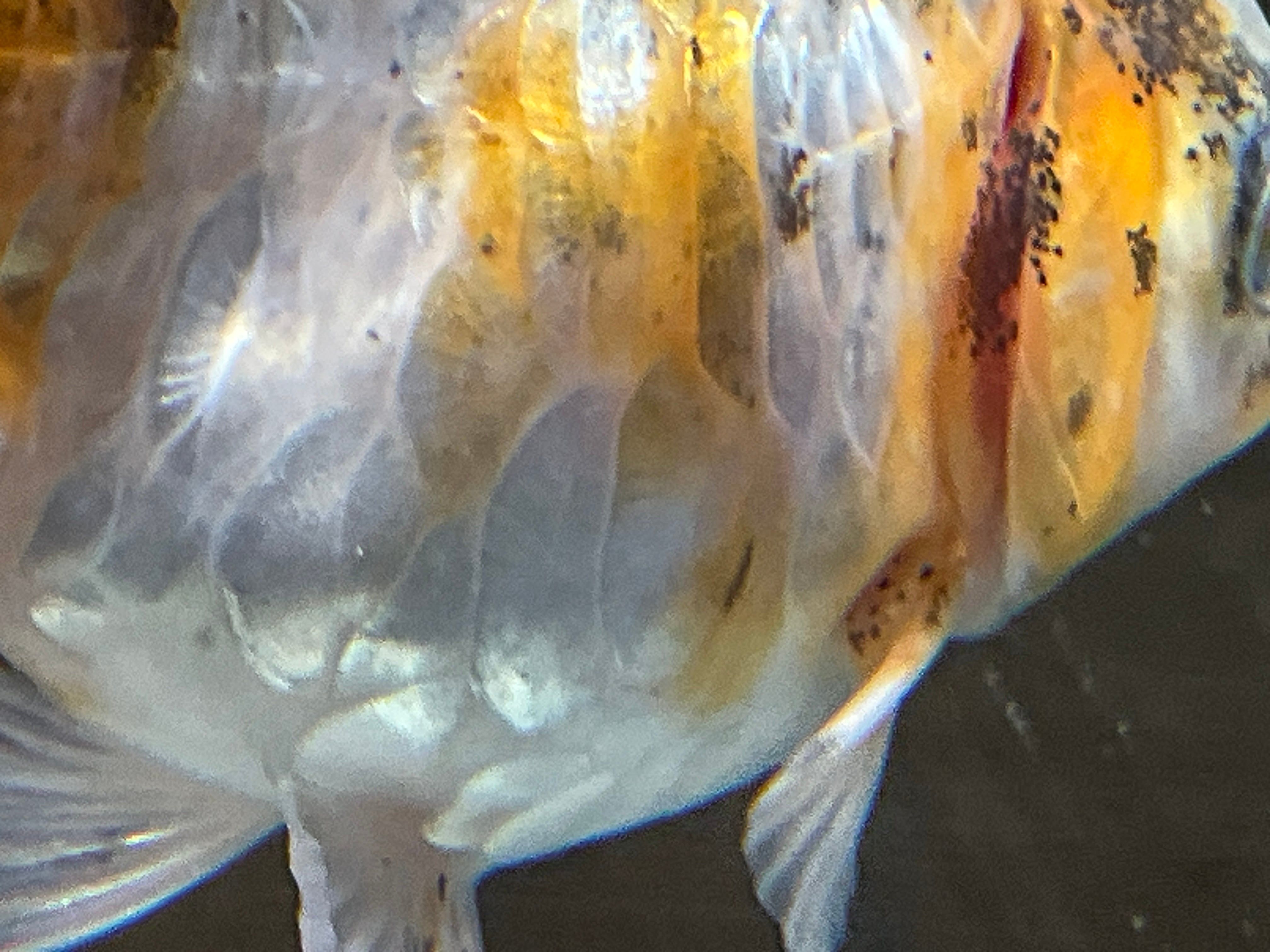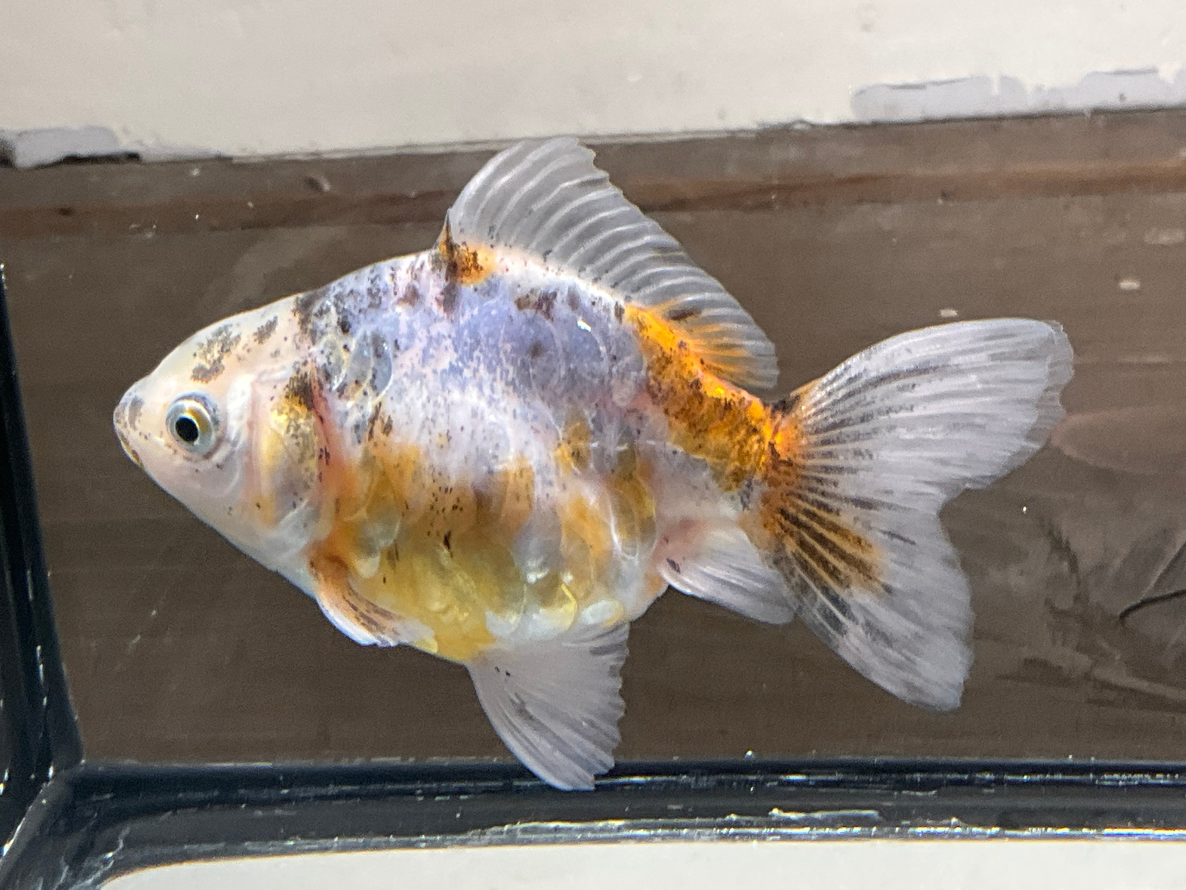 大鱗天龍は昨年から何匹か販売してきましたが、ここまで完璧な子はなかなか作ることはできません。大きく育てることができれば鱗の大きさも相まって金魚の常識を覆すような一匹になると容易に想像ができるクオリティの一匹です。