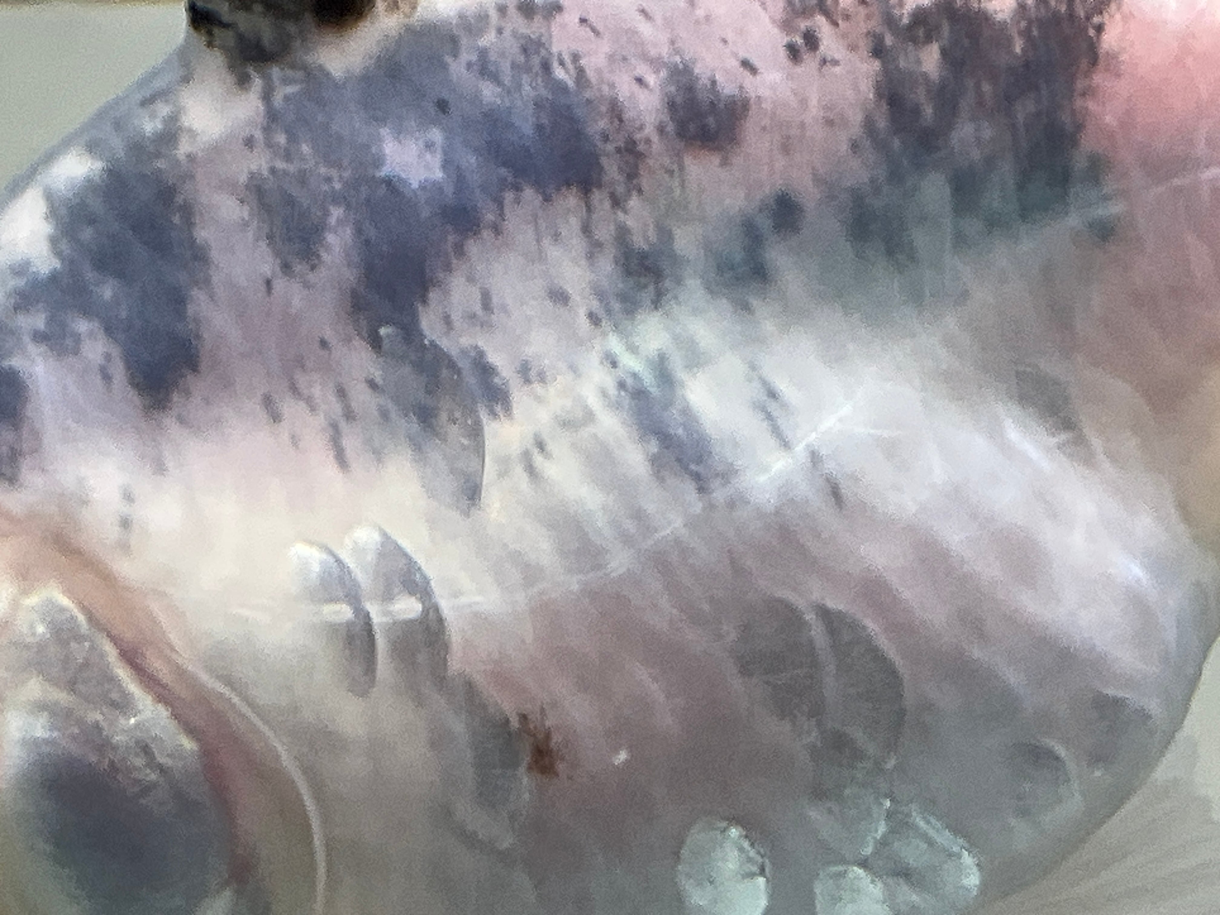 こちらは銀鱗が程よく入る水龍ですが、左右共に浅葱の入り方がまるで浮雲のようで非常にユニークです。ほとんどは浅葱がうっすらと全体に入るものしか出ません。まるで墨のような入り方をする浅葱です。全体的には支流の系統に入ります。ベースのカラーリングに紫が入っています。